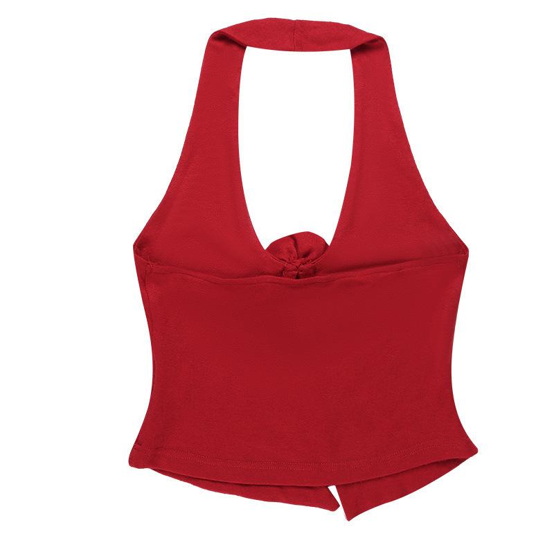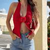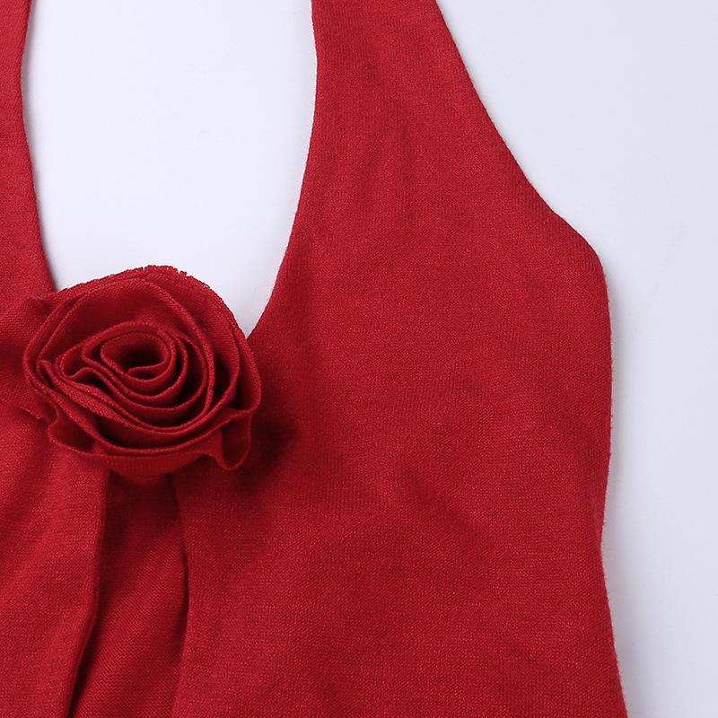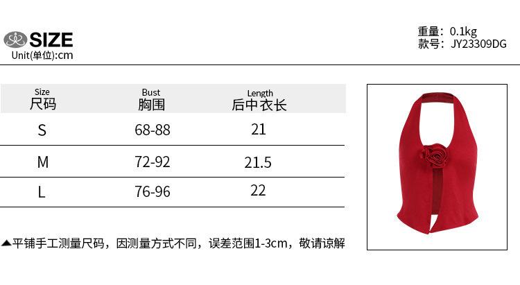 Jy23309 Top Chaleco de Punto Halter de Flores Verano 2023 Nuevo Diseño Nicho Estilo Sexy para Mujer