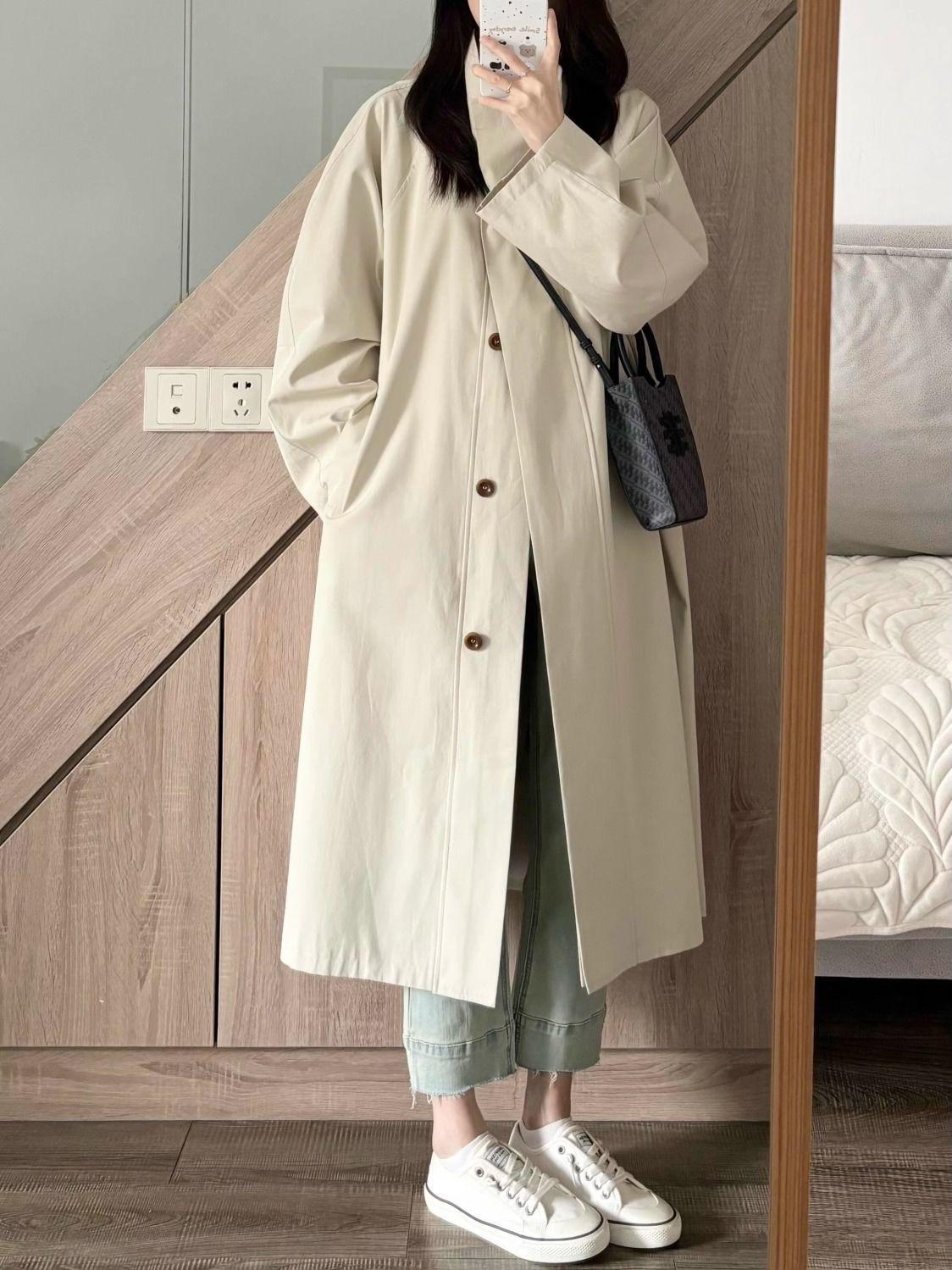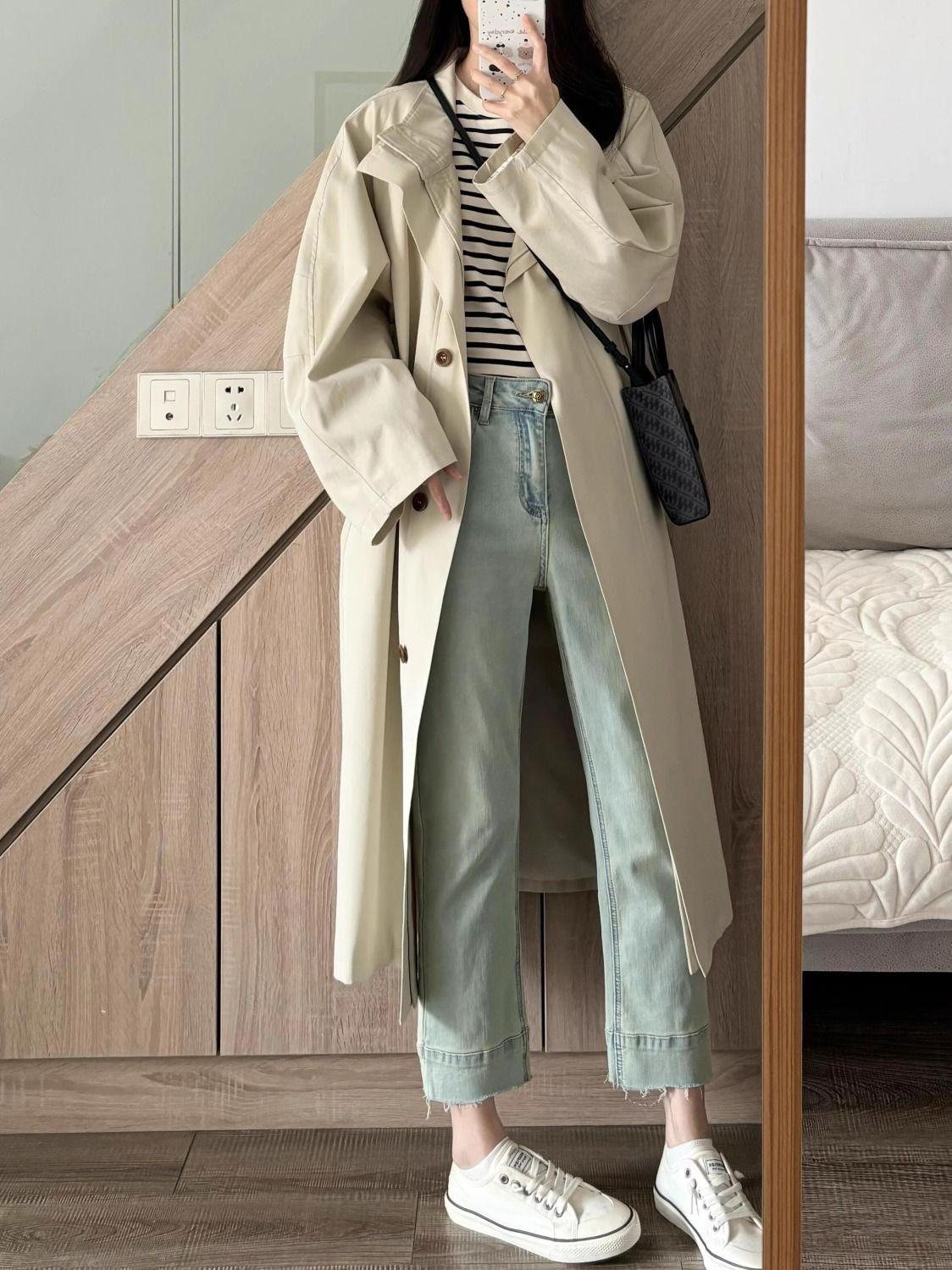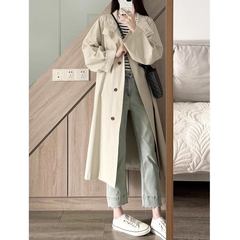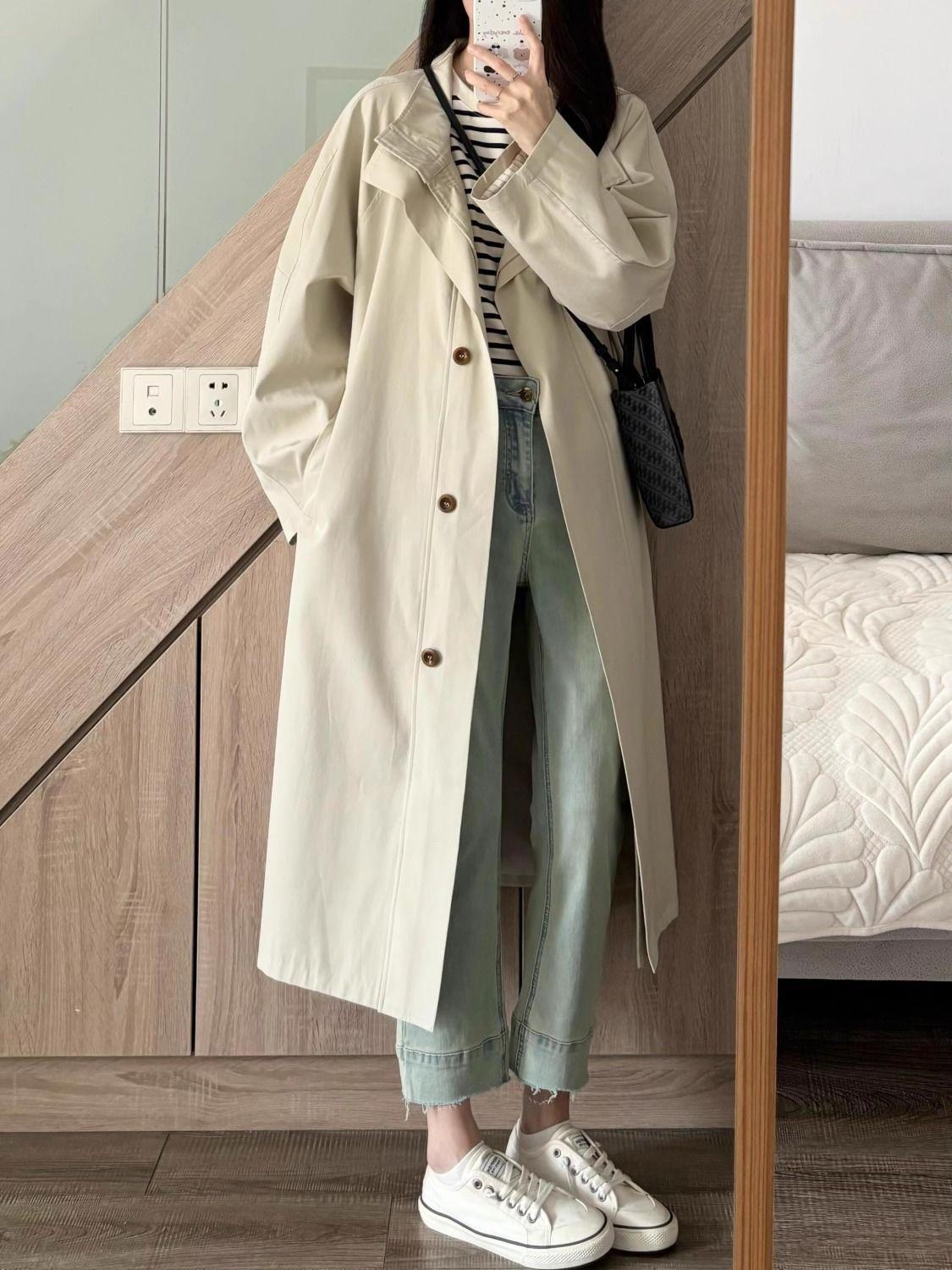Abrigo Trench de Largo Medio Estilo Coreano Nuevo Chaqueta Mujer Primavera Otoño Talla Grande Figura Petite Abrigo Estilo Británico Casual Nueva Llegada 200 lbs