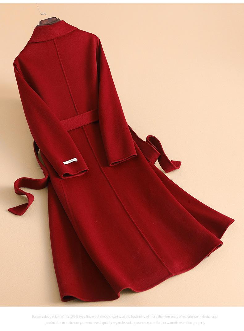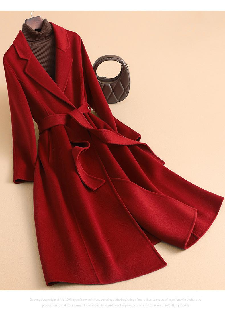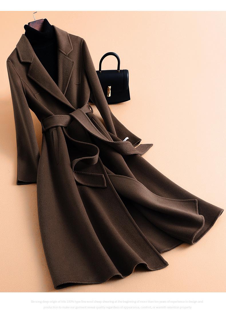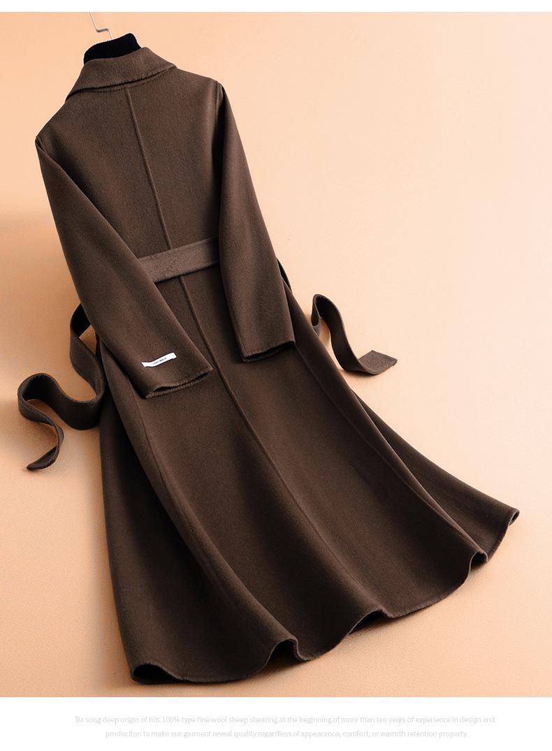 Abrigo de Lana de Doble Faz Nuevo Otoño 2025 Largo Slim Lana con Lazo Lana de Doble Faz Gabardina de Mujer al por Mayor