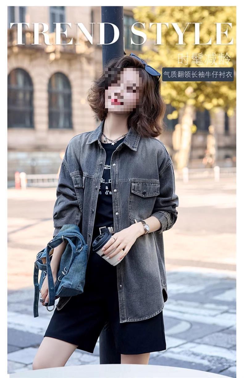 Chaqueta de mezclilla petite holgada de manga larga estilo europeo Top retro casual Camisa Estilo caliente Primavera Otoño Ropa exterior para mujer Camisa