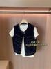WTHEONH Chaleco de mezclilla corto de cuello redondo azul oscuro retro a la moda apilado combinable sin mangas