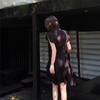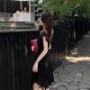 Vestido estilo Hepburn con cintura francesa ceñida para mujer, estética elegante de alta gama para verano, impresionante vestido negro con volantes irregulares