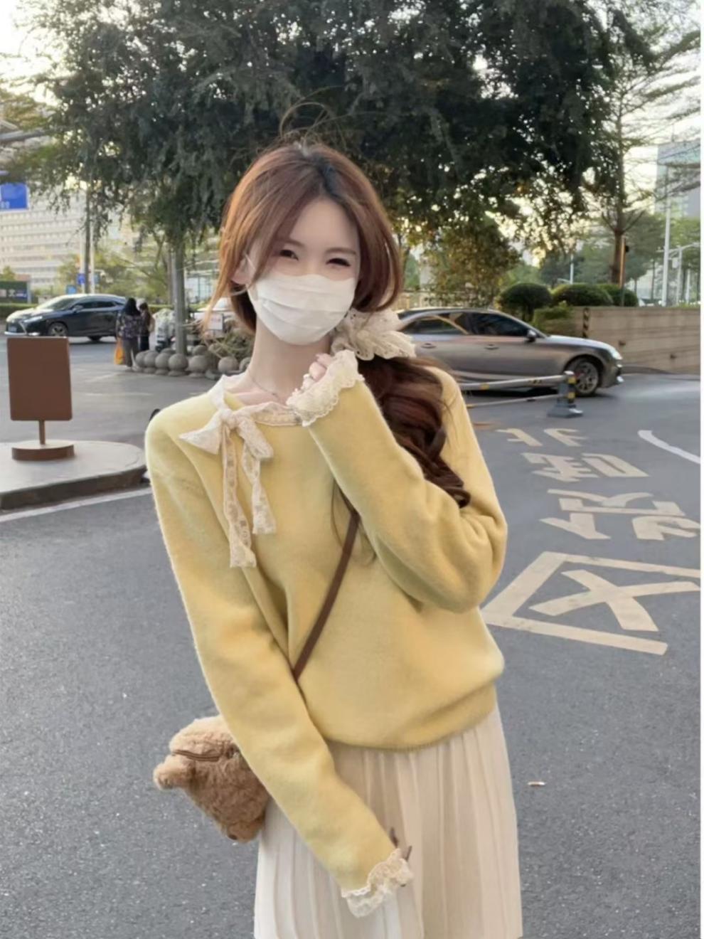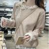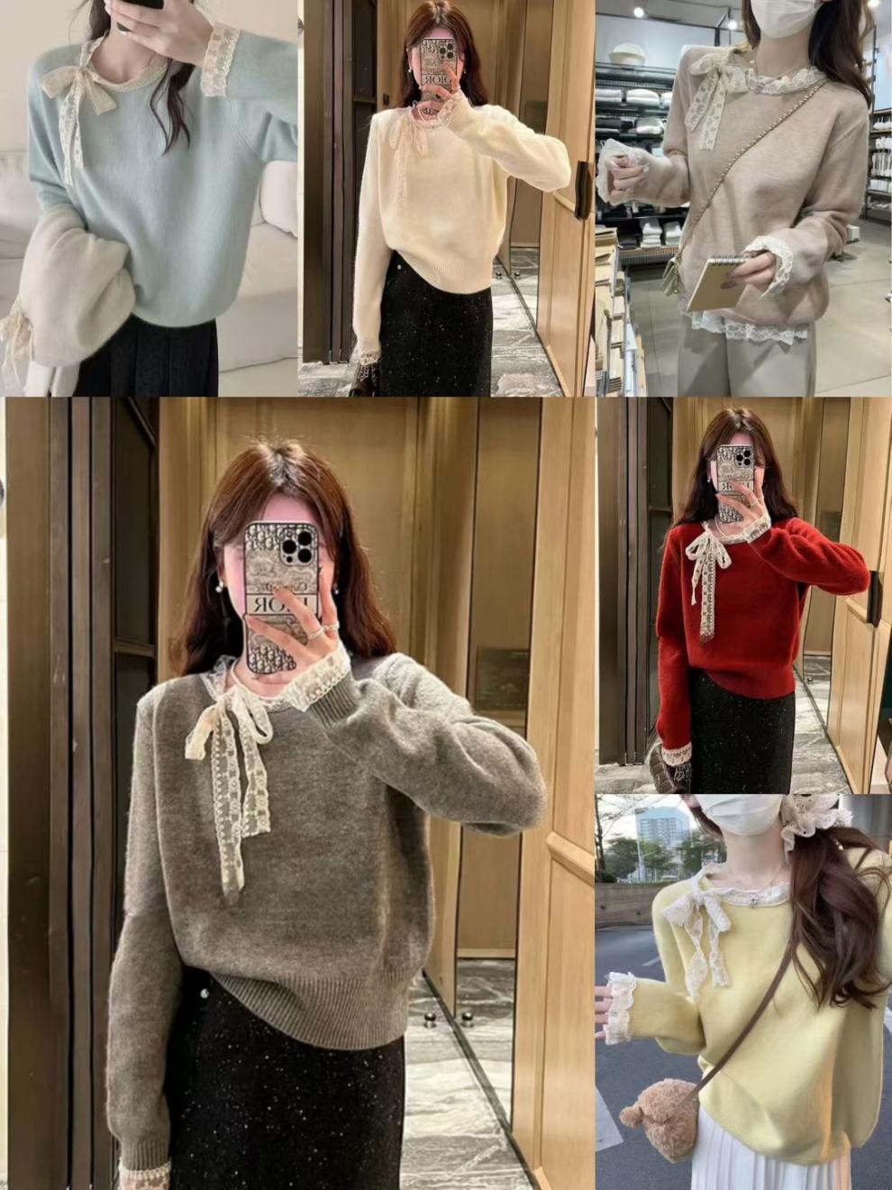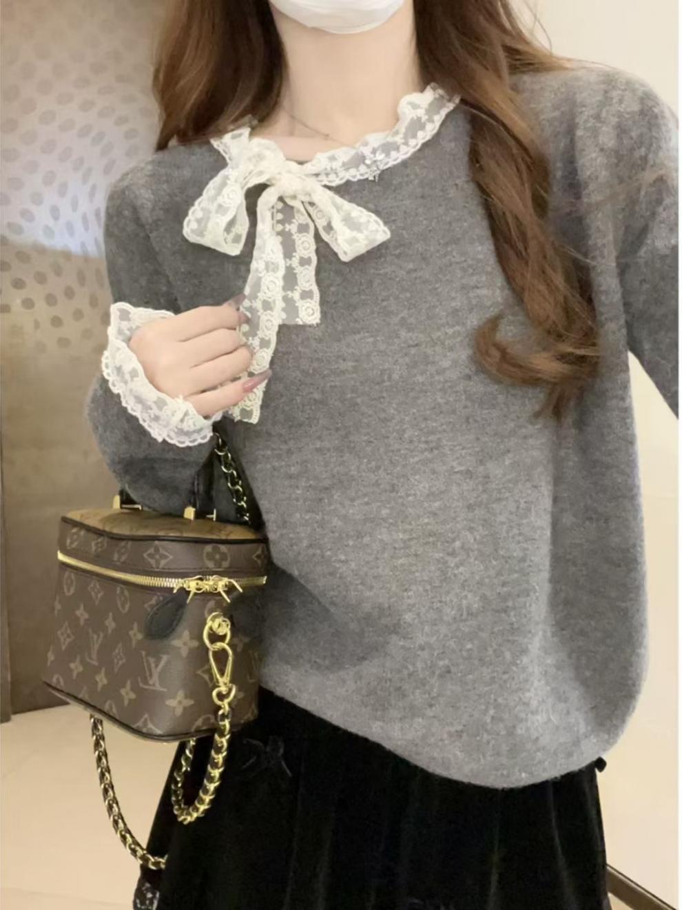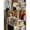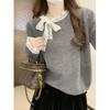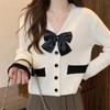 Bloque de Color Simple Dulce Diseño Reductor de Edad Sentido Lazo Suéter de Punto Otoño Invierno Versátil Casual Adelgazante Temperamento Top