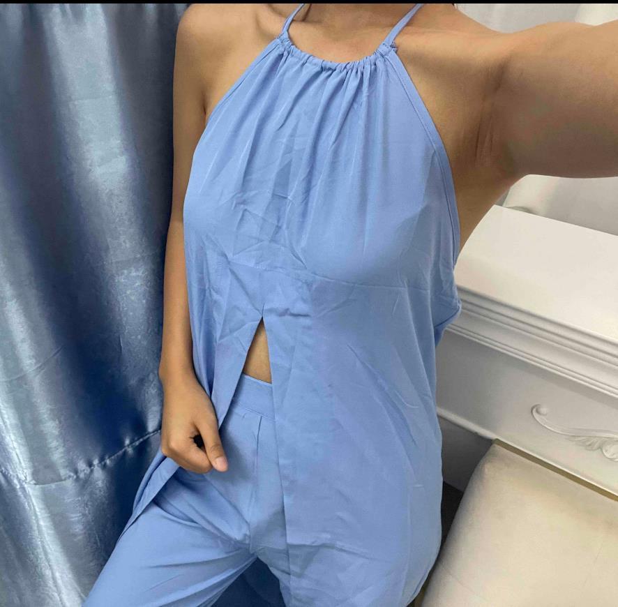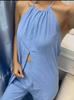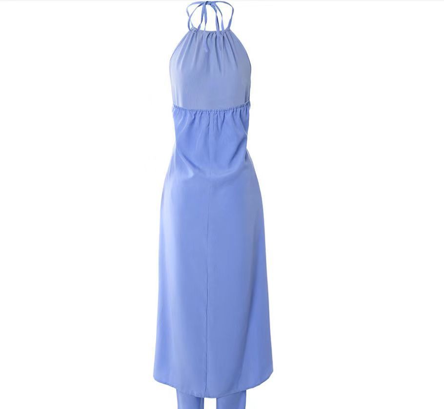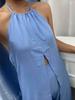 Moda transfronteriza europea y americana 2024 verano moderno halter sin mangas sexy sin espalda suelto con abertura vestido cintura alta largo