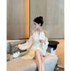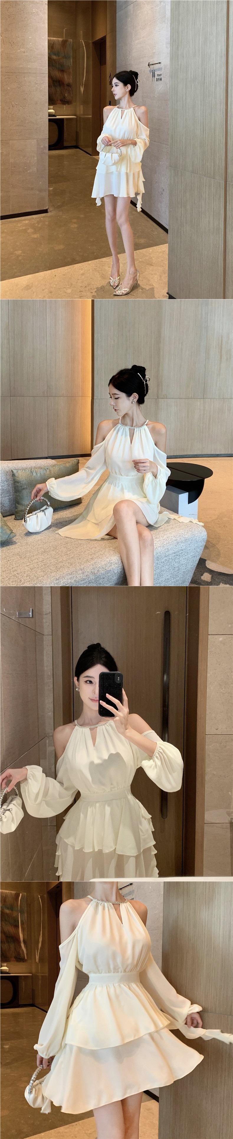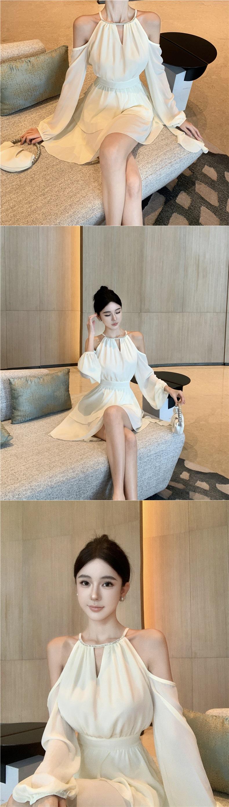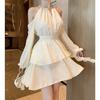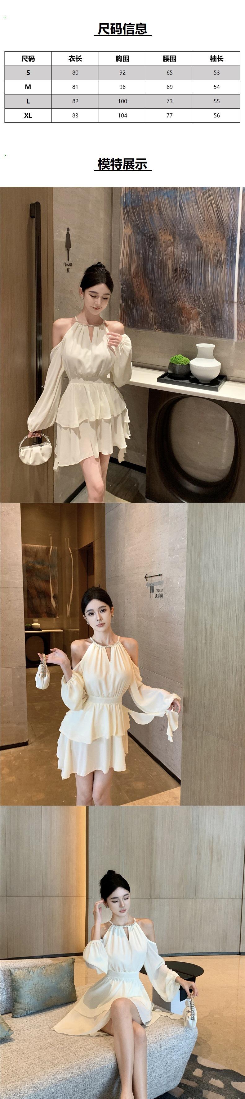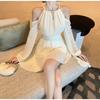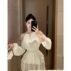 Vestido de Hada de Gasa de Alta Gama con Hombros Descubiertos Francés para Mujer Primavera Verano Talla Grande MM Gordo Volante Suelto Adelgazante Tendencia