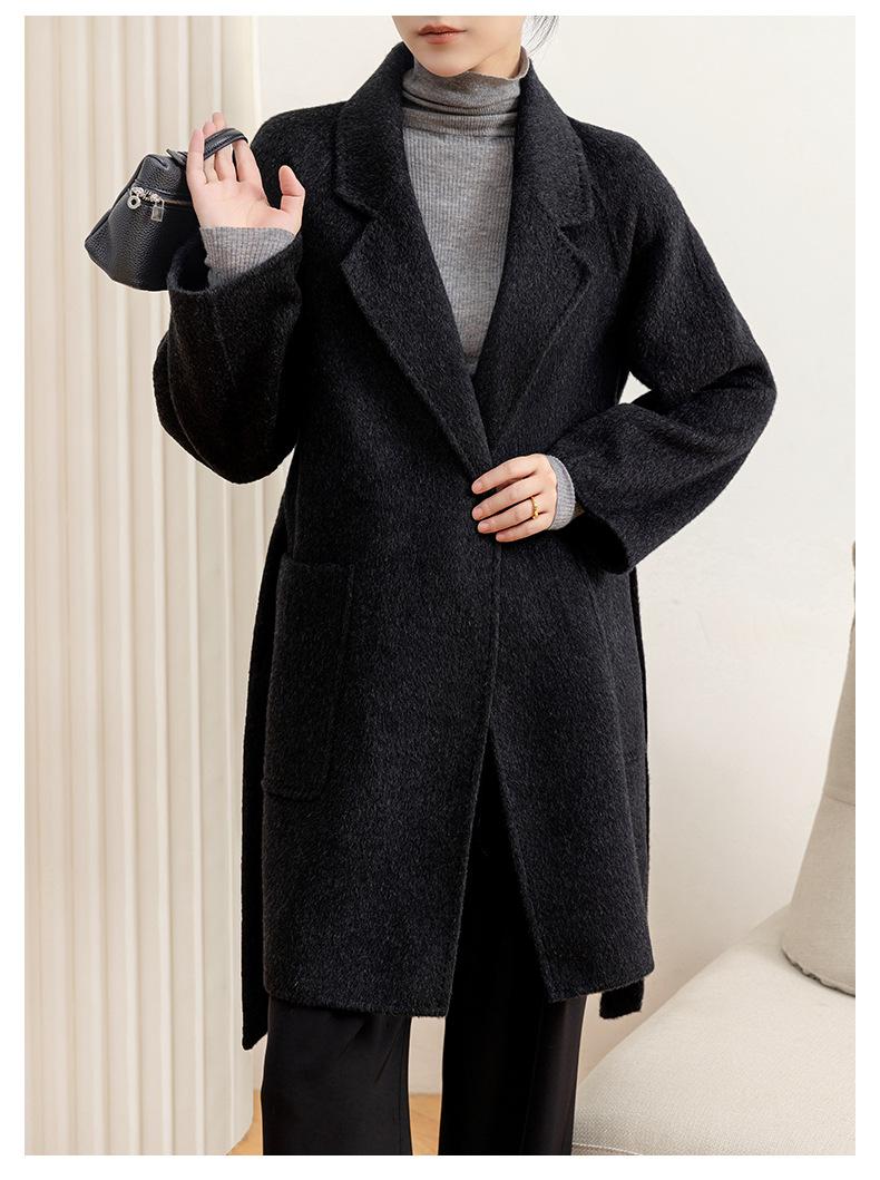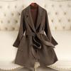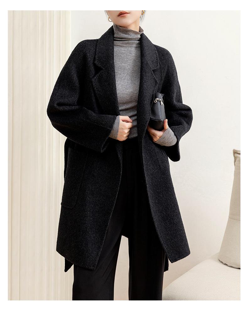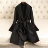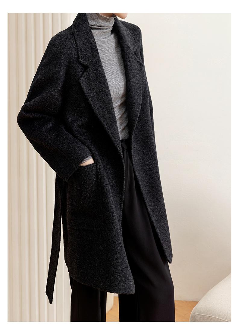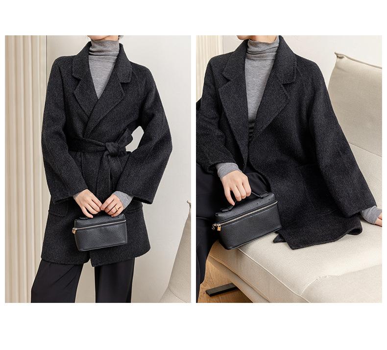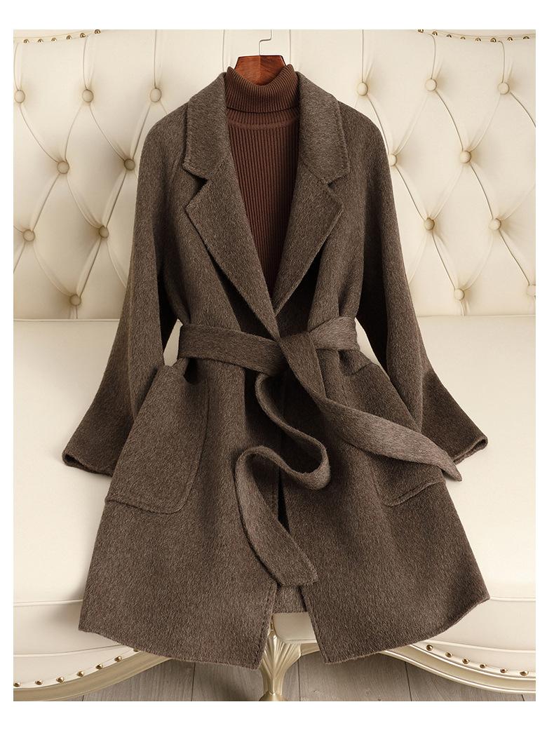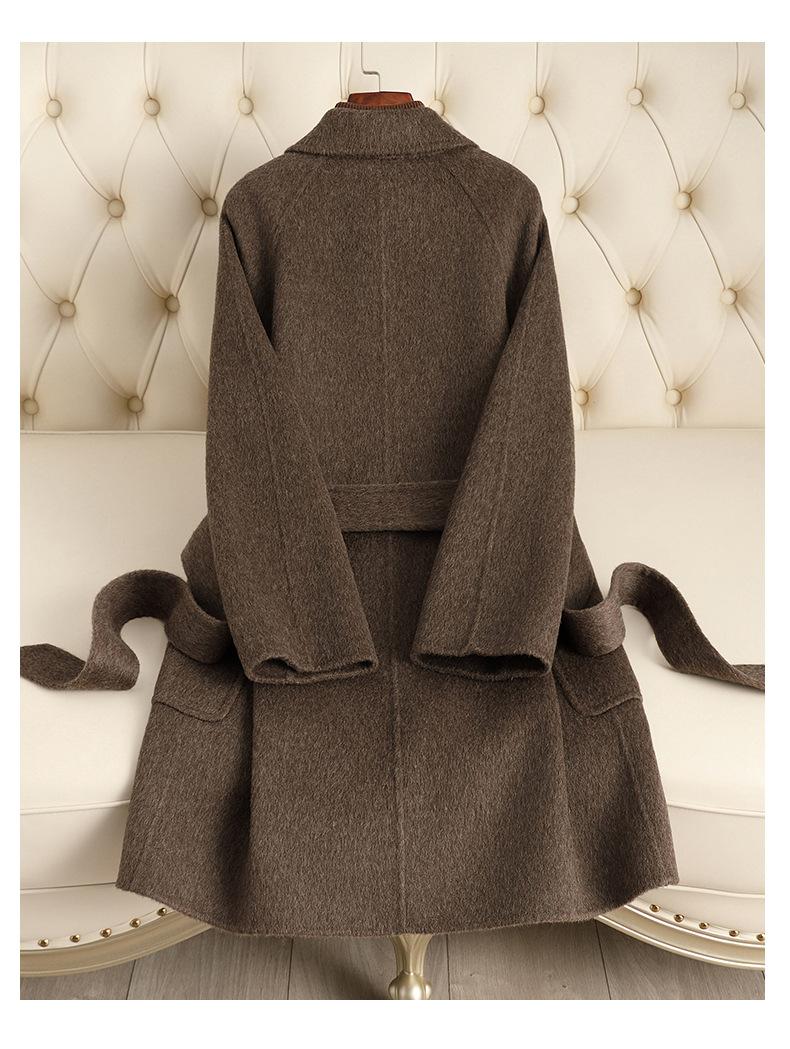 Abrigo de Lana Doble Faz Nuevo Otoño/Invierno 2025 para Mujer, Temperamental, Largo Medio, con Cinturón de Lazo, Hecho Puramente a Mano, Abrigo de Mezcla de Lana de Alta Gama