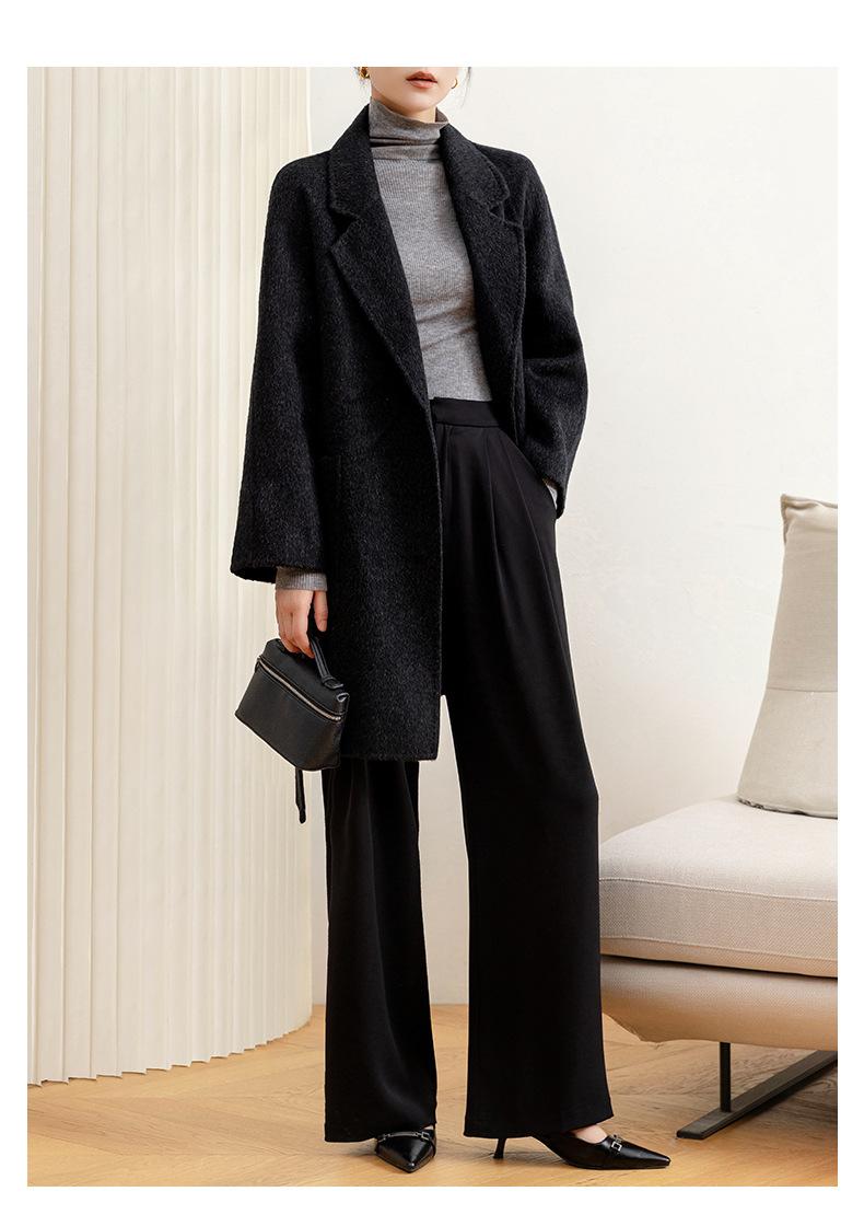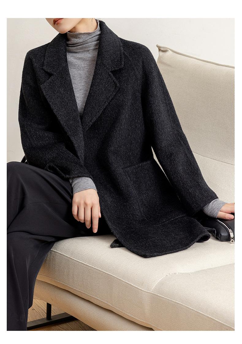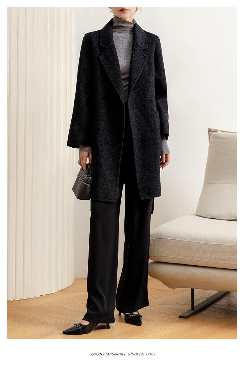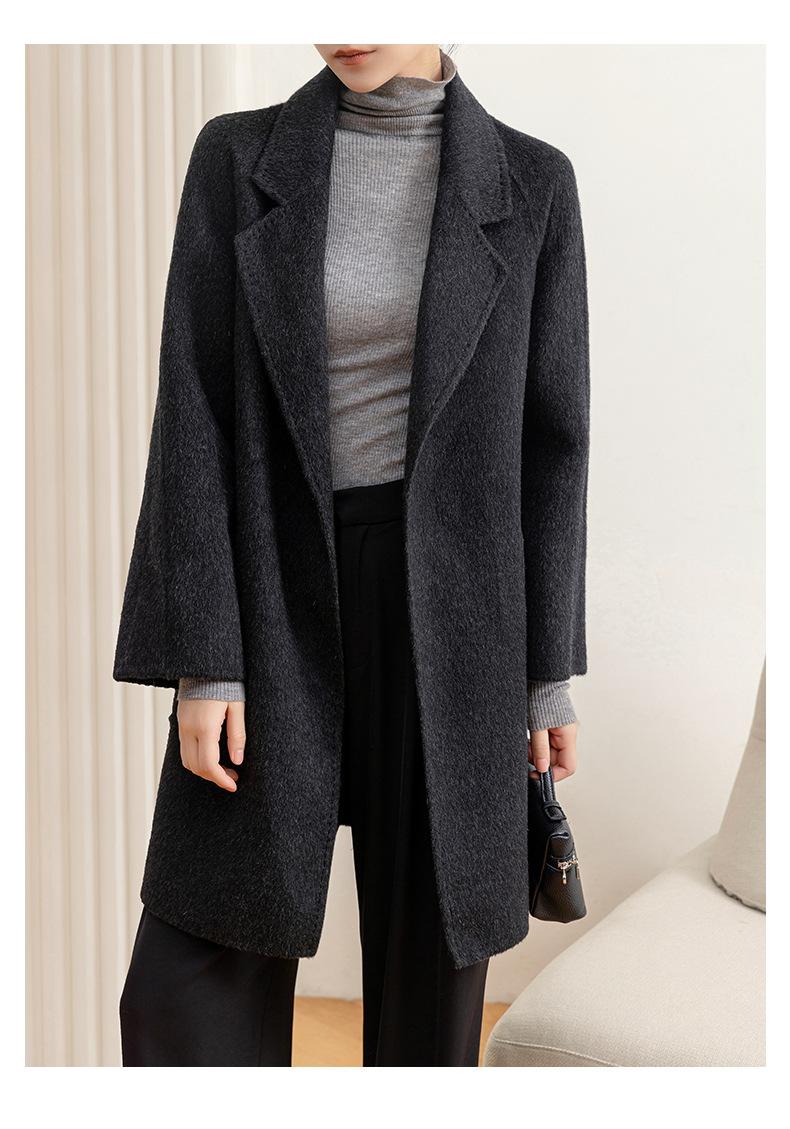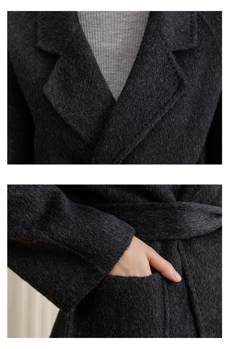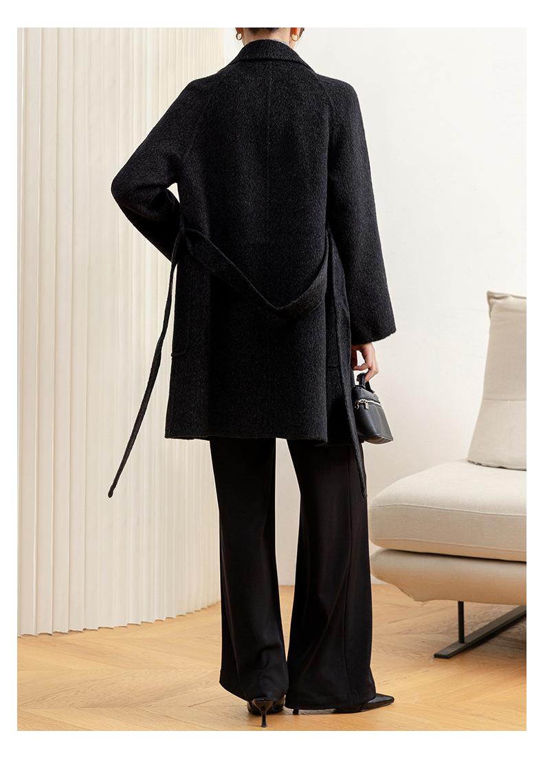 Abrigo de Lana Doble Faz Nuevo Otoño/Invierno 2025 para Mujer, Temperamental, Largo Medio, con Cinturón de Lazo, Hecho Puramente a Mano, Abrigo de Mezcla de Lana de Alta Gama