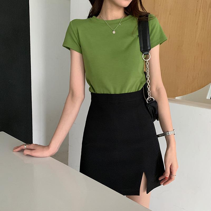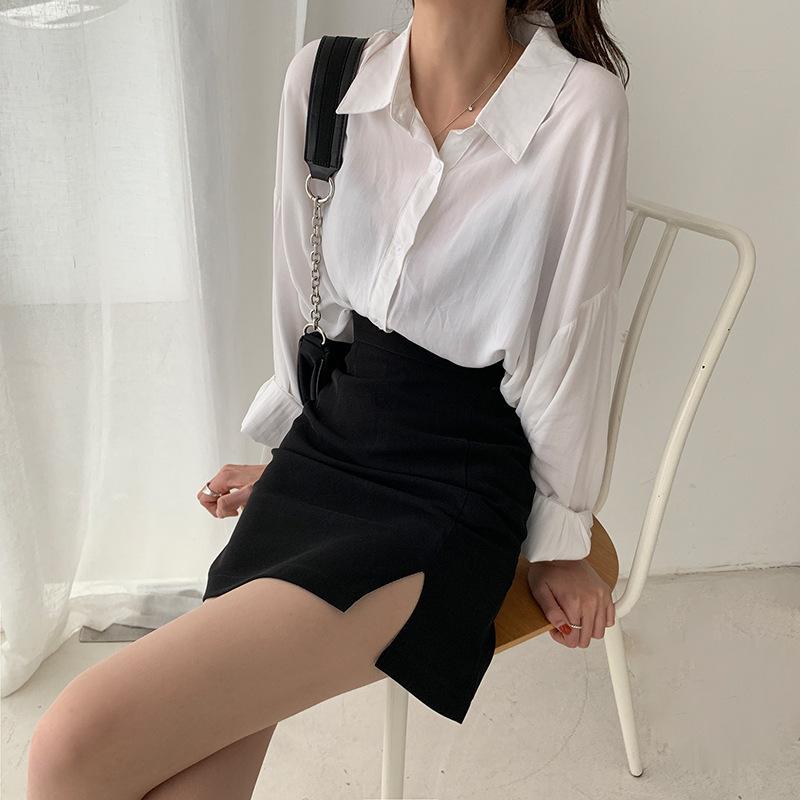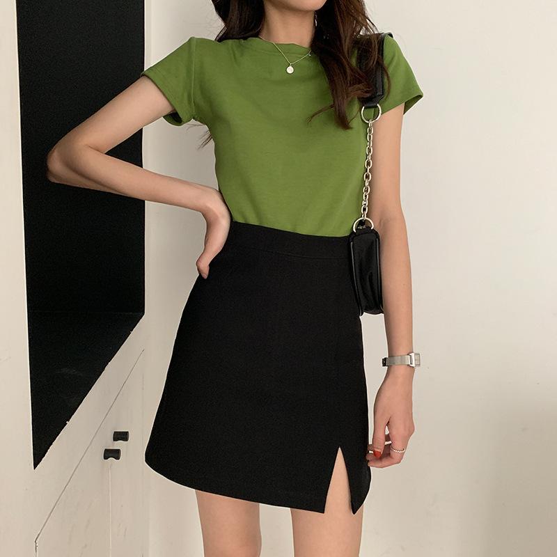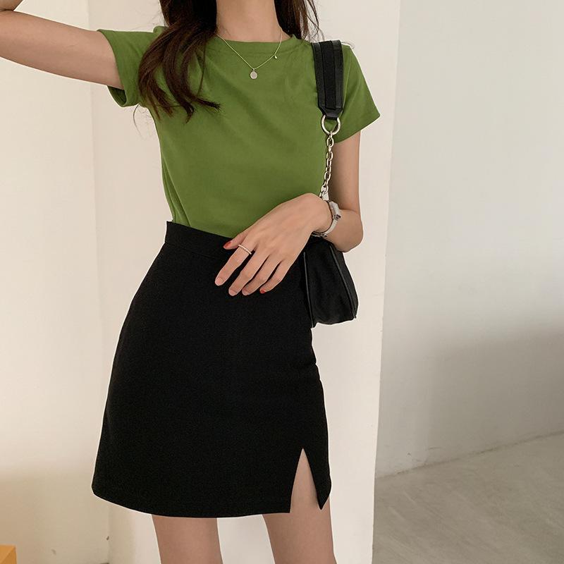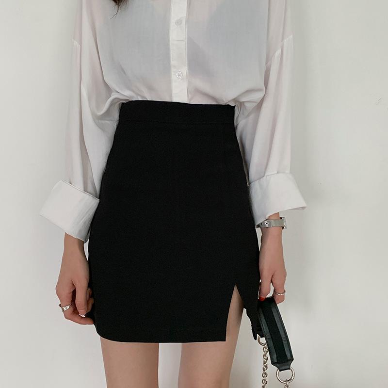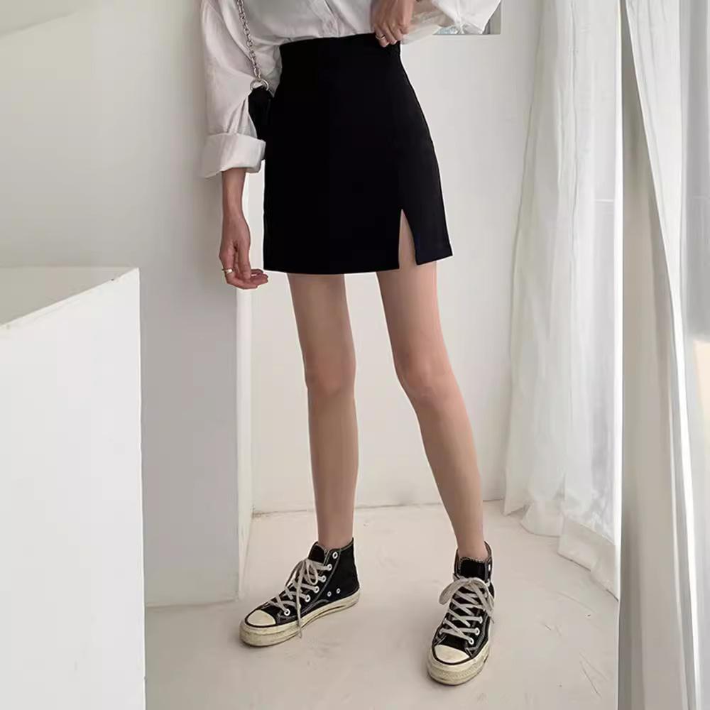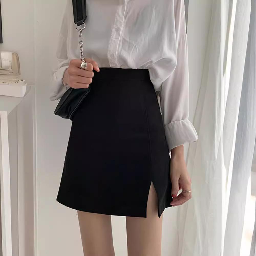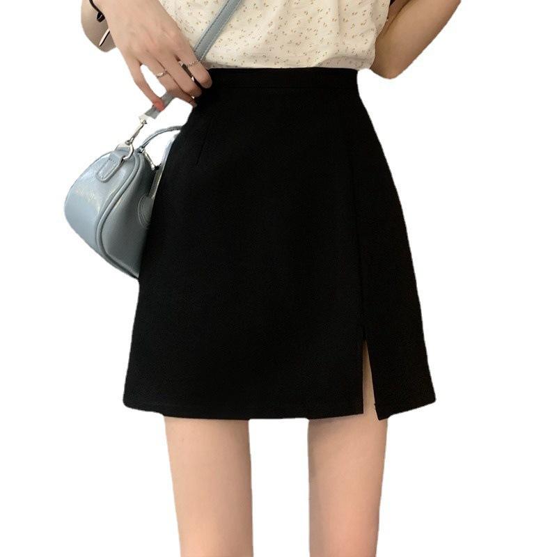 Falda Midi Negra de Cintura Alta con Abertura para Mujer Primavera 2025 Nueva Falda Corta Acampanada Traje Falda Bodycon Diseño de Verano