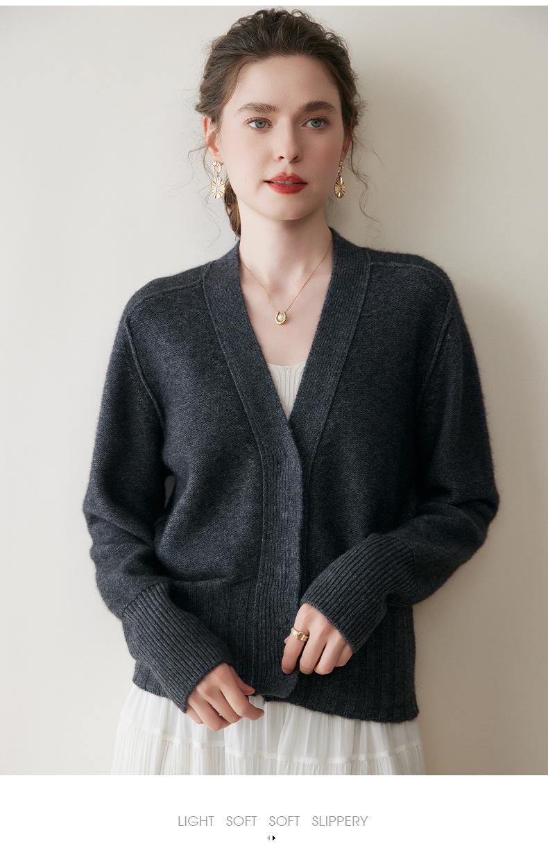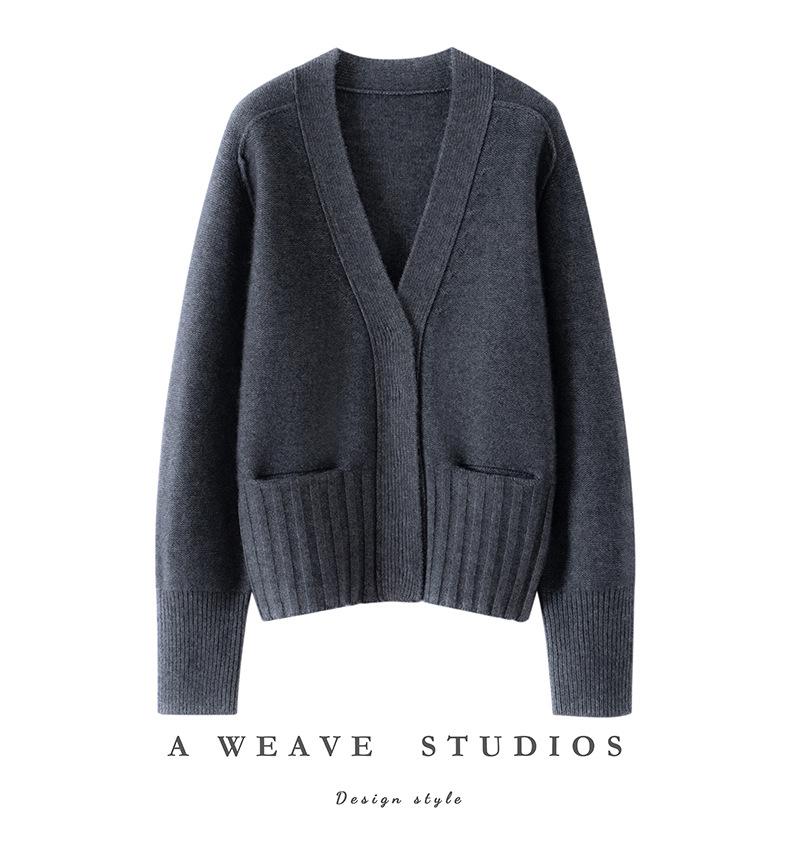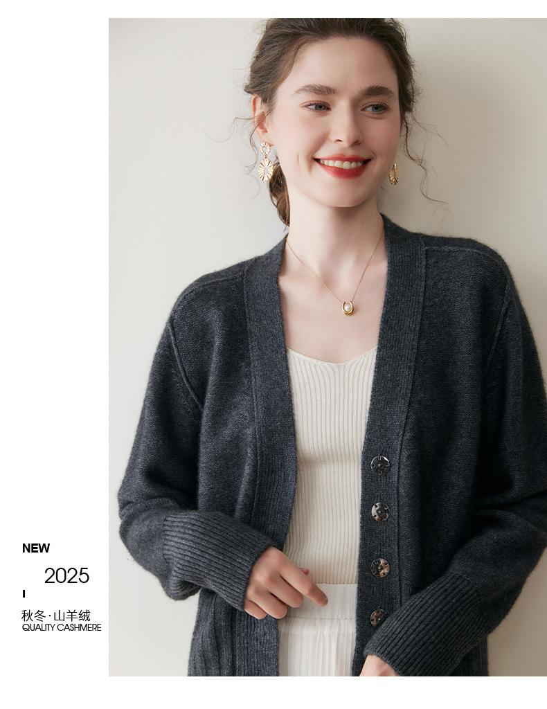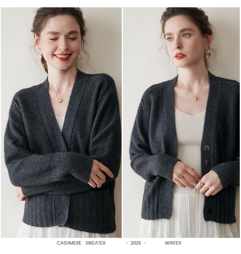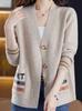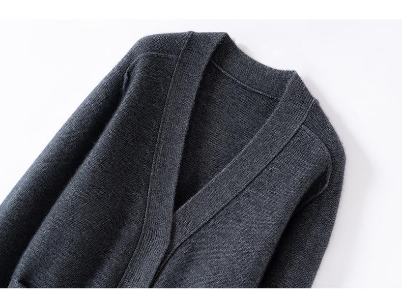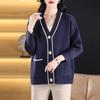 Cárdigan de Cachemira para Mujer con Cuello en V y Bolsillos para Otoño e Invierno, Moderno, Versátil, Suelto, de Punto, Abrigo Suéter Grueso