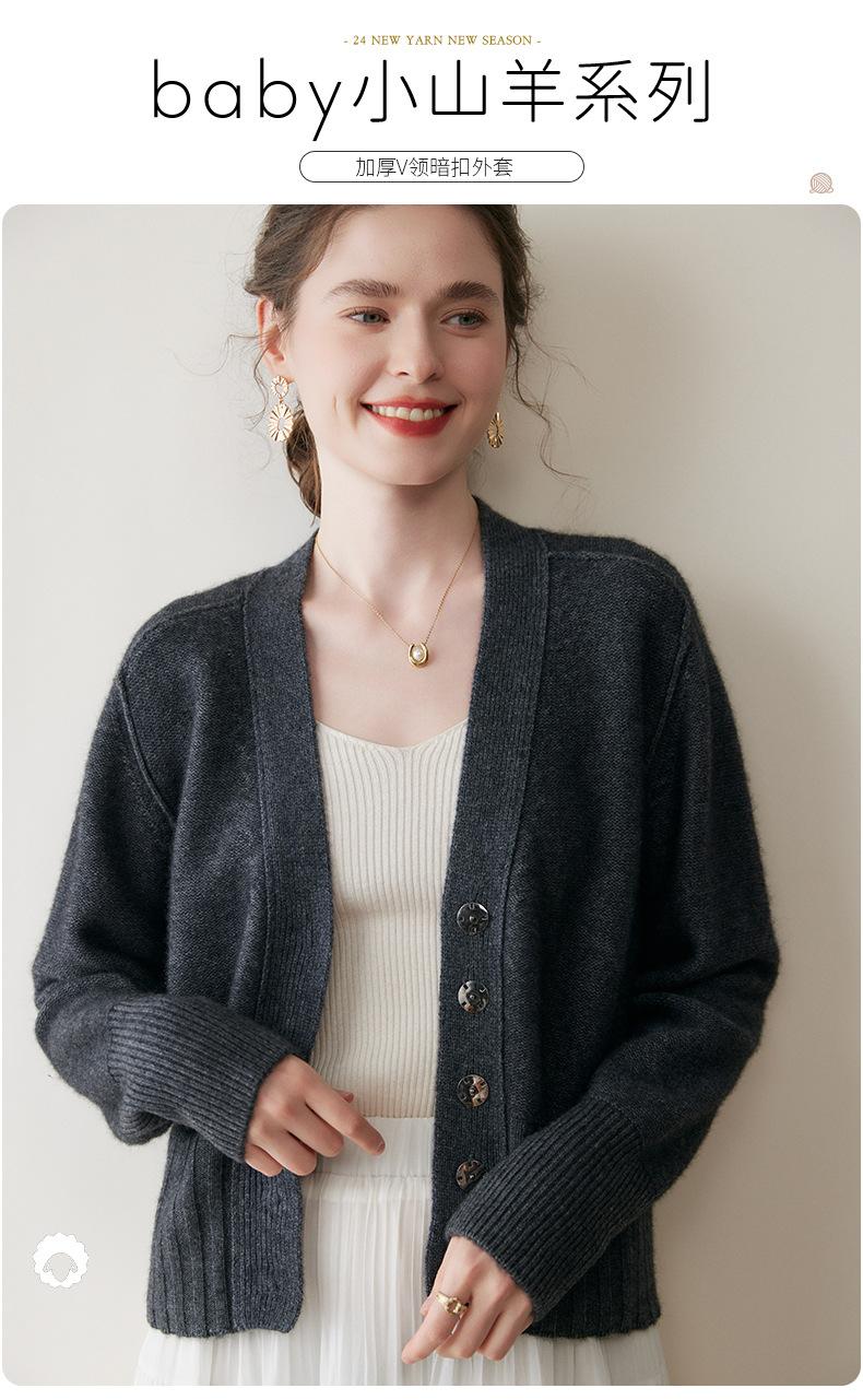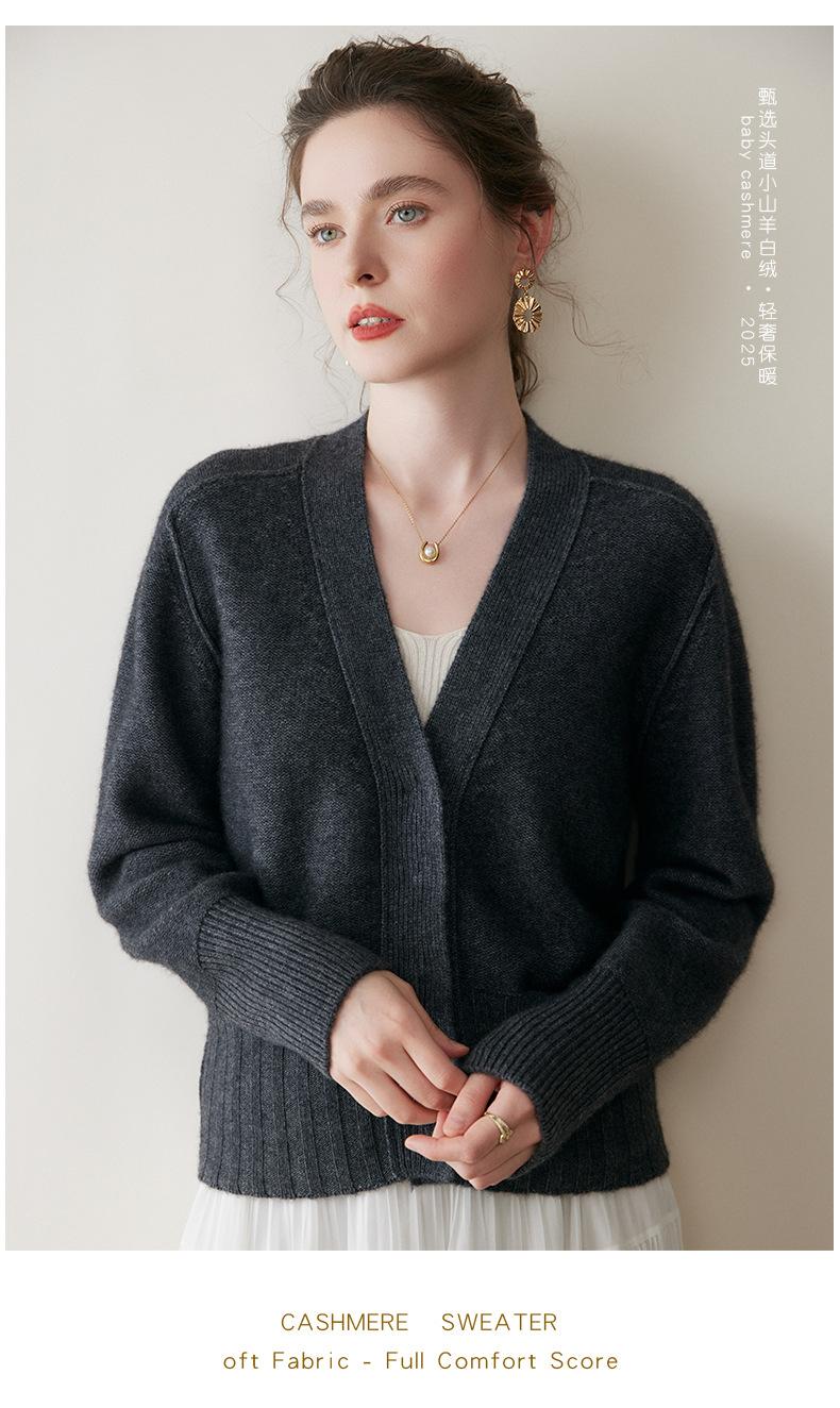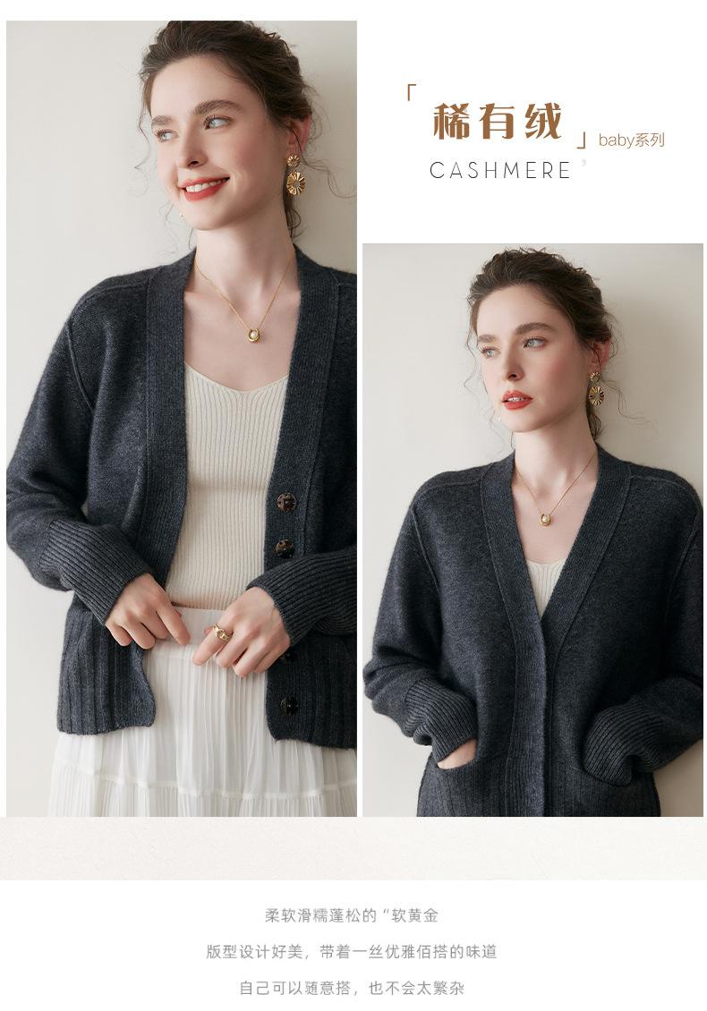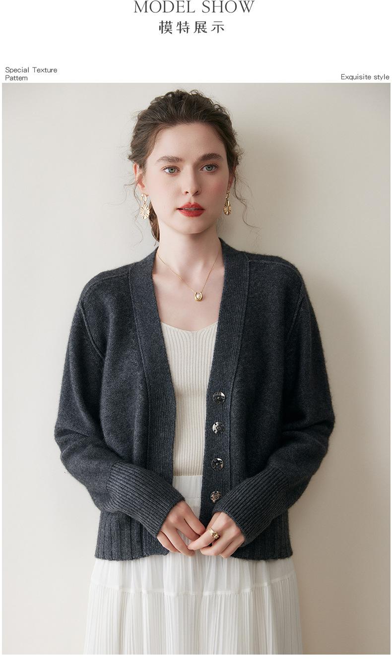 Cárdigan de Cachemira para Mujer con Cuello en V y Bolsillos para Otoño e Invierno, Moderno, Versátil, Suelto, de Punto, Abrigo Suéter Grueso