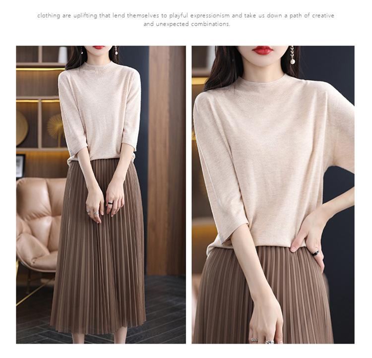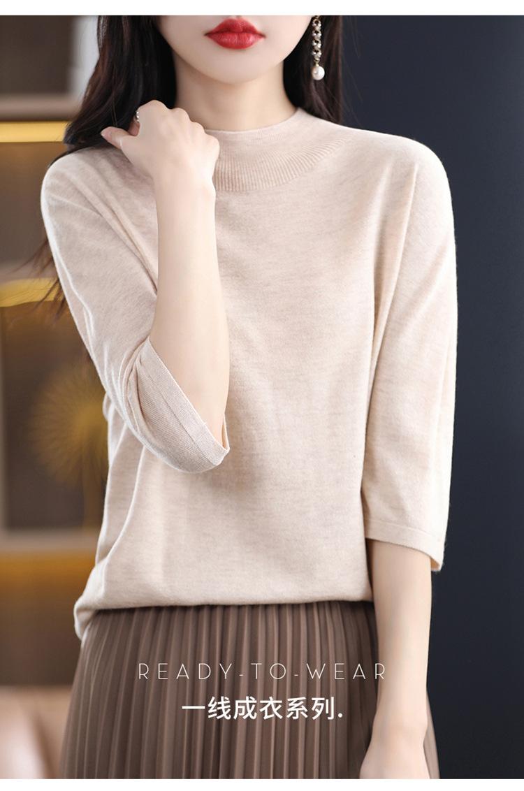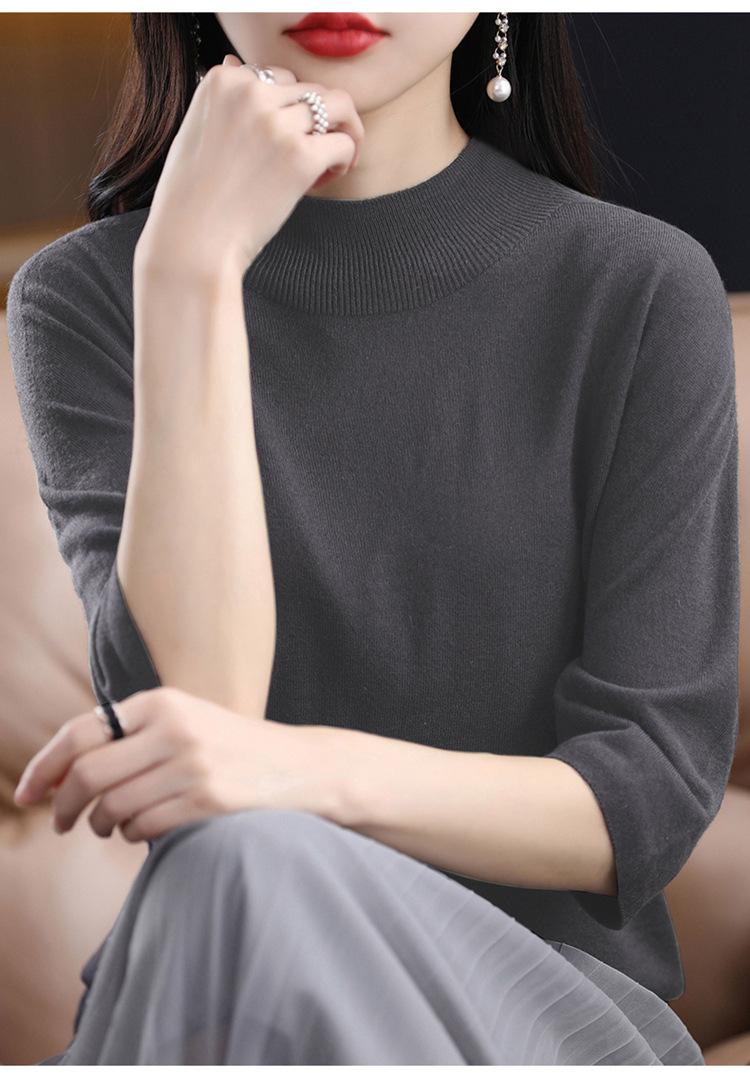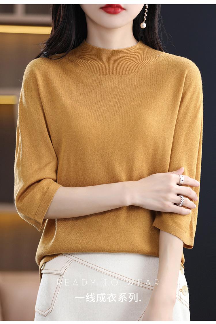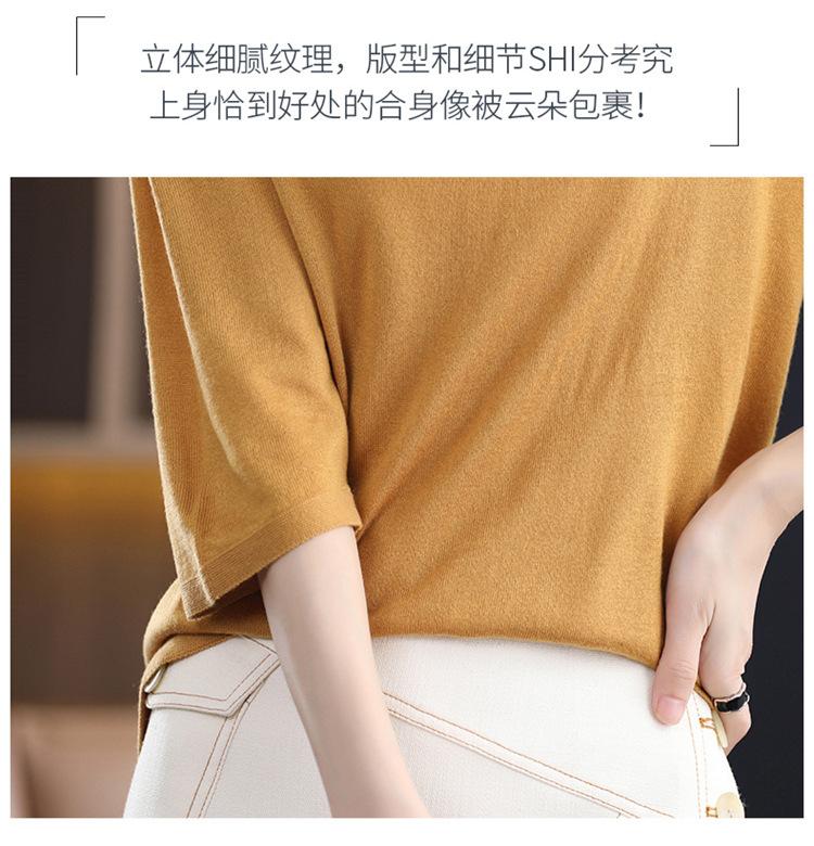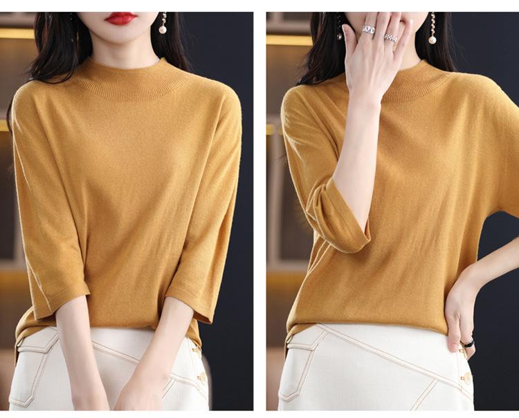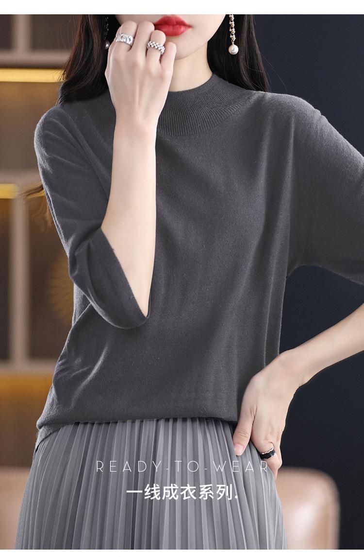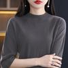 Ropa de primera línea suéter de lana peinada de cuello alto de manga corta para mujer 2024 primavera y verano nuevo camisa básica manga media