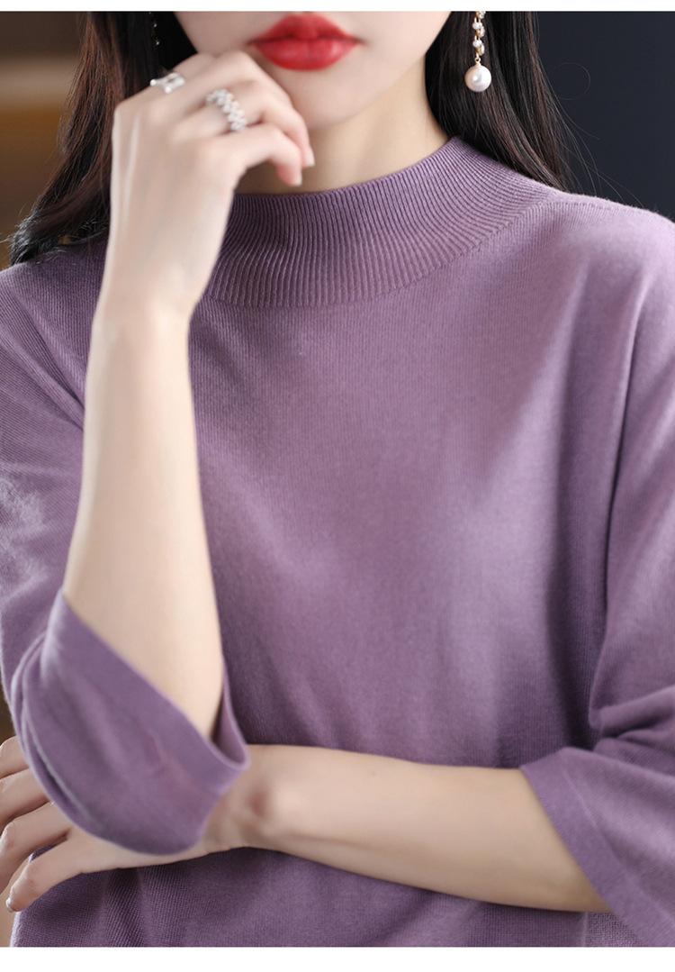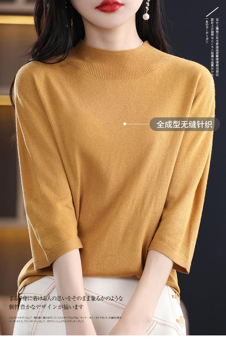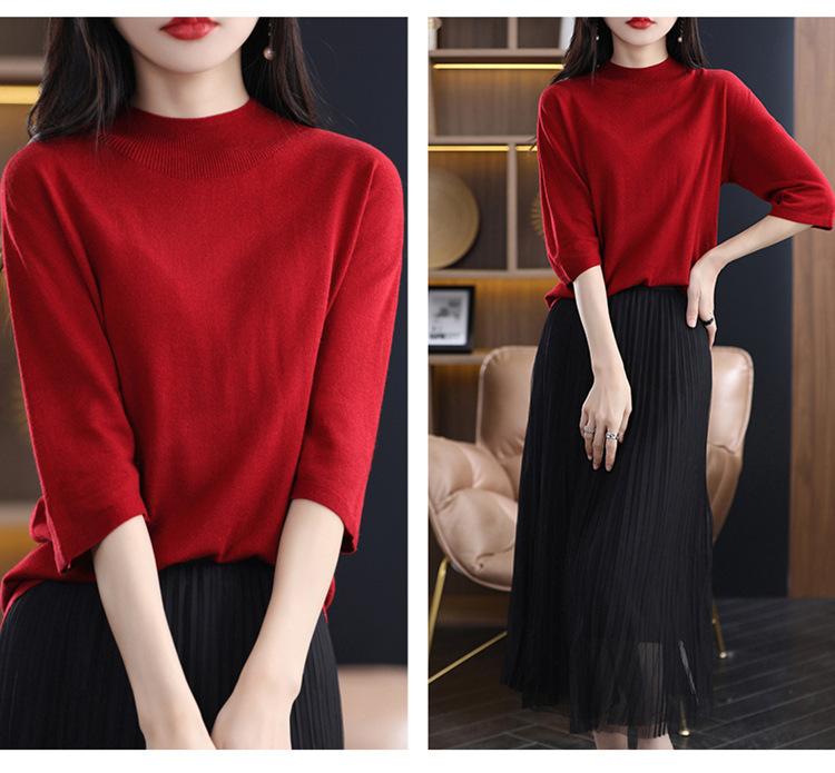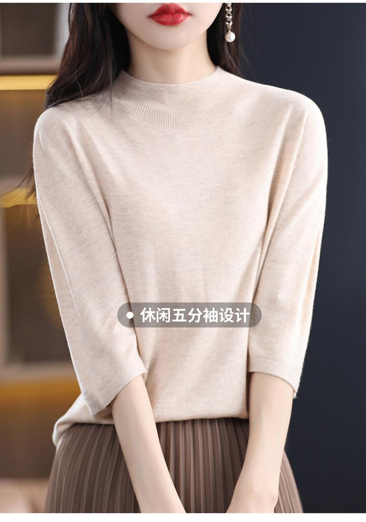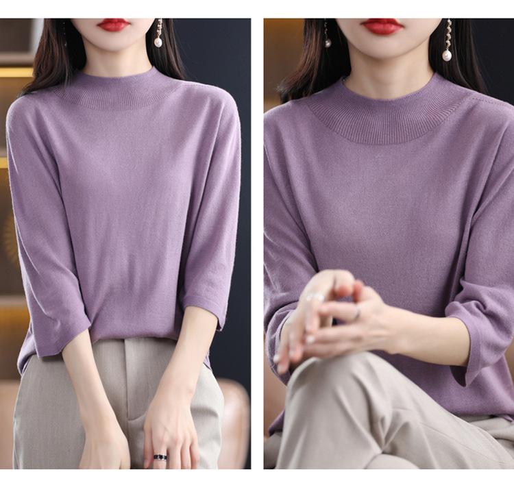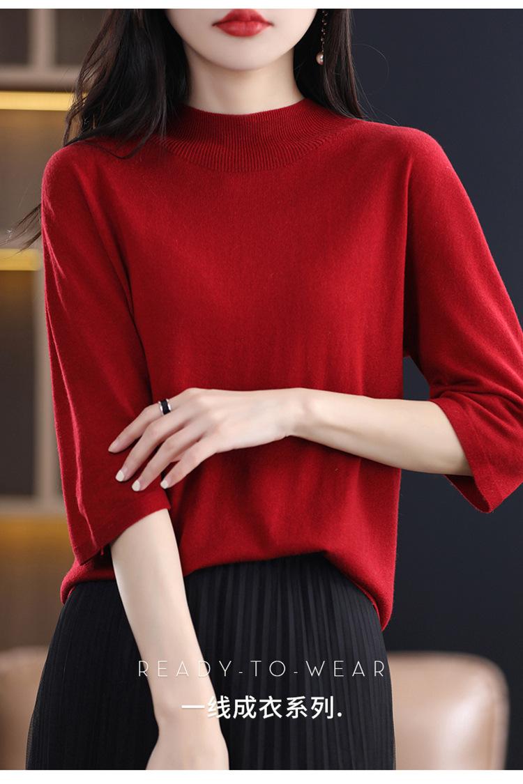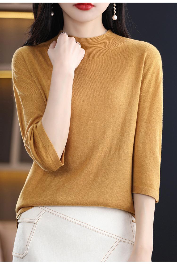 Ropa de primera línea suéter de lana peinada de cuello alto de manga corta para mujer 2024 primavera y verano nuevo camisa básica manga media