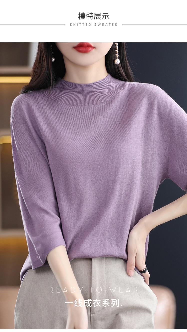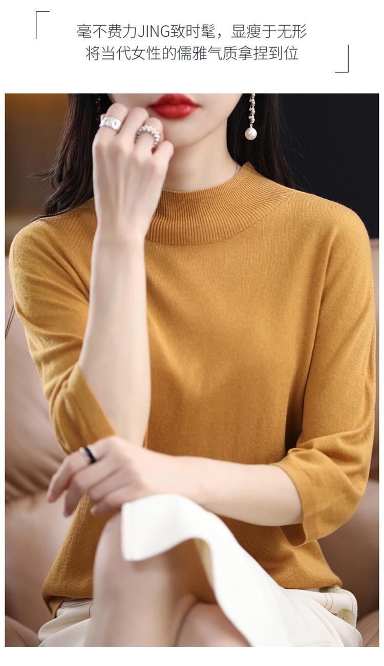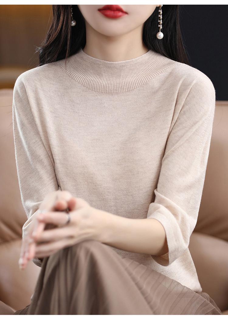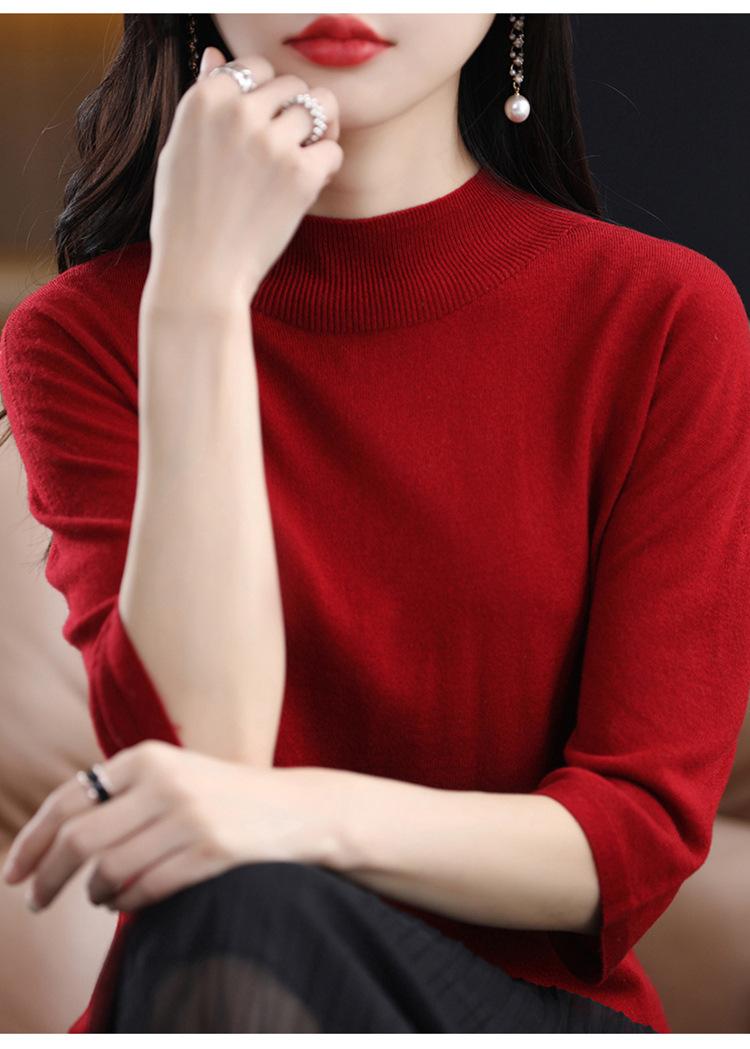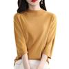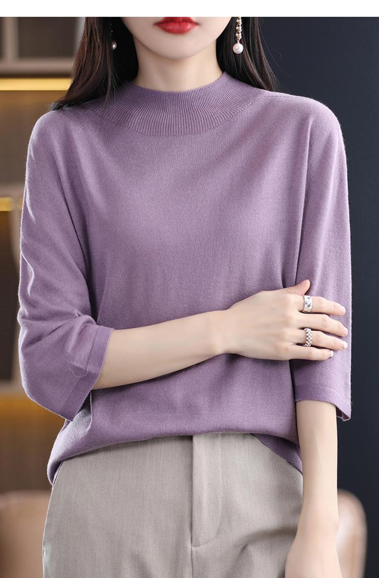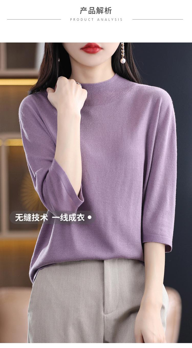 Ropa de primera línea suéter de lana peinada de cuello alto de manga corta para mujer 2024 primavera y verano nuevo camisa básica manga media