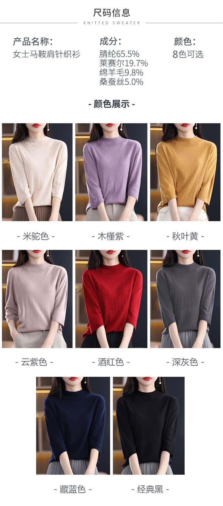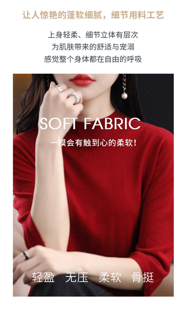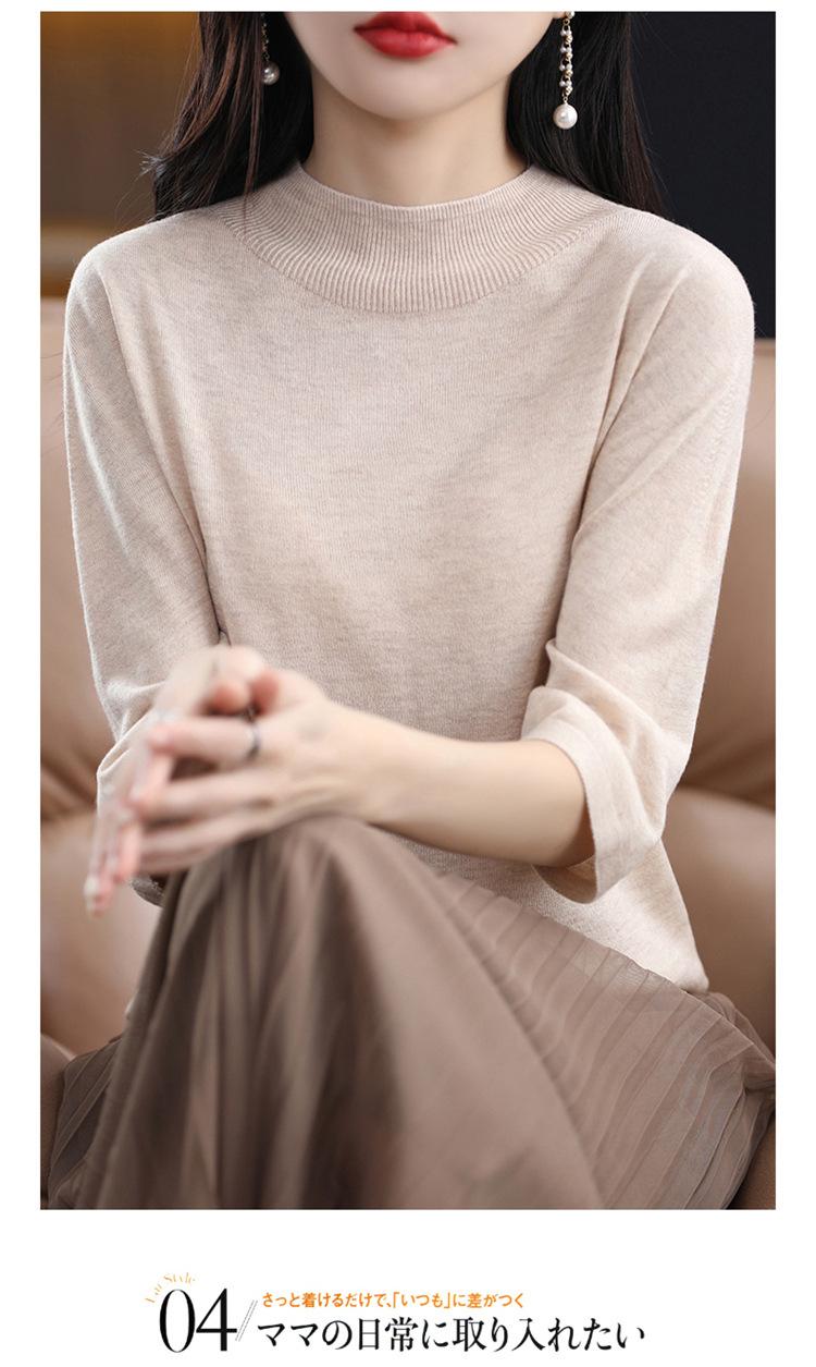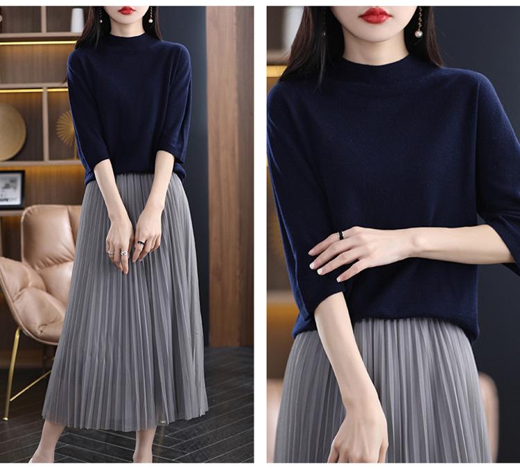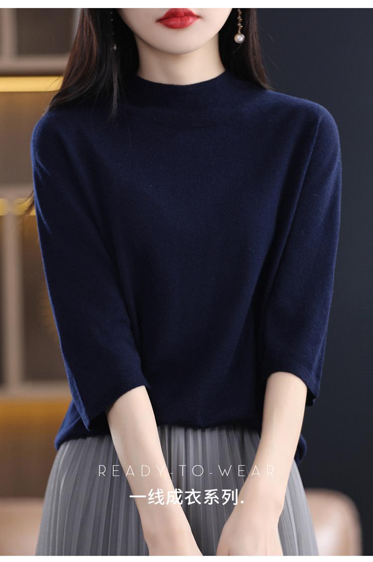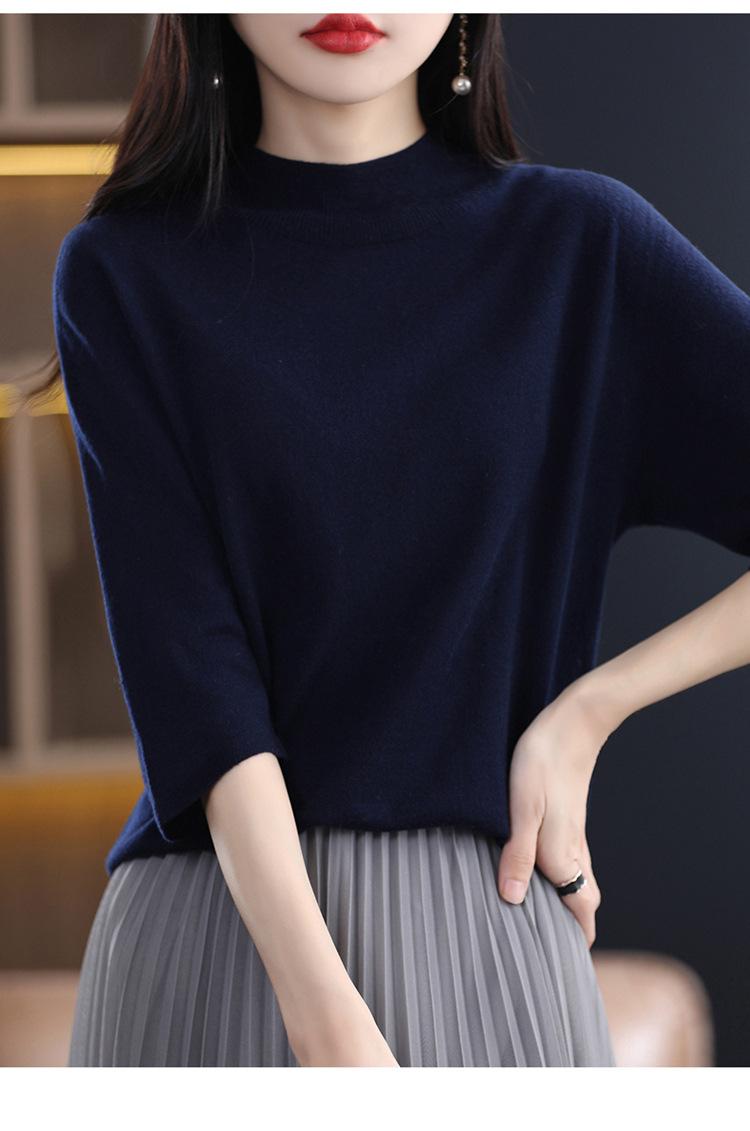 Ropa de primera línea suéter de lana peinada de cuello alto de manga corta para mujer 2024 primavera y verano nuevo camisa básica manga media