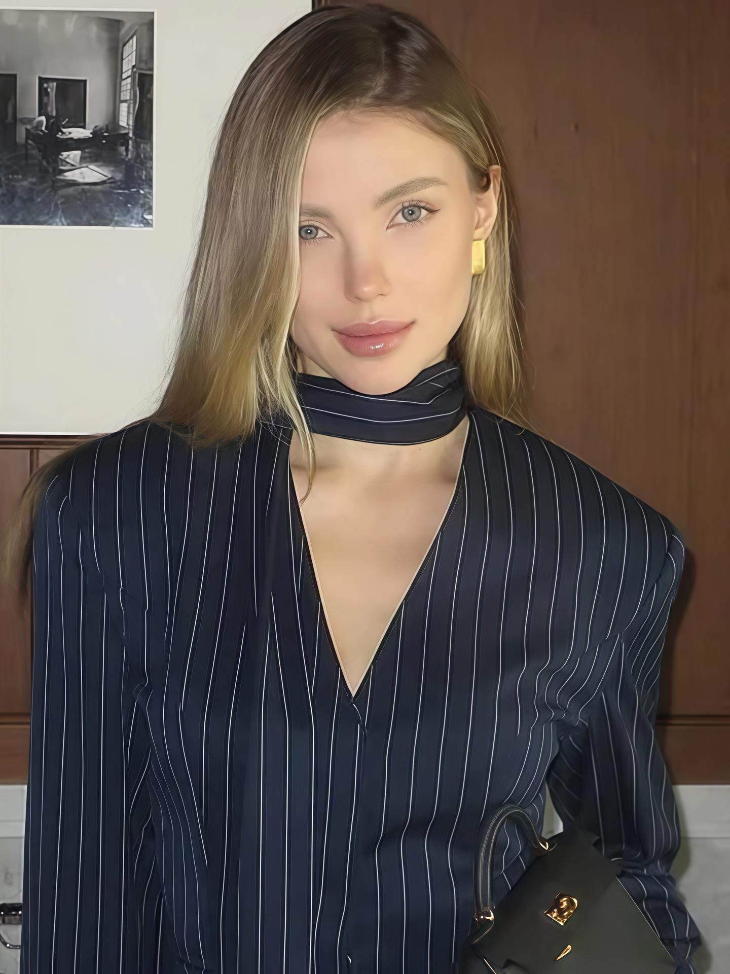Traje Transfronterizo Europeo y Americano 2025 Diseño de Nicho Sensación Temperamento Manga Larga Escote en V Grande Chaqueta de Traje de Alta Gama INS