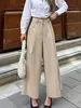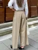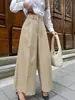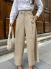 Pantalones casuales plisados caqui de estilo francés para ir al trabajo para mujer, diseño de otoño 2025, pantalones plisados cropped de pierna ancha