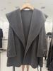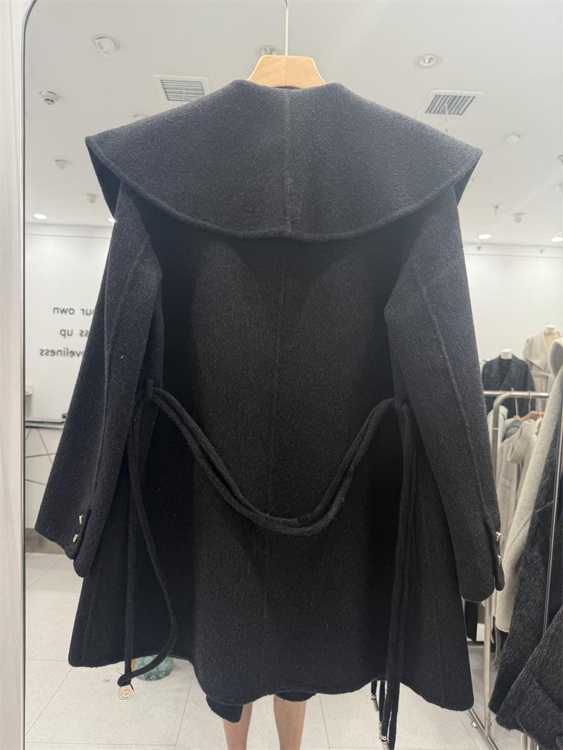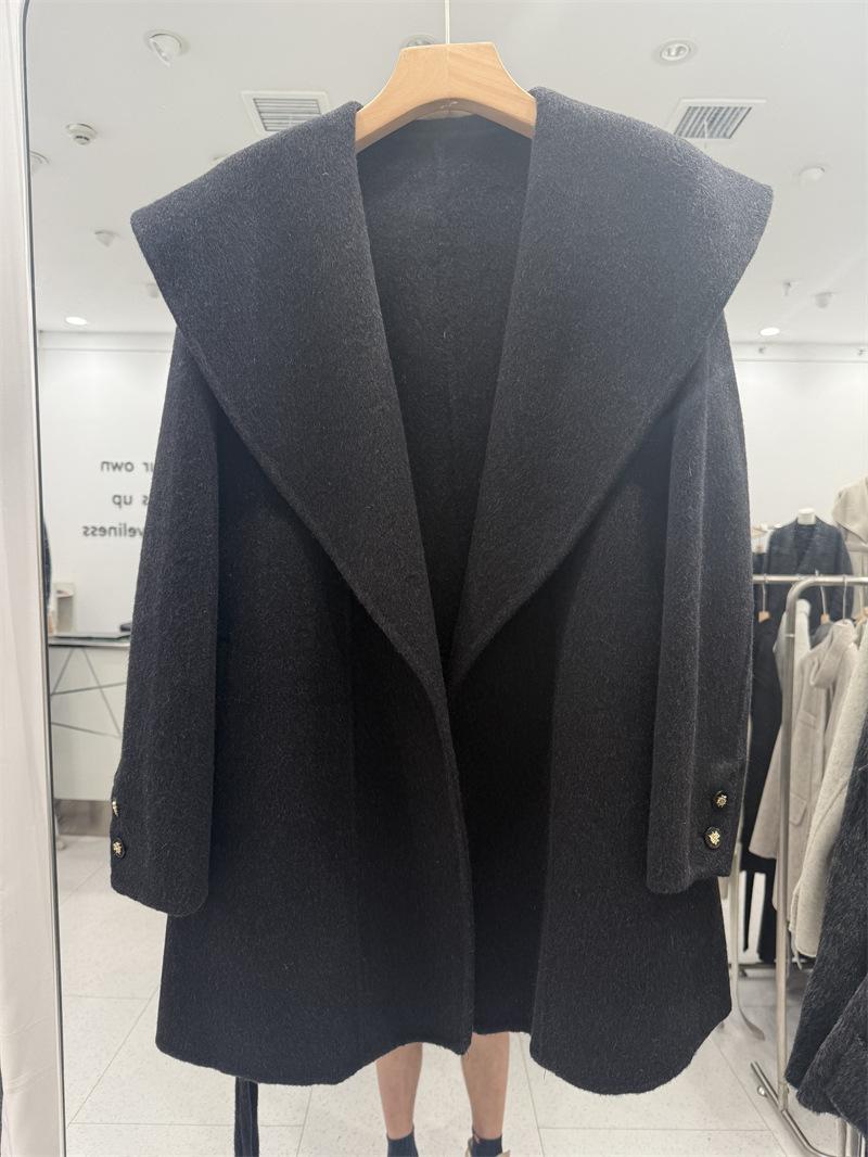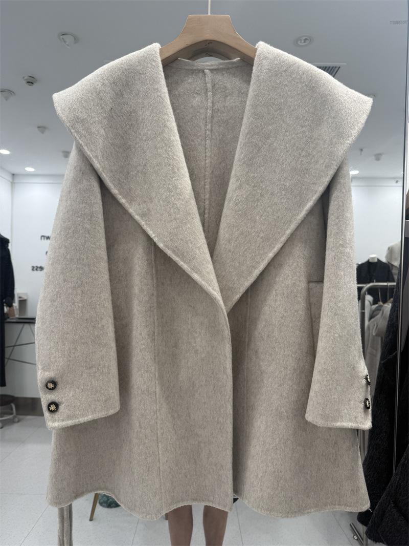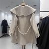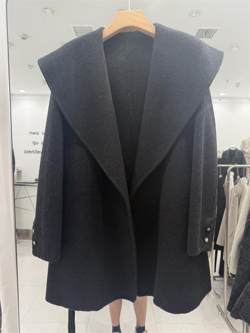Abrigo de Lana de Doble Cara para Mujer de Largo Medio 2025 Otoño/Invierno Nuevo Estilo Coreano Temperamento Cinturón de Lazo Solapa Grande Abrigo de Lana para Mujer