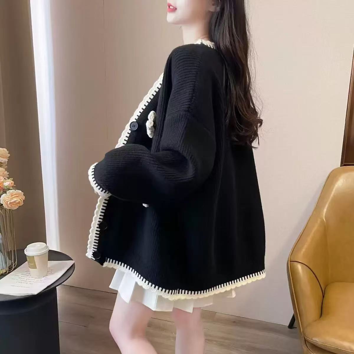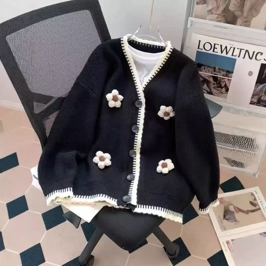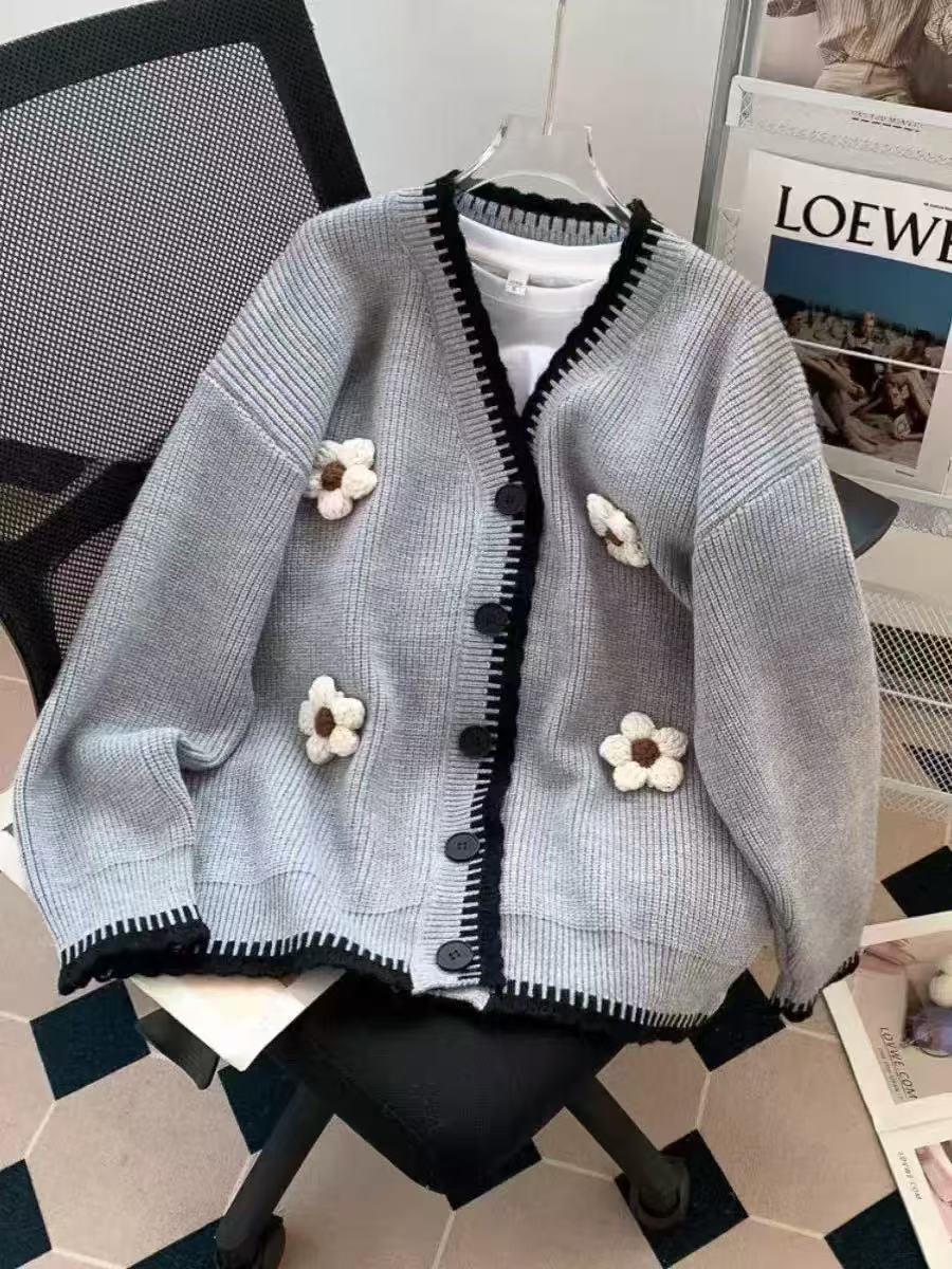 Cárdigan de Flores Tridimensional para Mujer 2025 Nuevo Chaqueta Exterior de Primavera y Otoño Diseño de Estilo Lazy Top de Punto