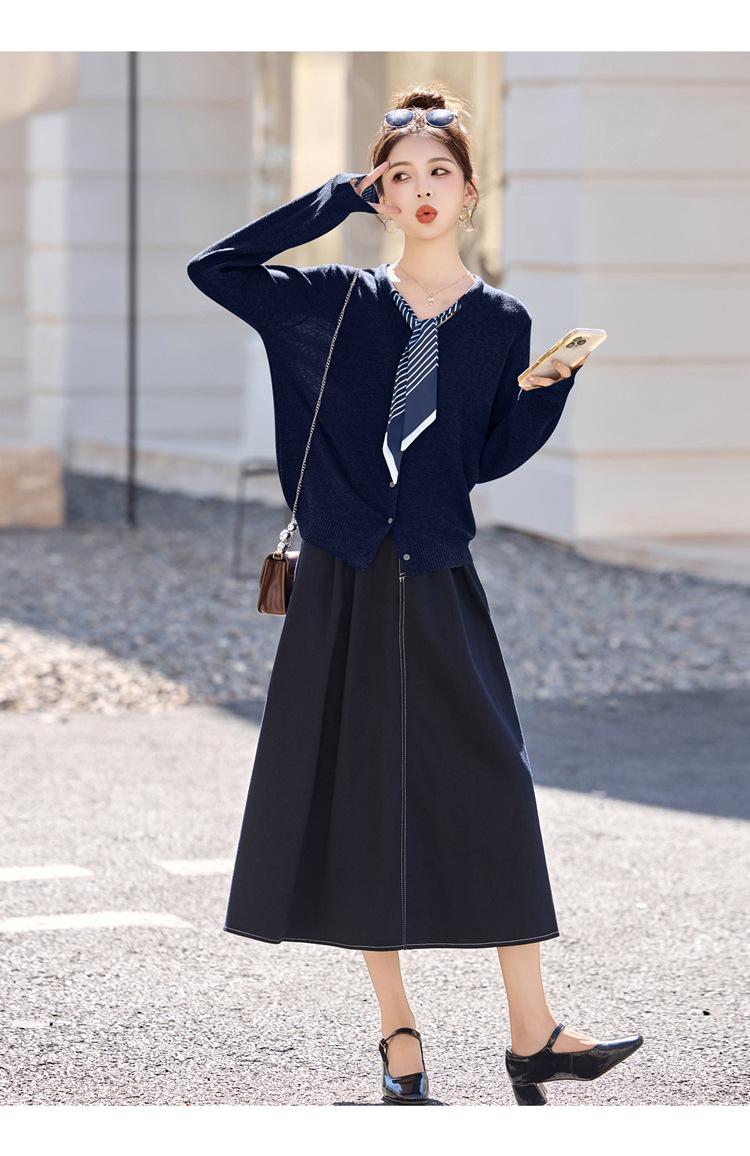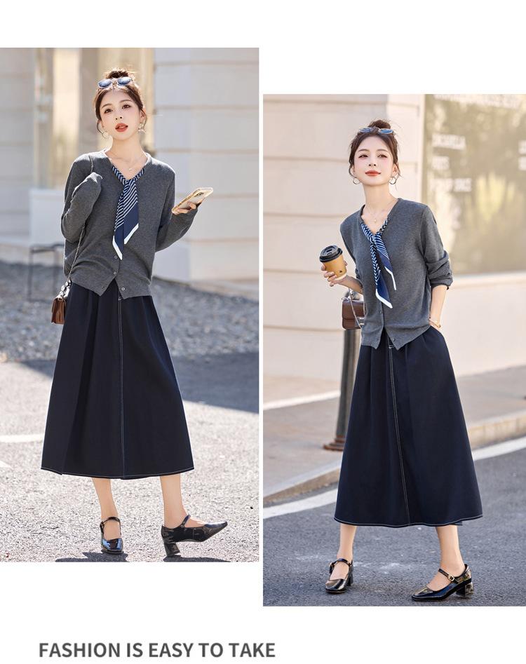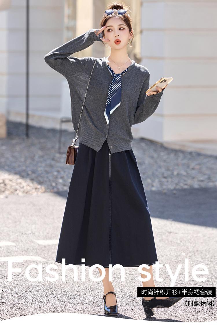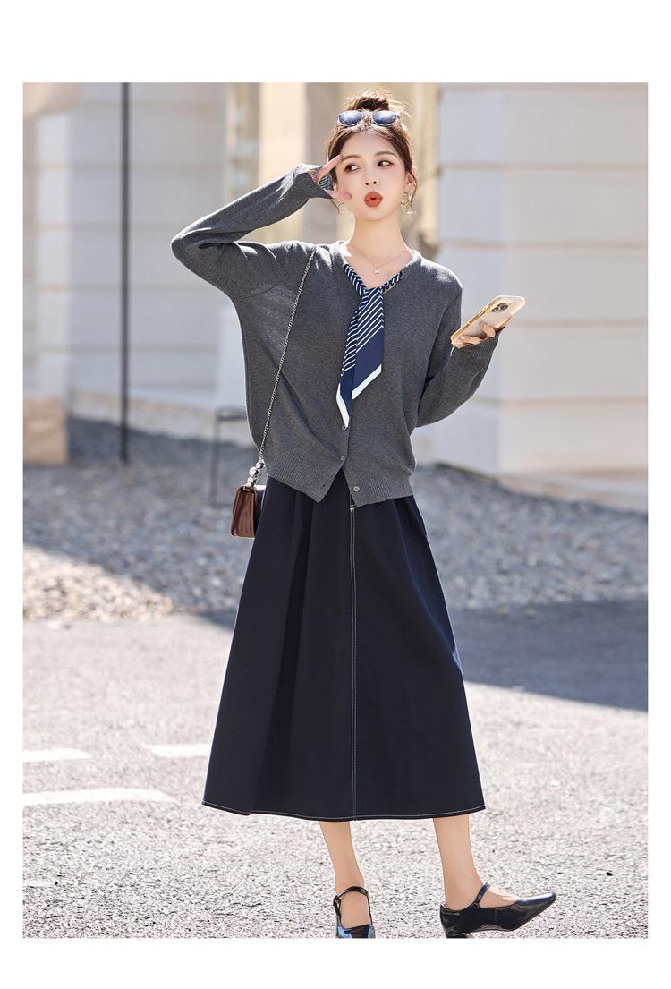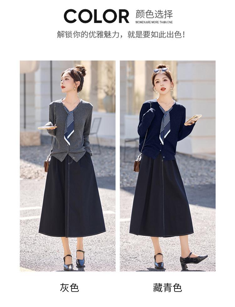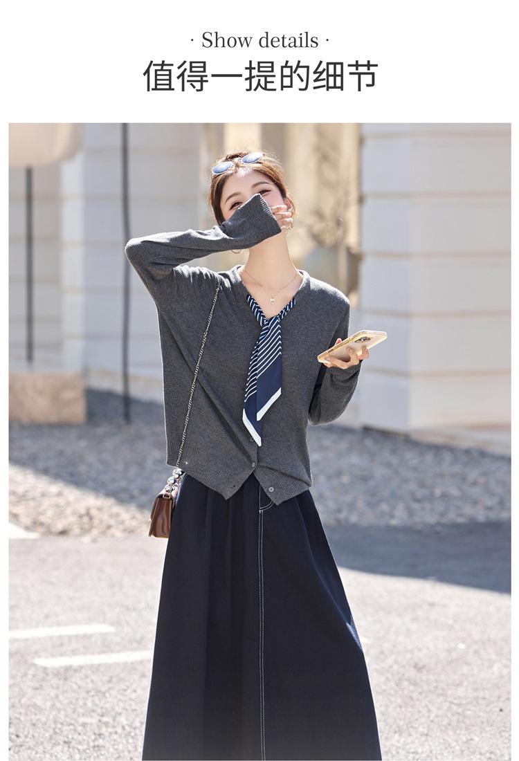 Conjunto de moda de estilo coreano con sensación relajada y perezosa, vestido de punto nuevo de otoño 2025, cárdigan, cuello bufanda, vestido lencero, conjunto de dos piezas