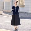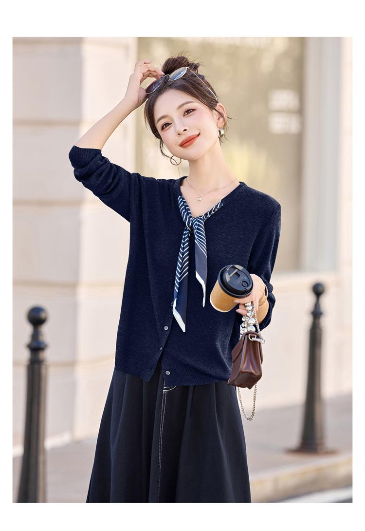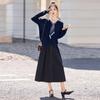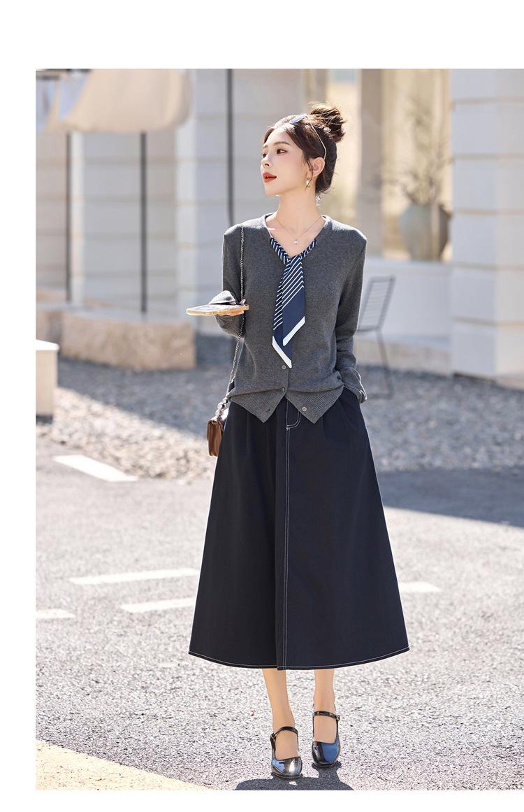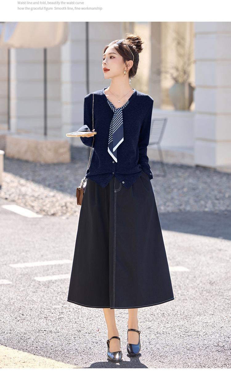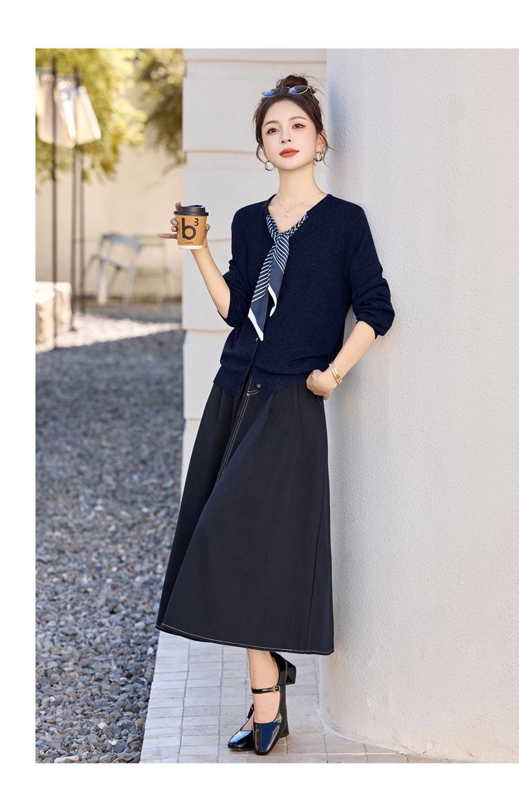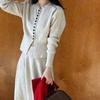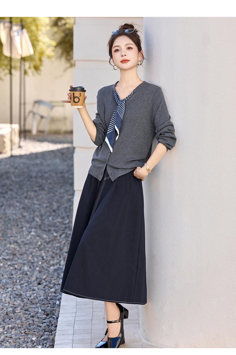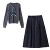 Conjunto de moda de estilo coreano con sensación relajada y perezosa, vestido de punto nuevo de otoño 2025, cárdigan, cuello bufanda, vestido lencero, conjunto de dos piezas
