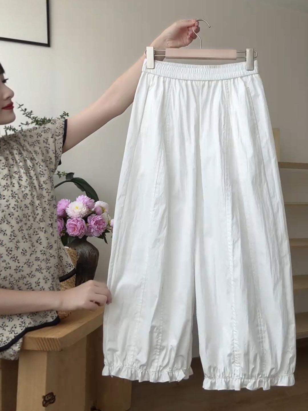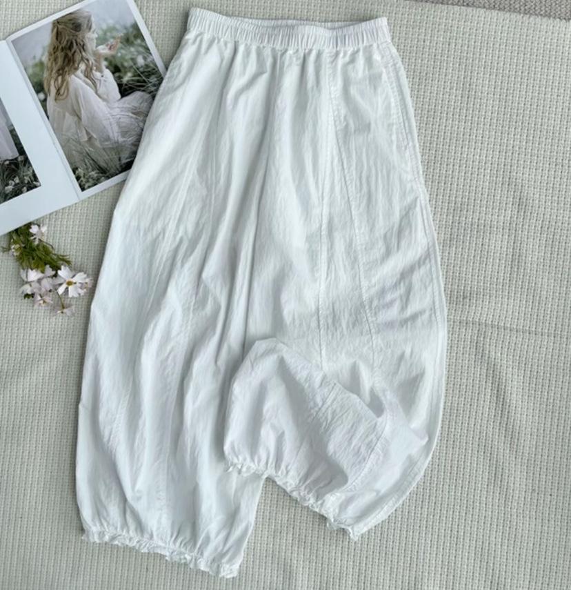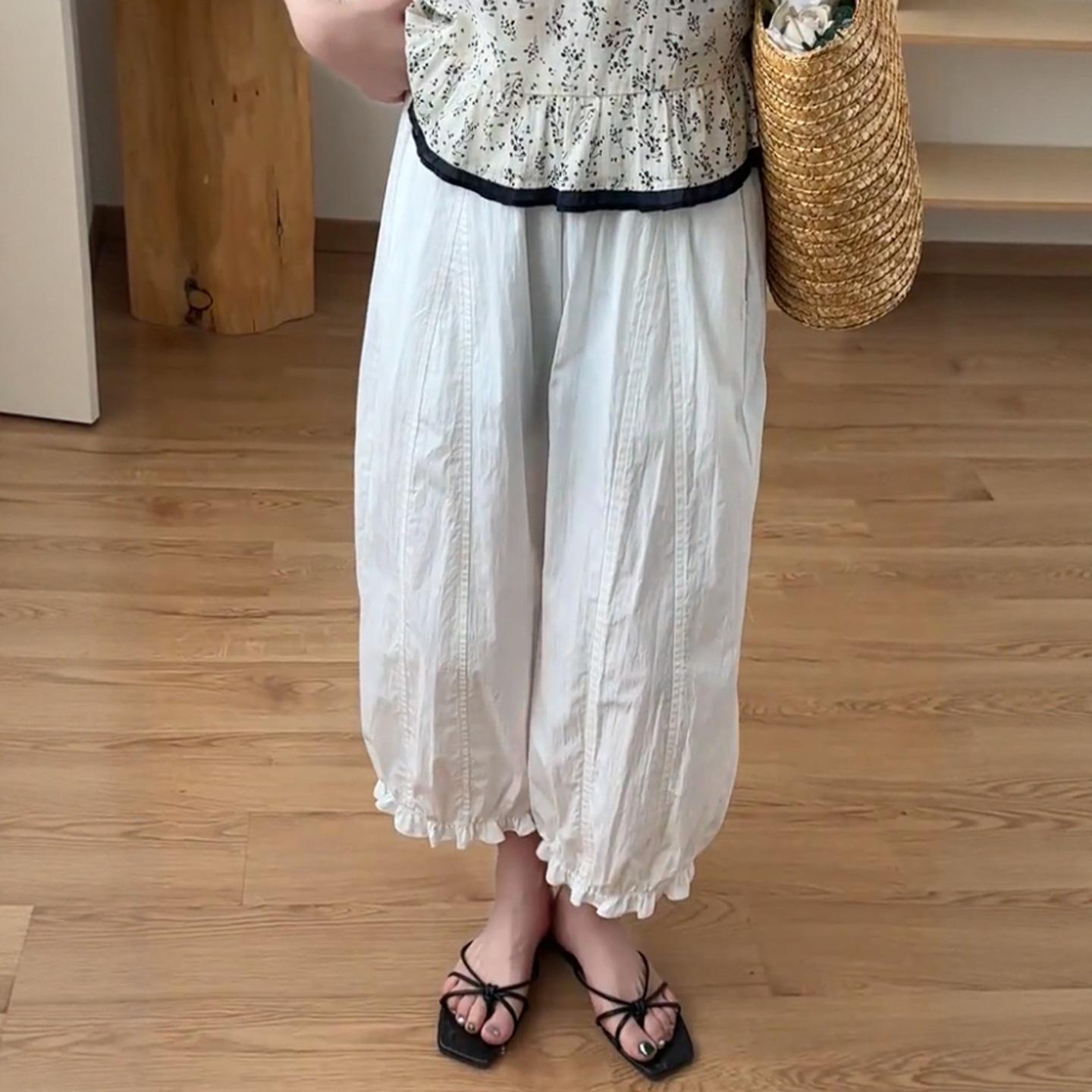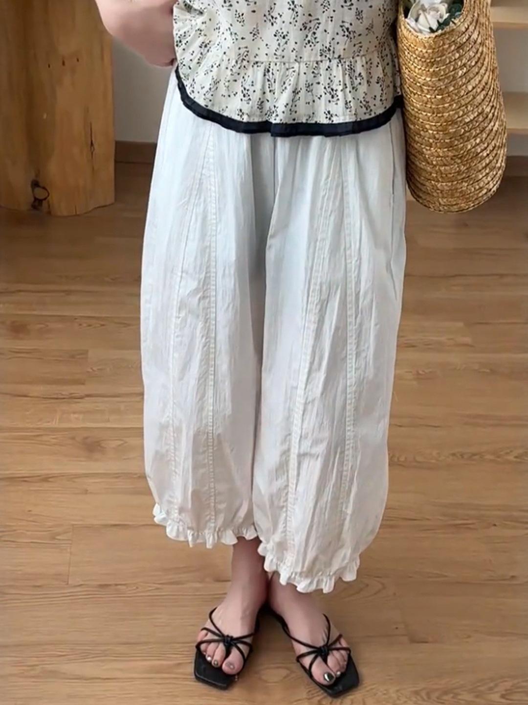 Pantalones casuales de encaje recortados de moda populares y elegantes para mujer 2025 Verano Nueva moda Pantalones bombachos de cintura elástica
