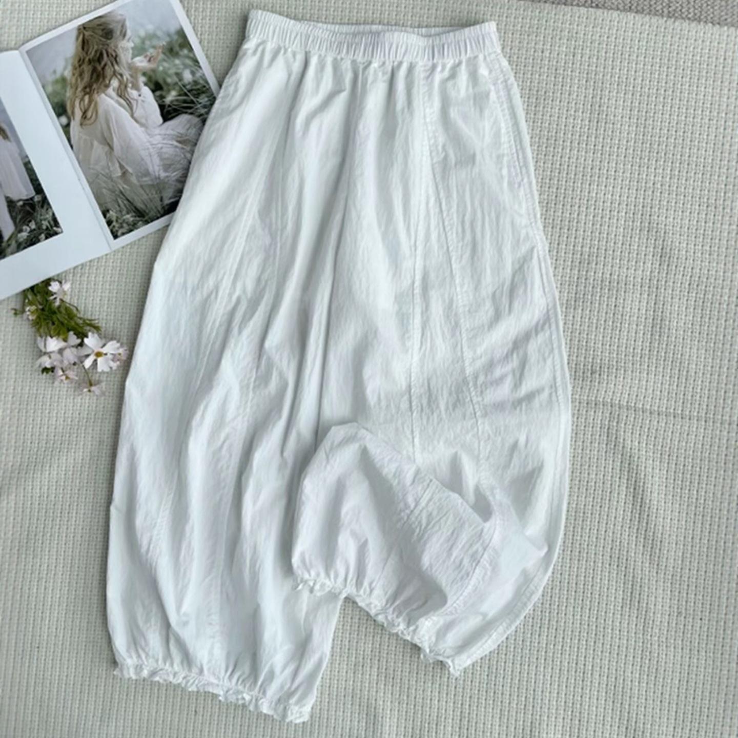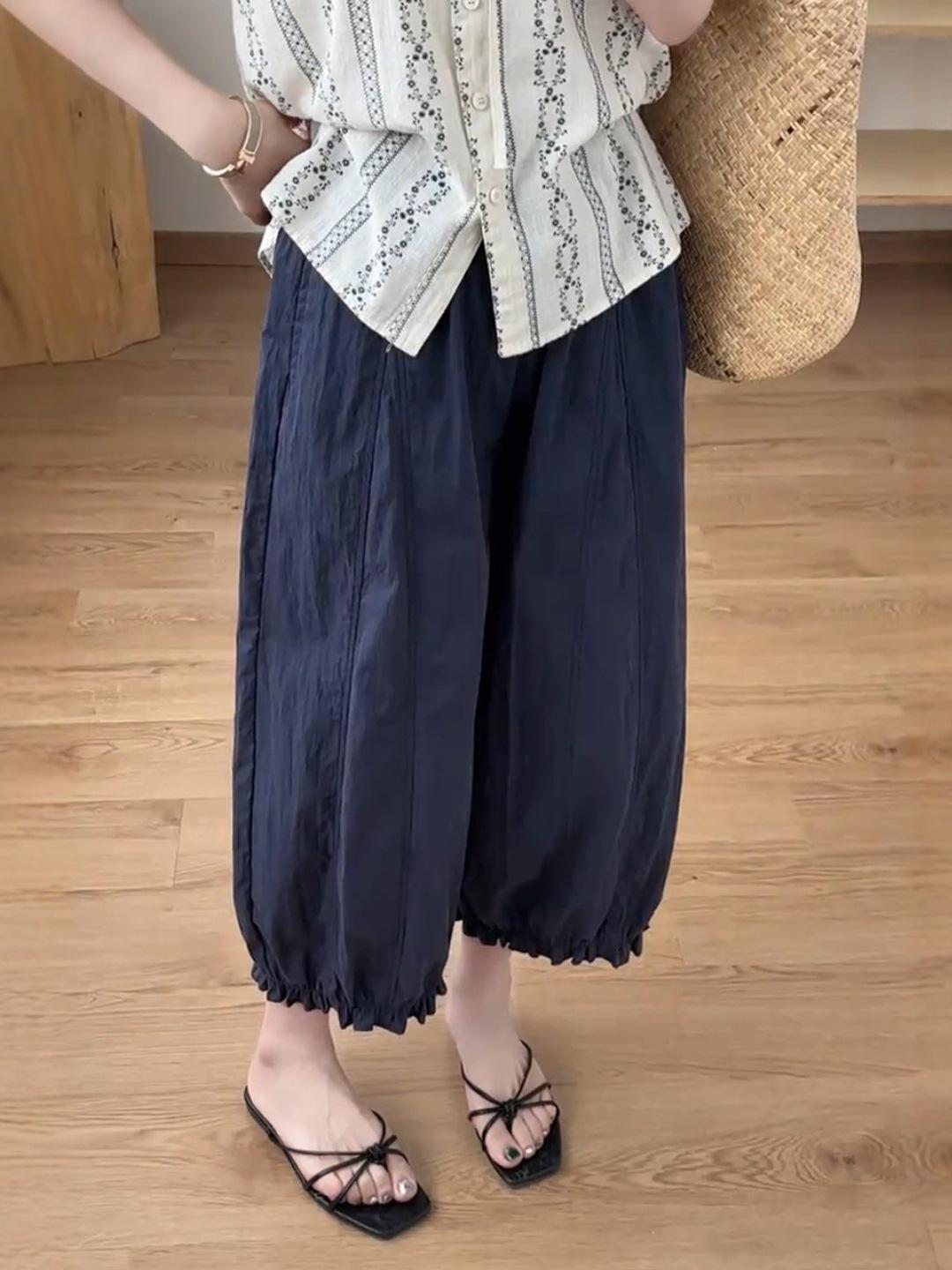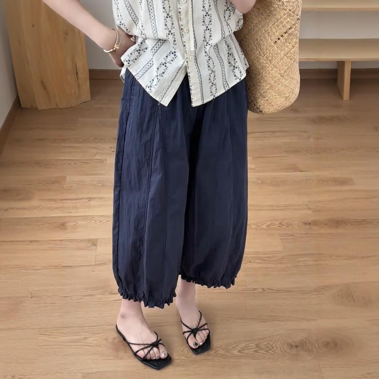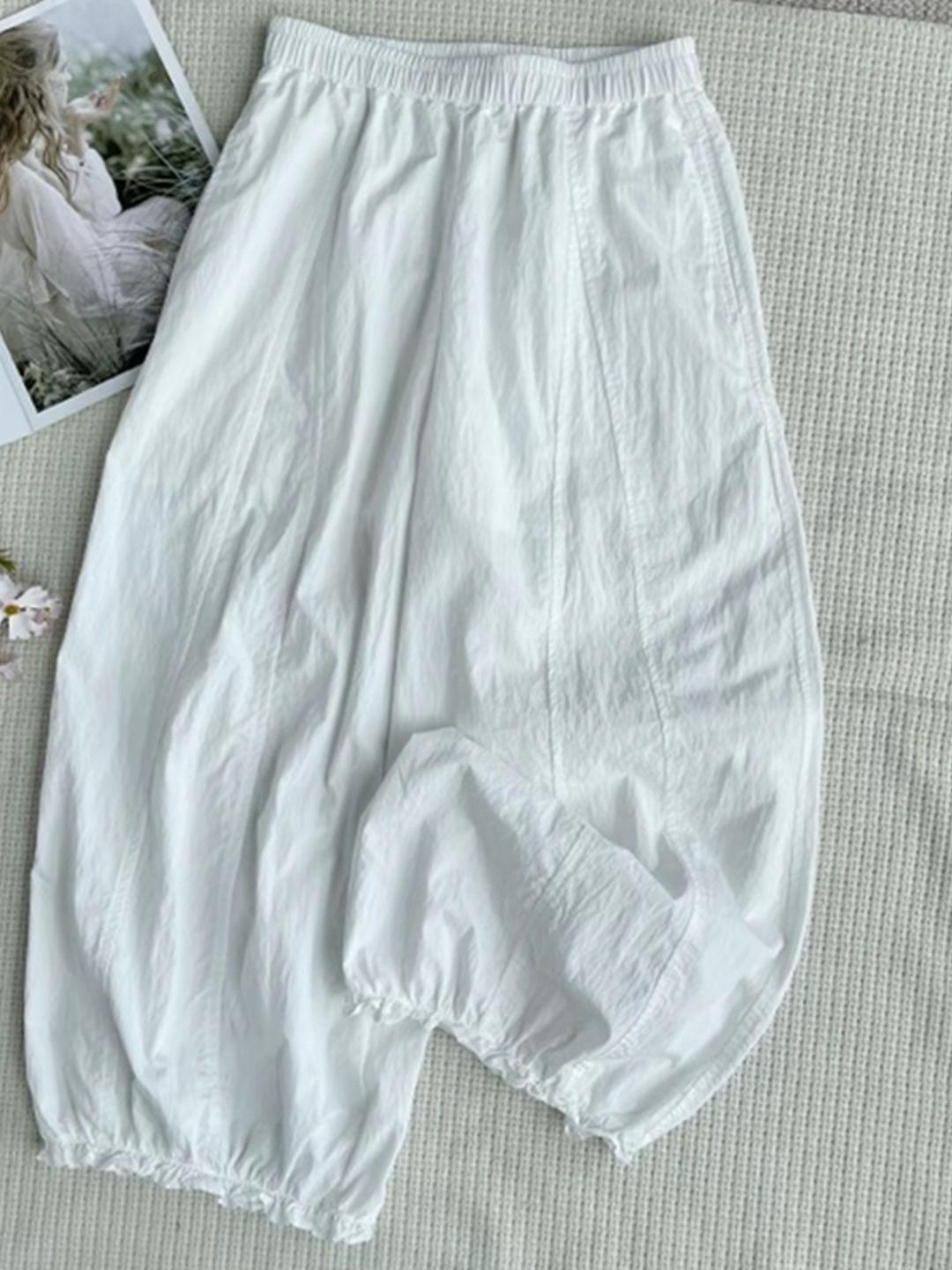 Pantalones casuales de encaje recortados de moda populares y elegantes para mujer 2025 Verano Nueva moda Pantalones bombachos de cintura elástica
