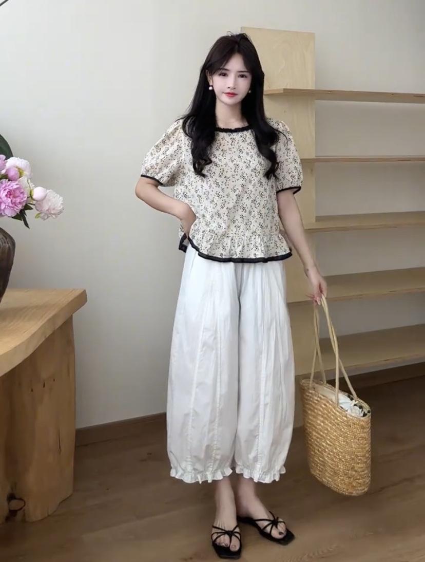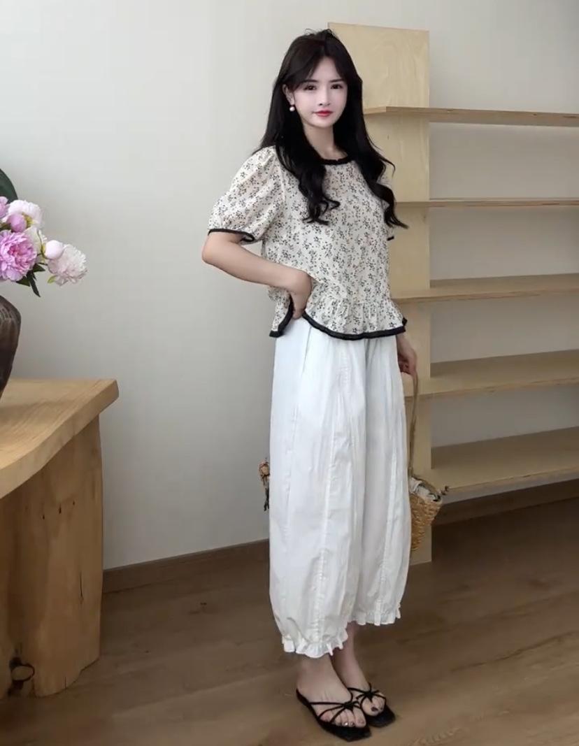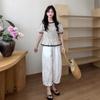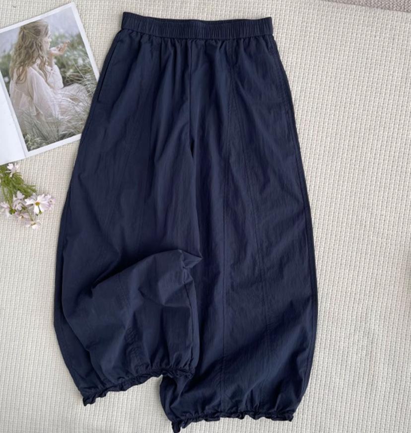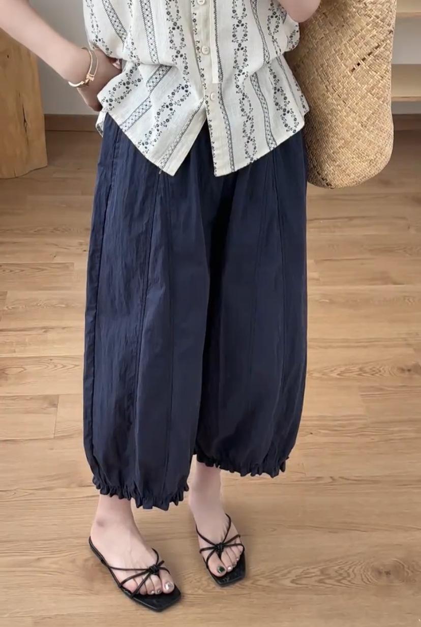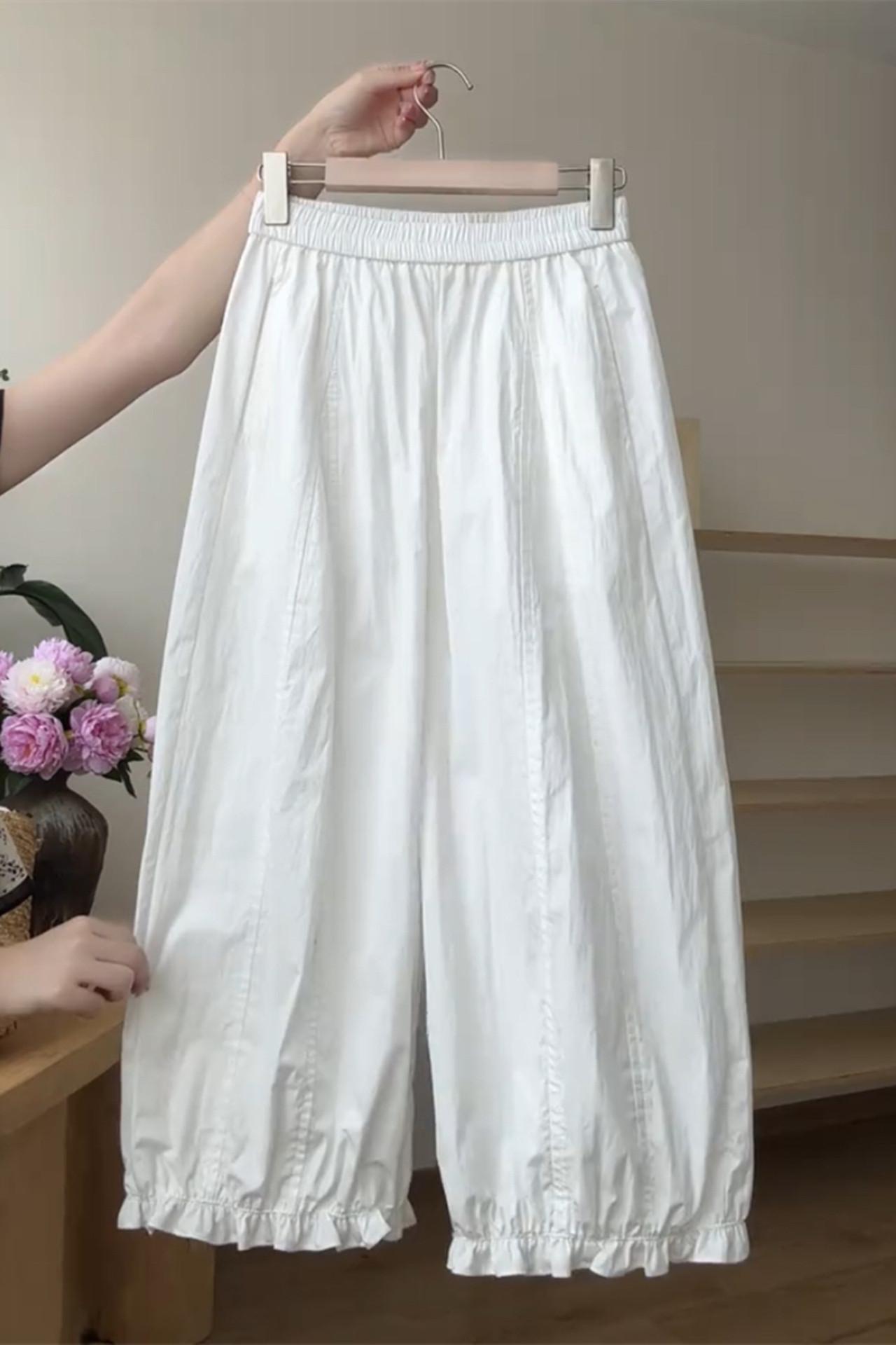 Pantalones casuales de encaje recortados de moda populares y elegantes para mujer 2025 Verano Nueva moda Pantalones bombachos de cintura elástica