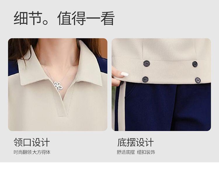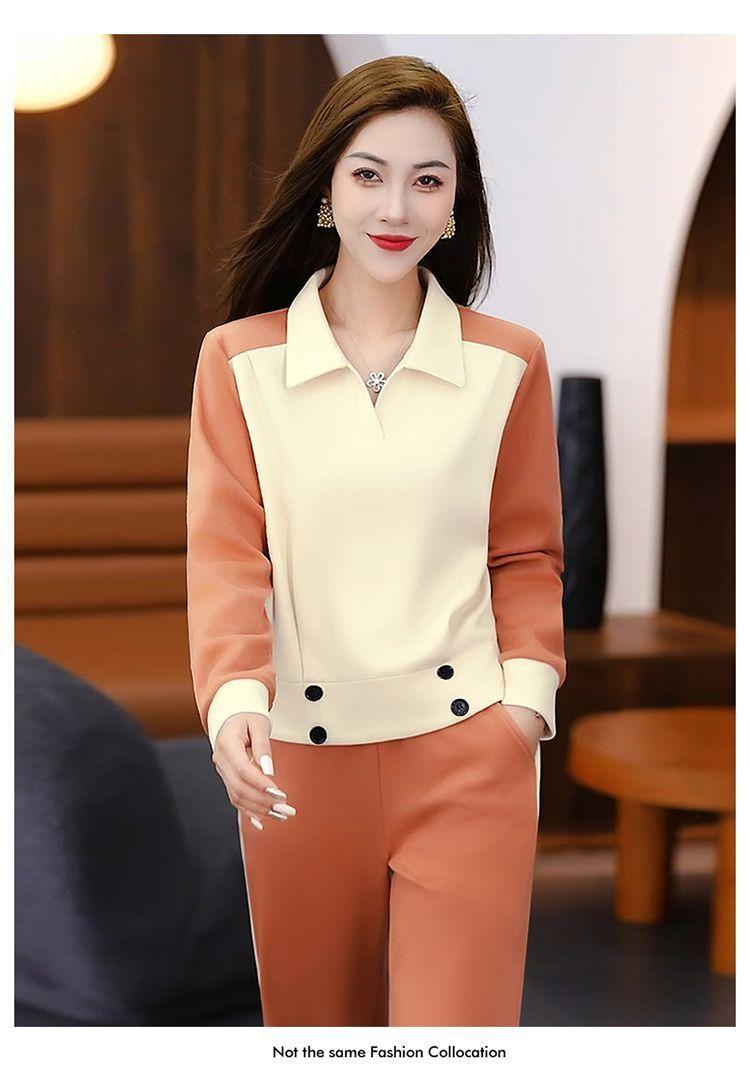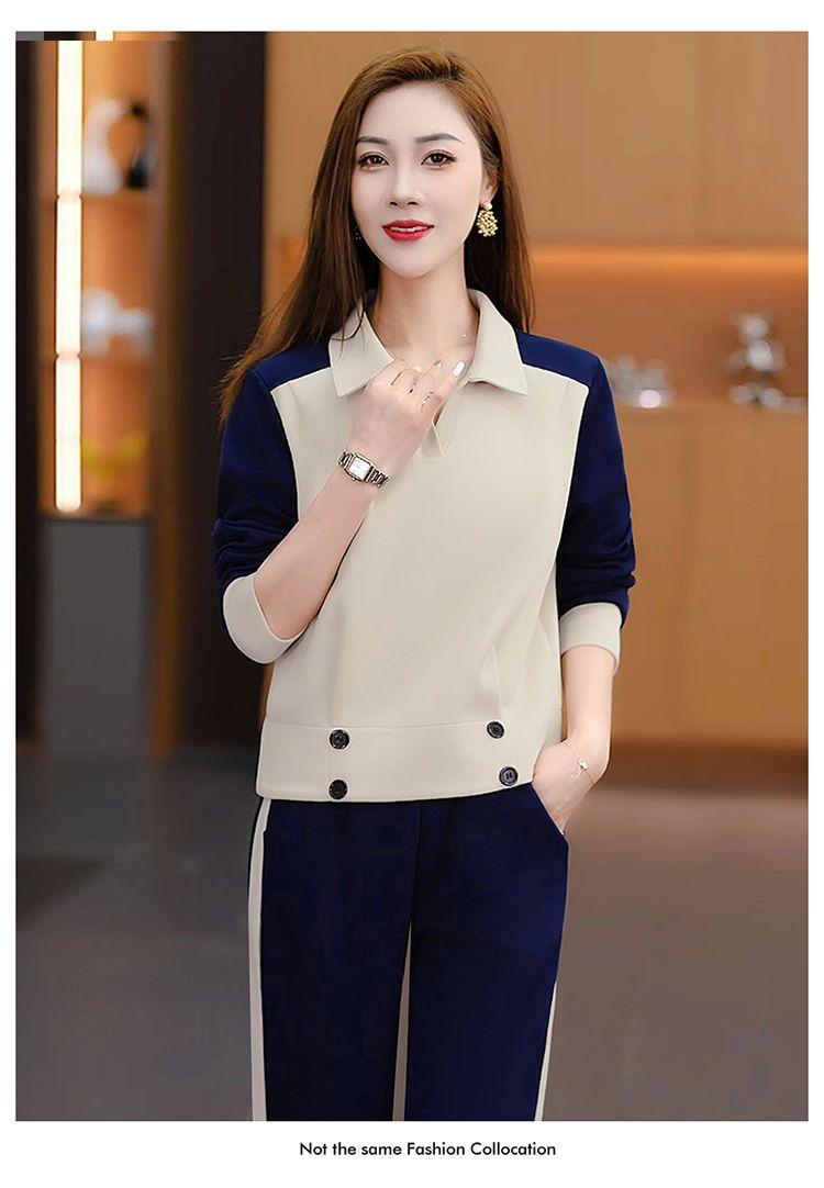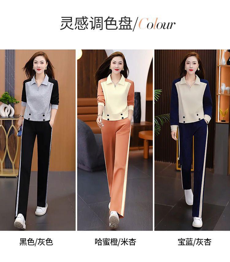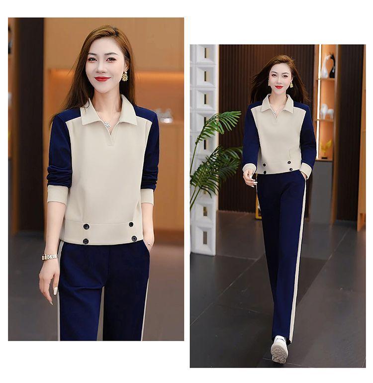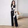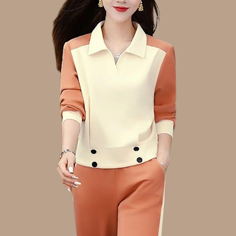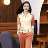 Conjunto Casual Petite de Bloques de Color a la Moda para Mujer Primavera Otoño 2025 Top Elegante con Cuello Vuelto Pantalones de Pierna Ancha Conjunto de Dos Piezas que Reduce la Edad