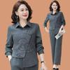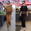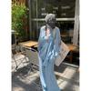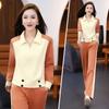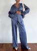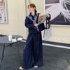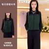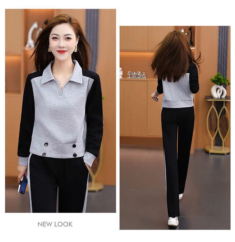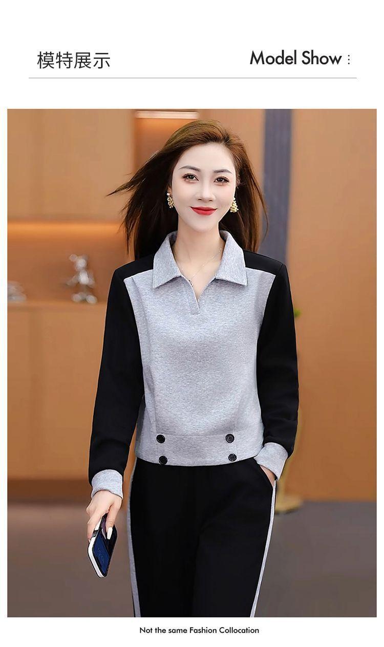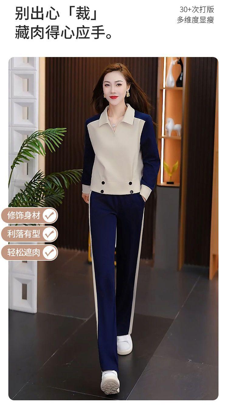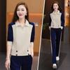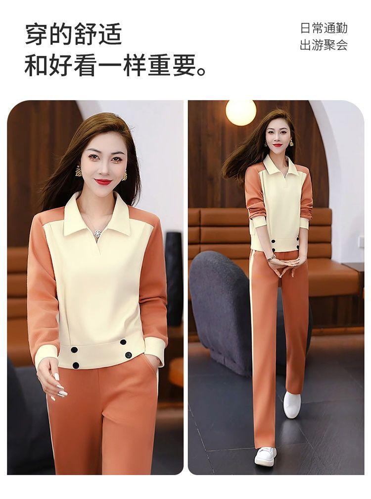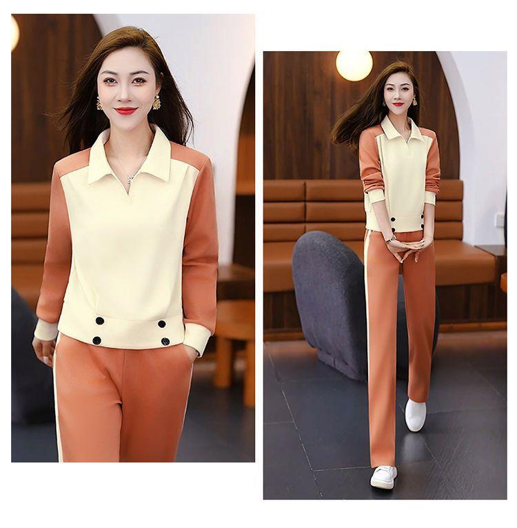 Conjunto Casual Petite de Bloques de Color a la Moda para Mujer Primavera Otoño 2025 Top Elegante con Cuello Vuelto Pantalones de Pierna Ancha Conjunto de Dos Piezas que Reduce la Edad