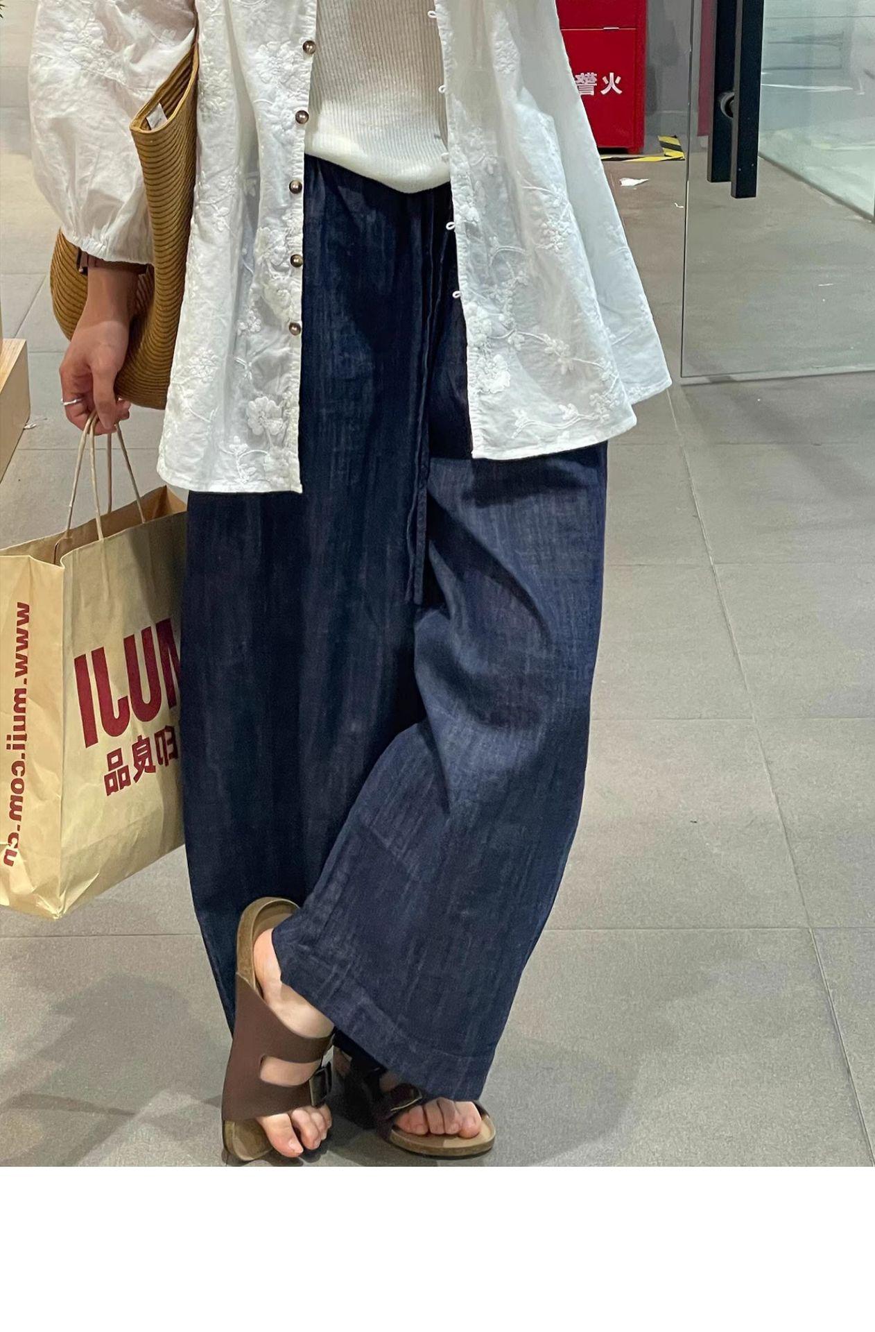 Jeans Retro Azul Oscuro Talla Grande Mujer Verano Delgados Gordos MM Sueltos Cintura Alta Adelgazantes Pierna Recta Pierna Ancha Pantalones Recortados