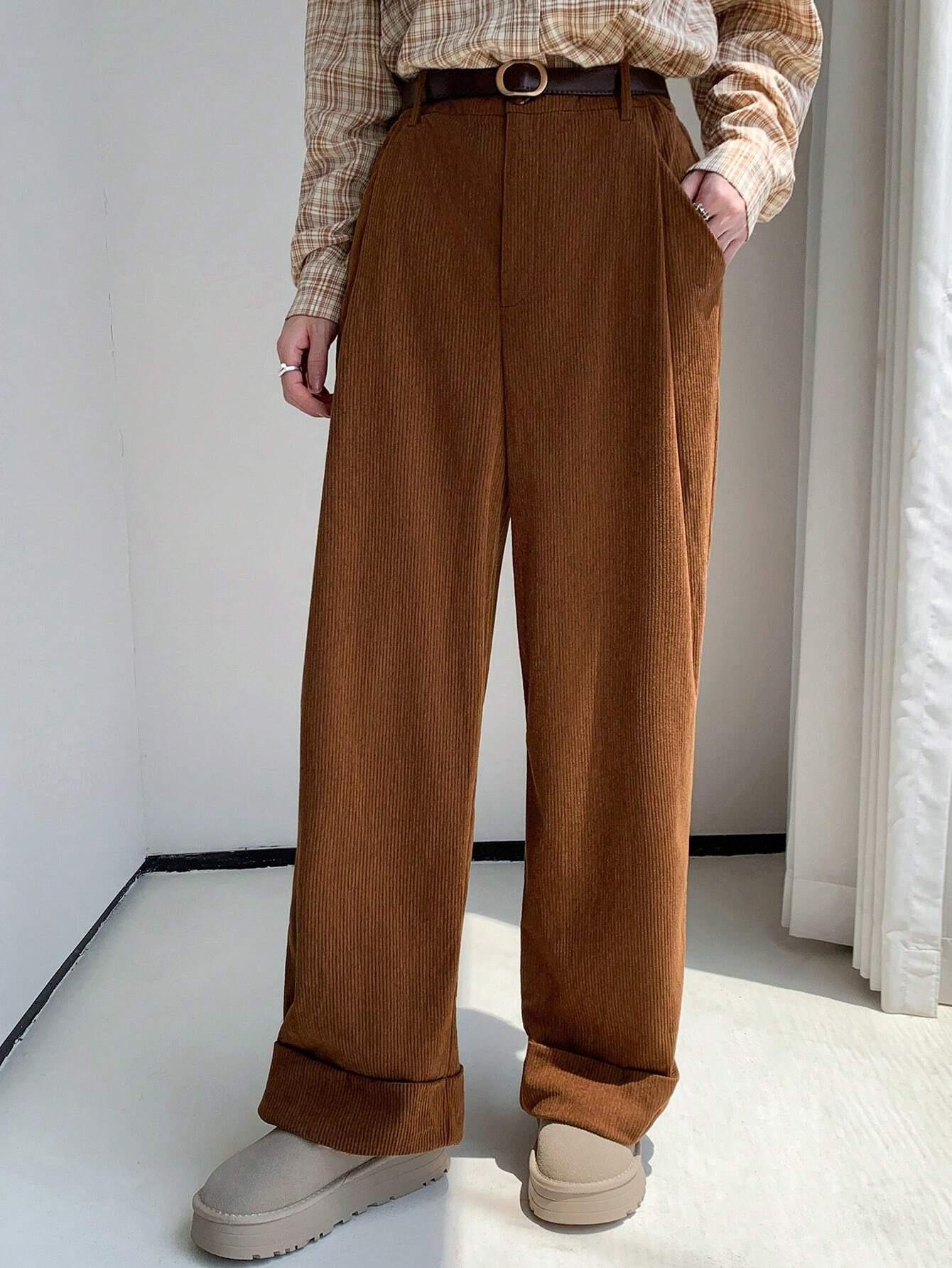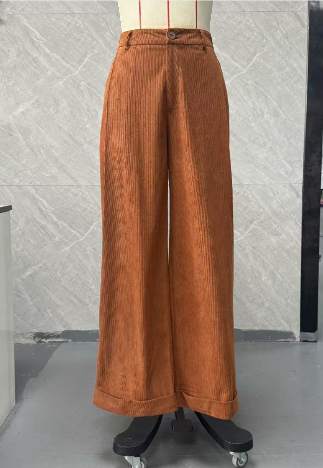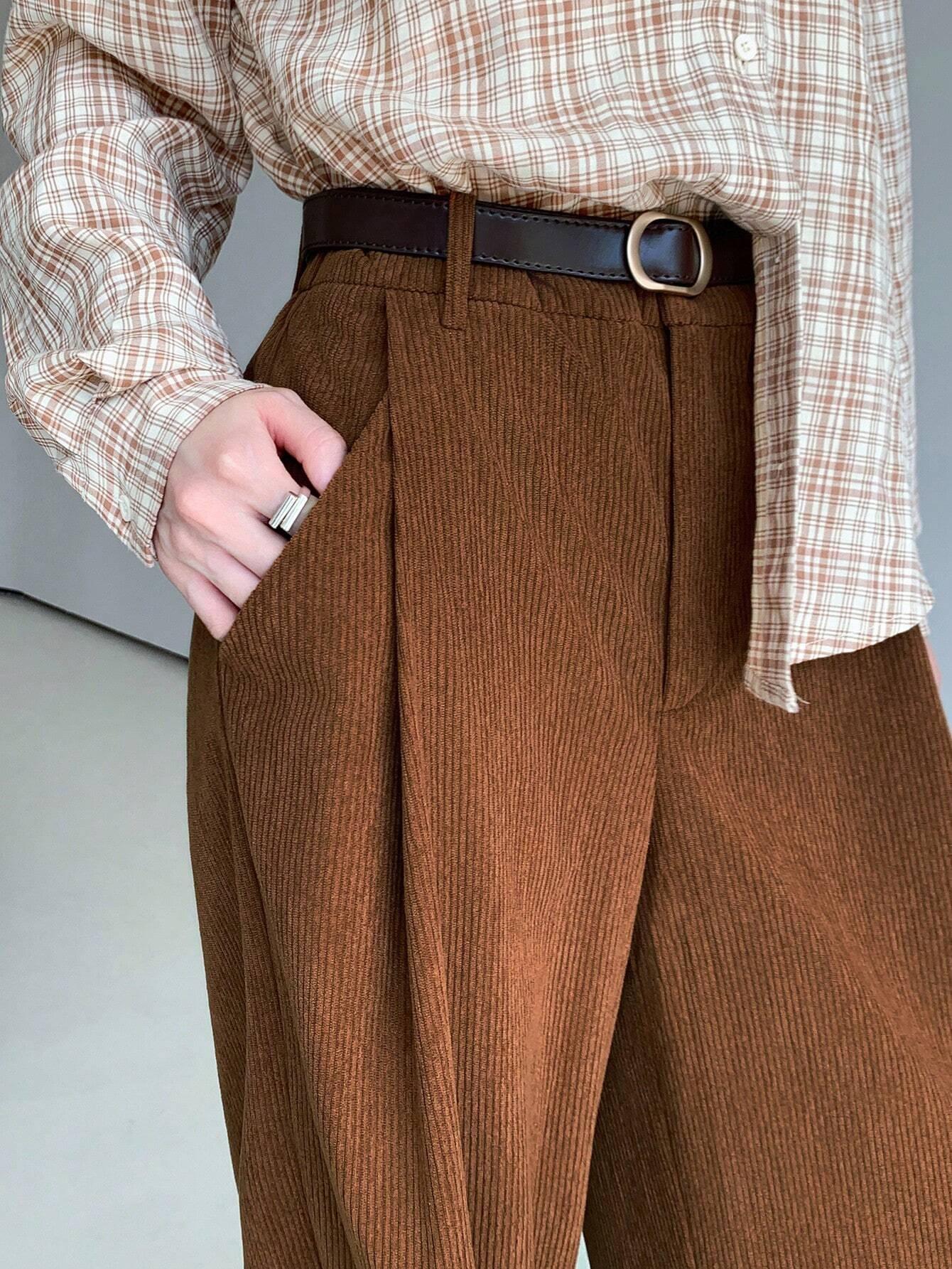 Pantalones casuales holgados europeos y americanos de cintura elástica holgada adelgazantes de pierna ancha, modernos y versátiles para mujeres petite, pantalones de pierna ancha de otoño