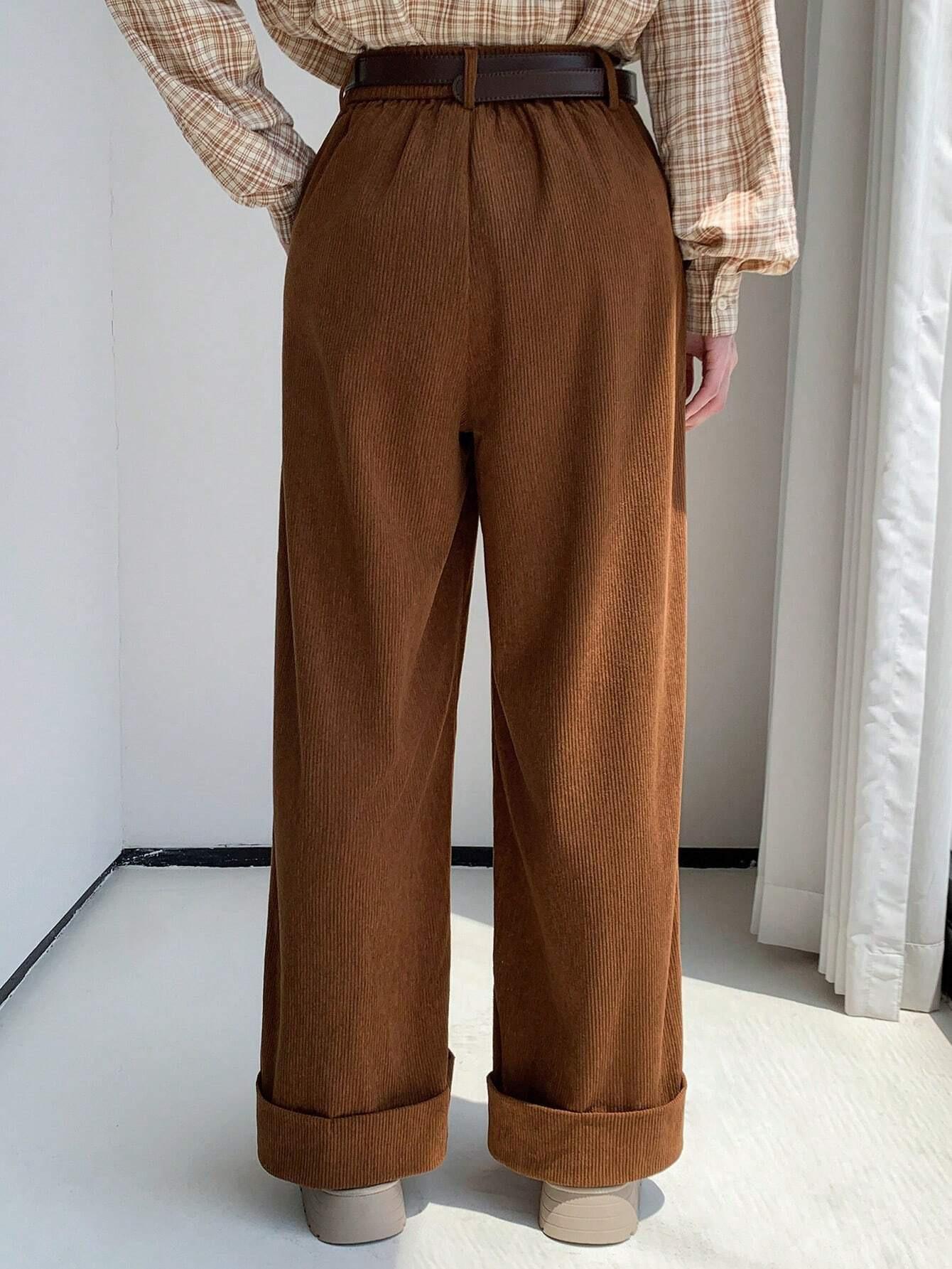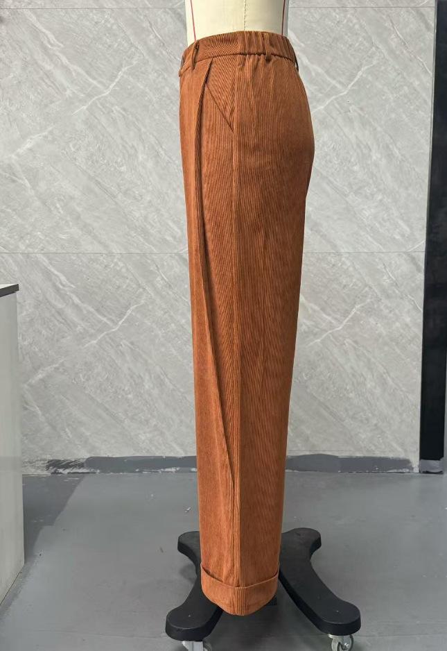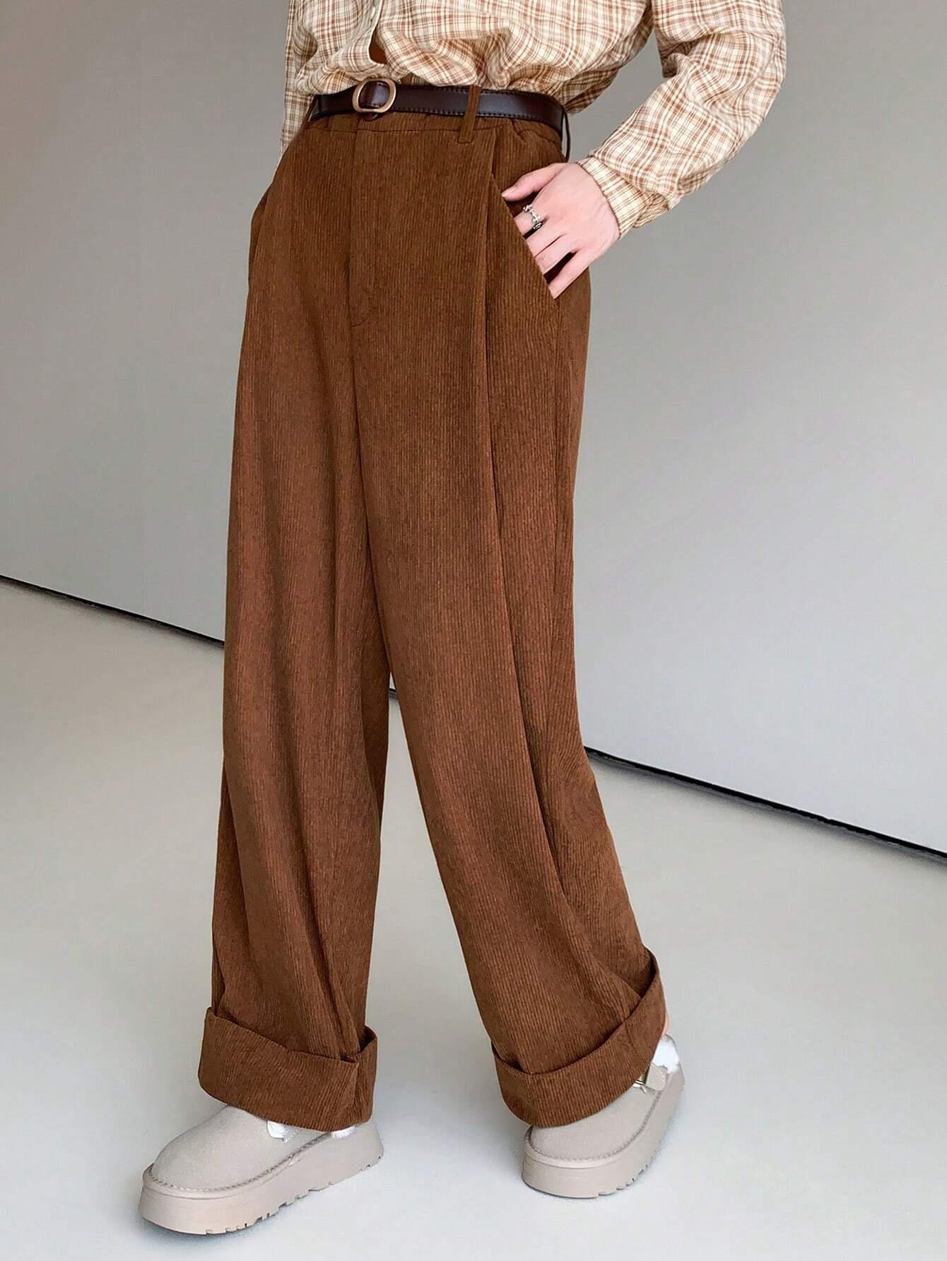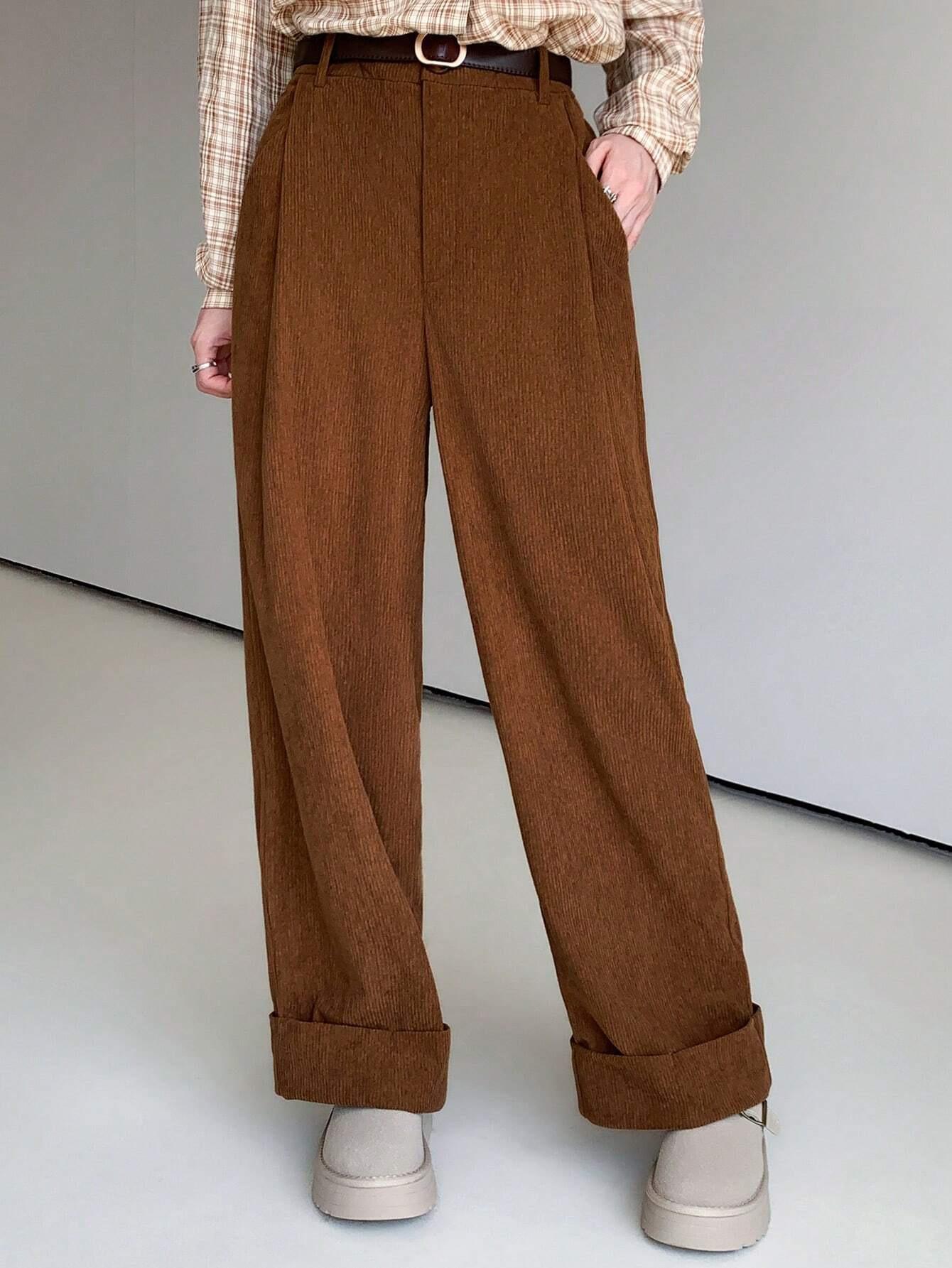 Pantalones casuales holgados europeos y americanos de cintura elástica holgada adelgazantes de pierna ancha, modernos y versátiles para mujeres petite, pantalones de pierna ancha de otoño