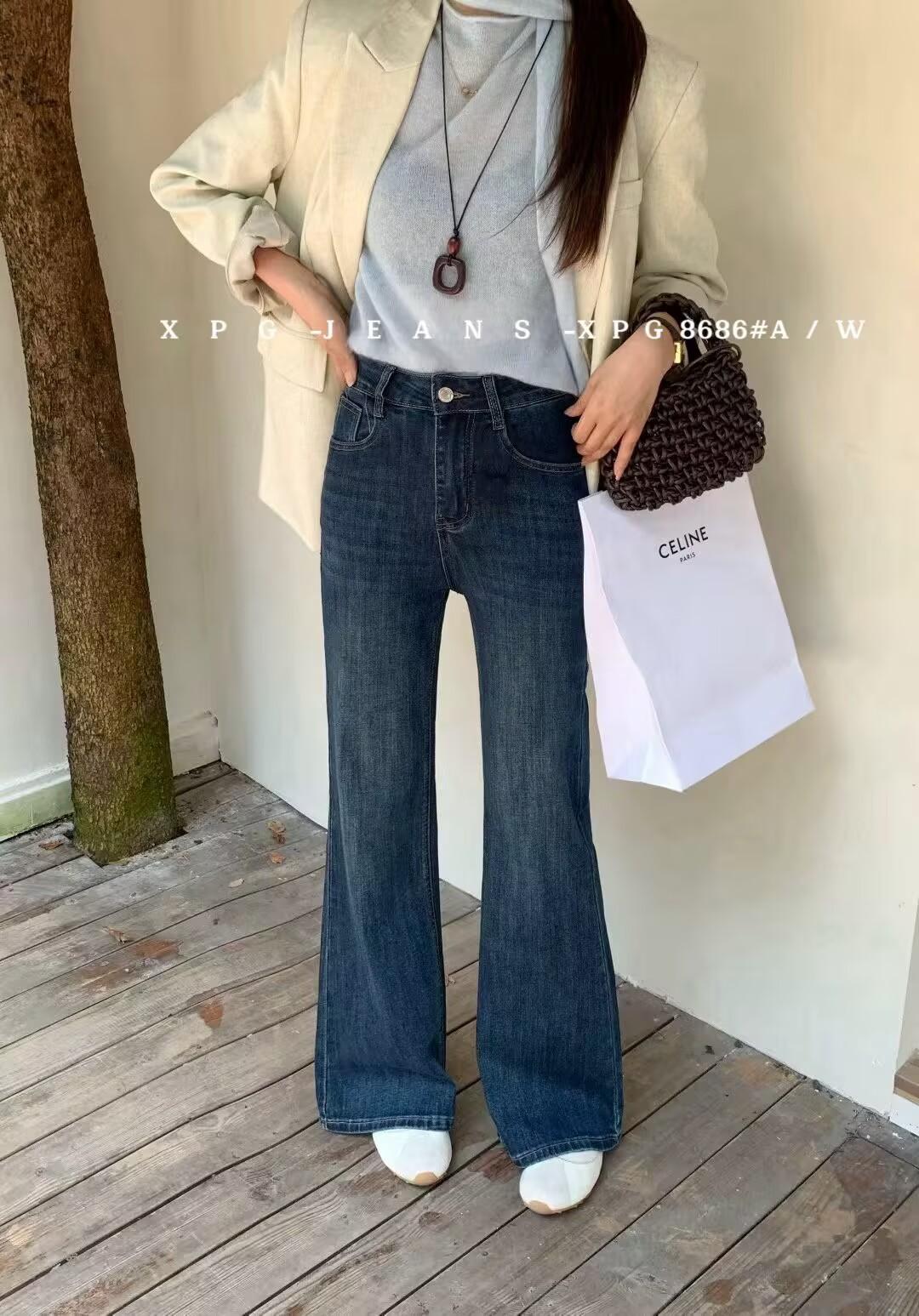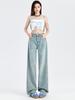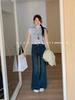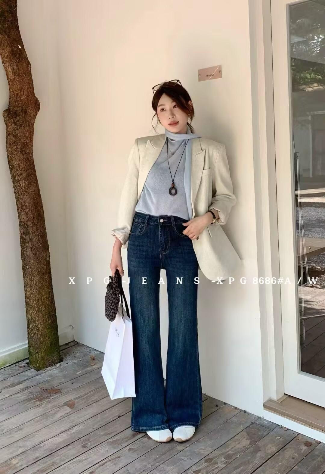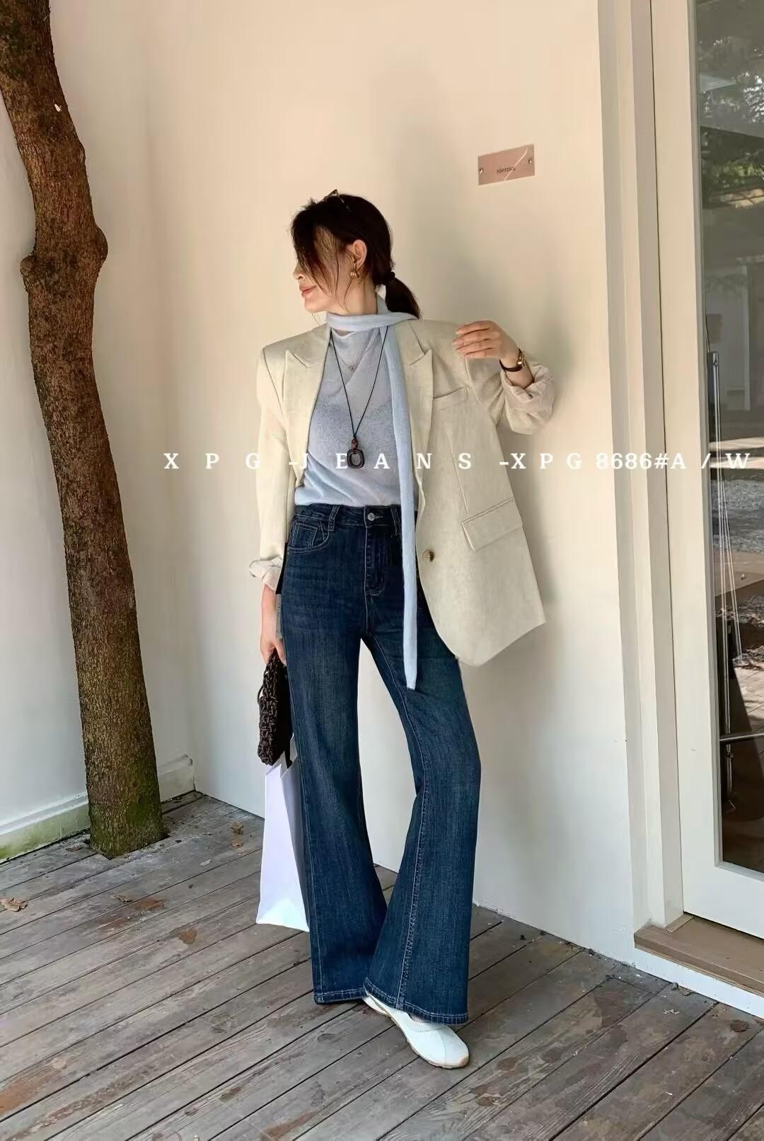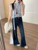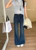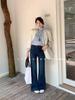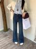 Pantalones acampanados micro acampanados de mezclilla azul retro versátiles de cintura alta para mujer 2025 principios de otoño drapeado pierna recta pantalones acampanados moda moda casual