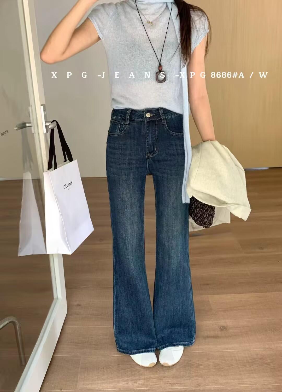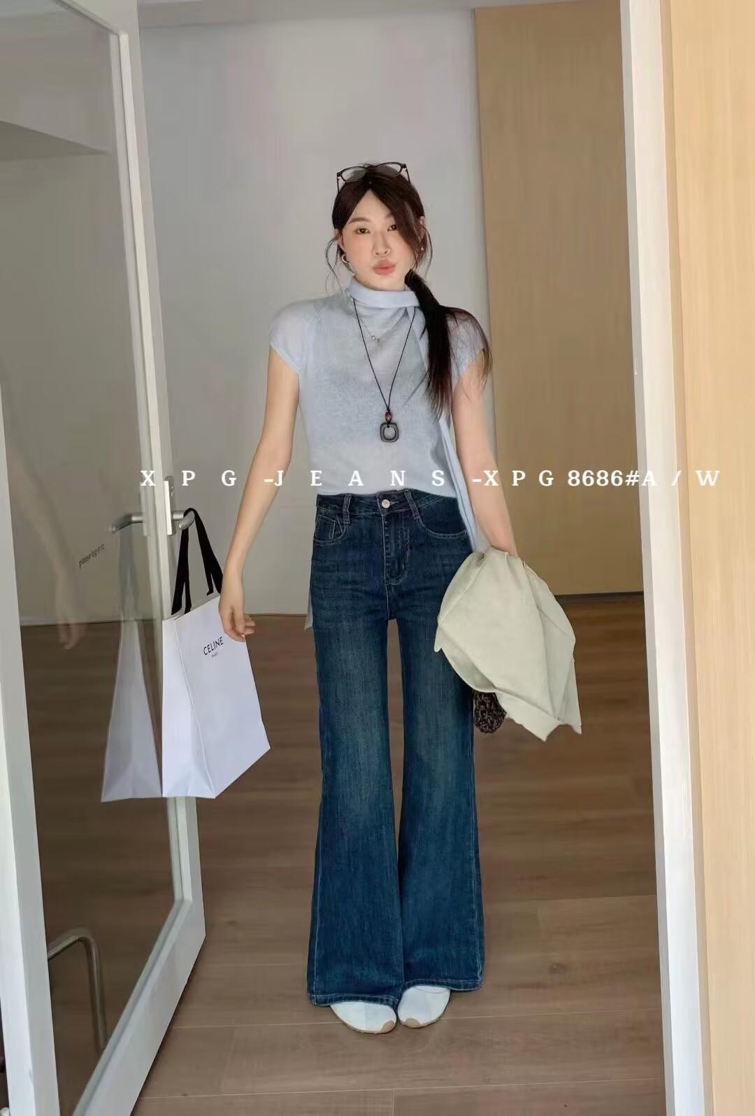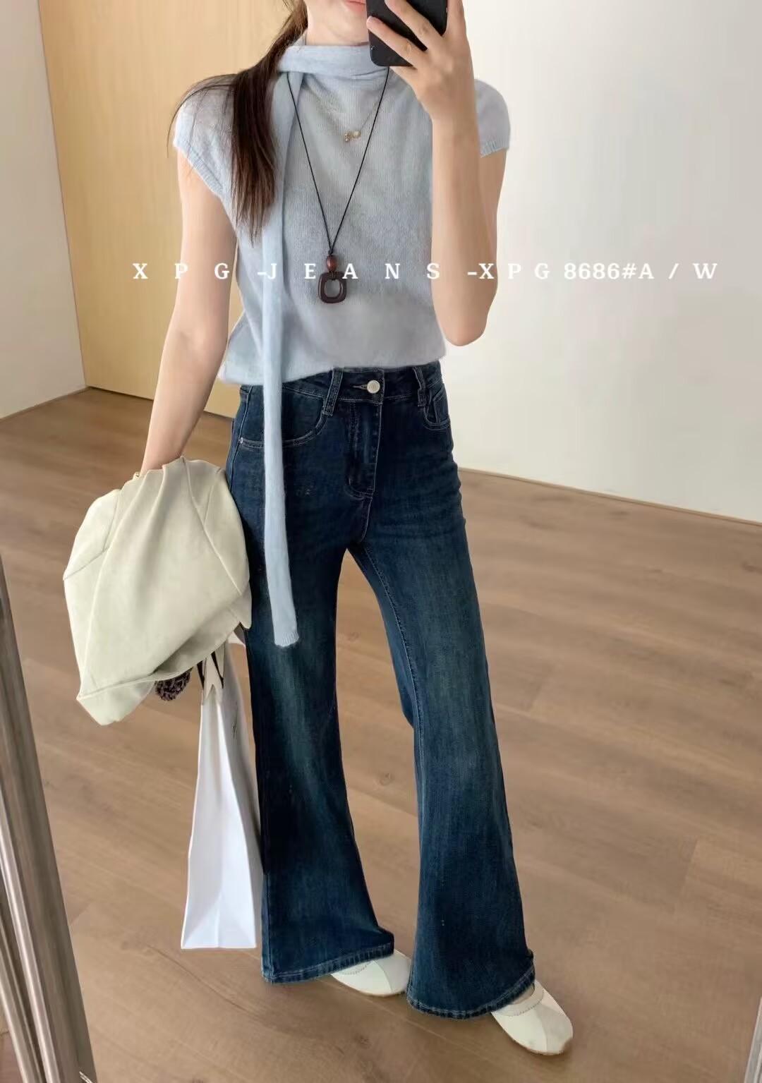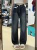 Pantalones acampanados micro acampanados de mezclilla azul retro versátiles de cintura alta para mujer 2025 principios de otoño drapeado pierna recta pantalones acampanados moda moda casual