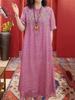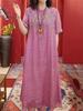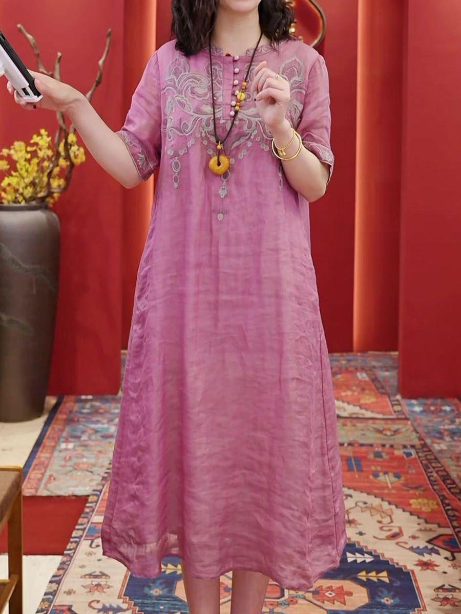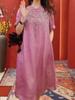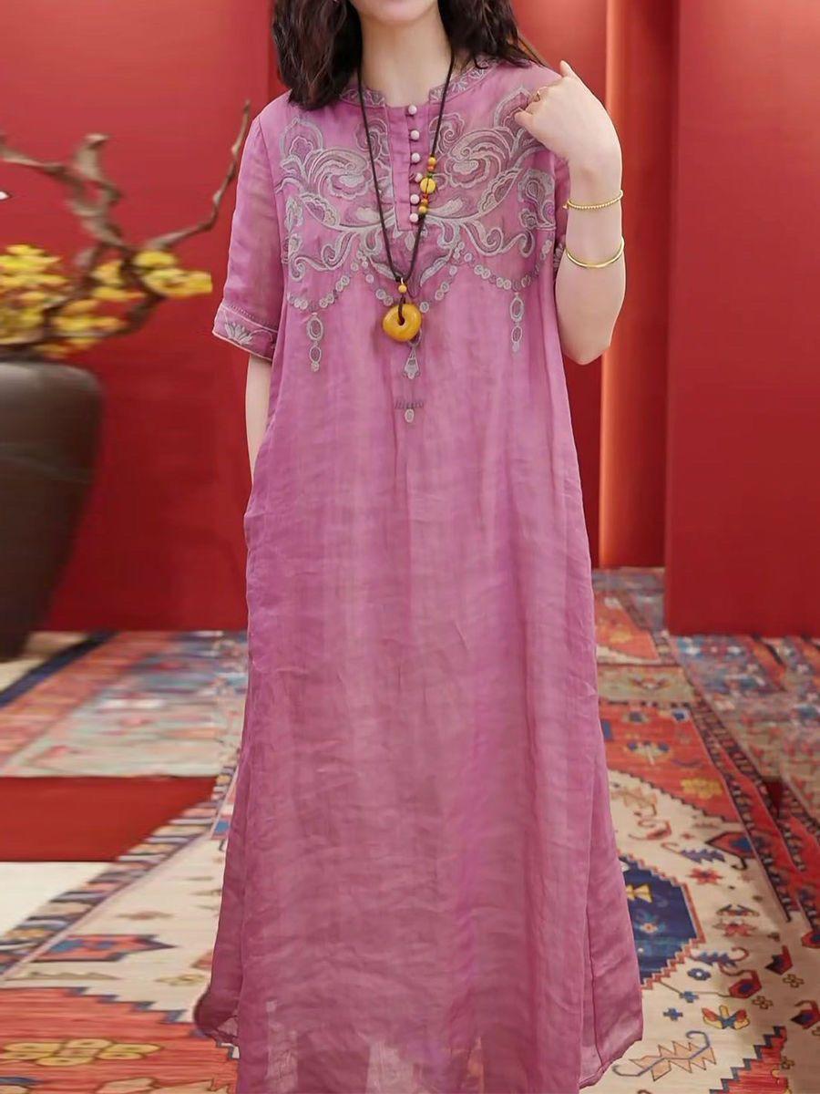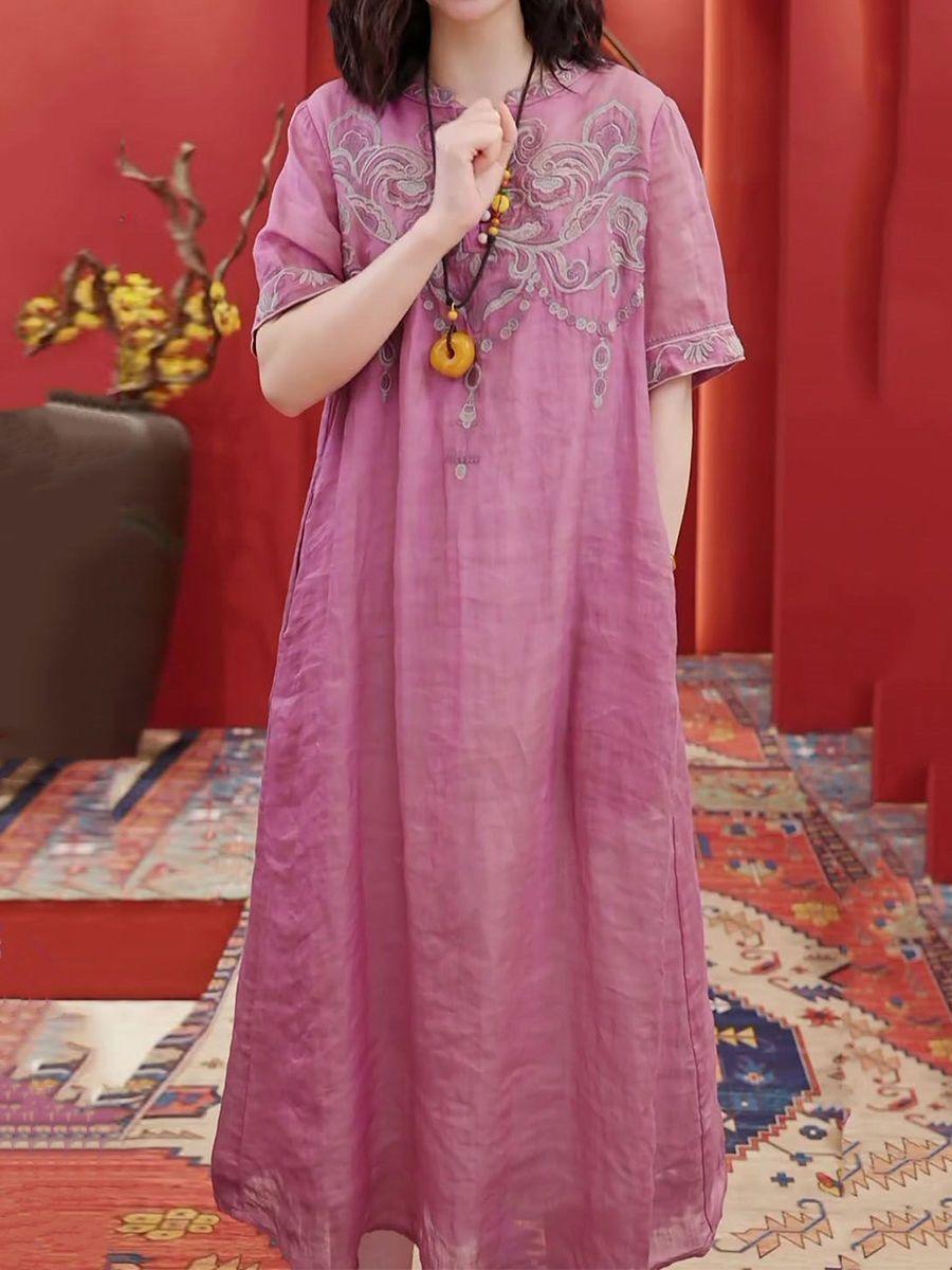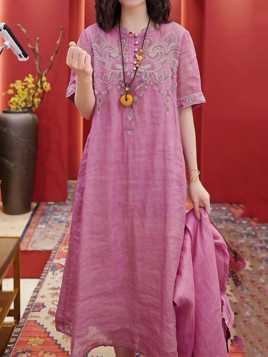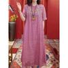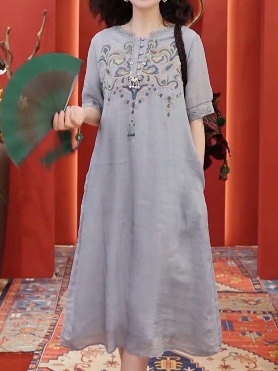 Vestido Primavera/Verano 2025 Algodón Lino Bordado Pesado Nuevo Estilo Cubre Vientre Suelto Adelgazante Talla Grande Moda Falda Temperamento Mujer