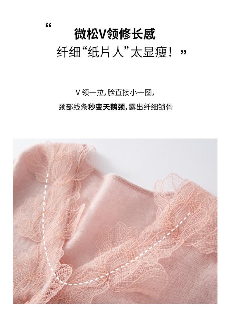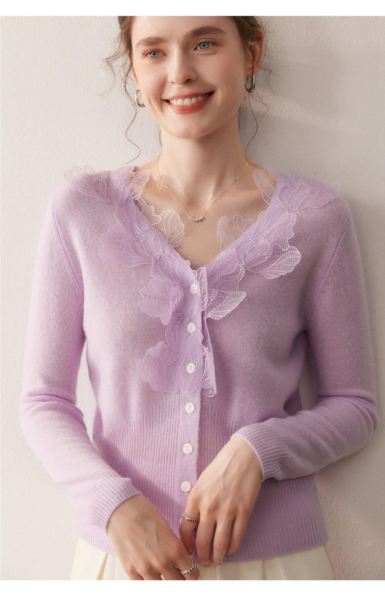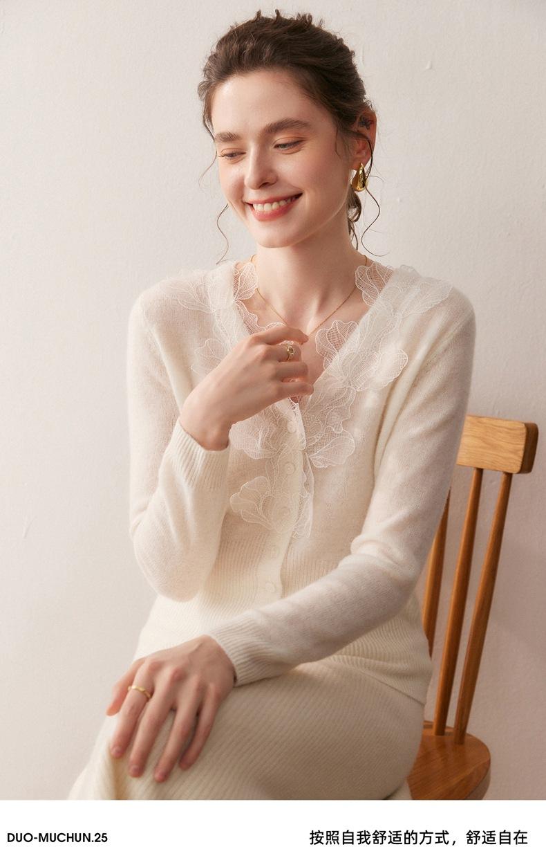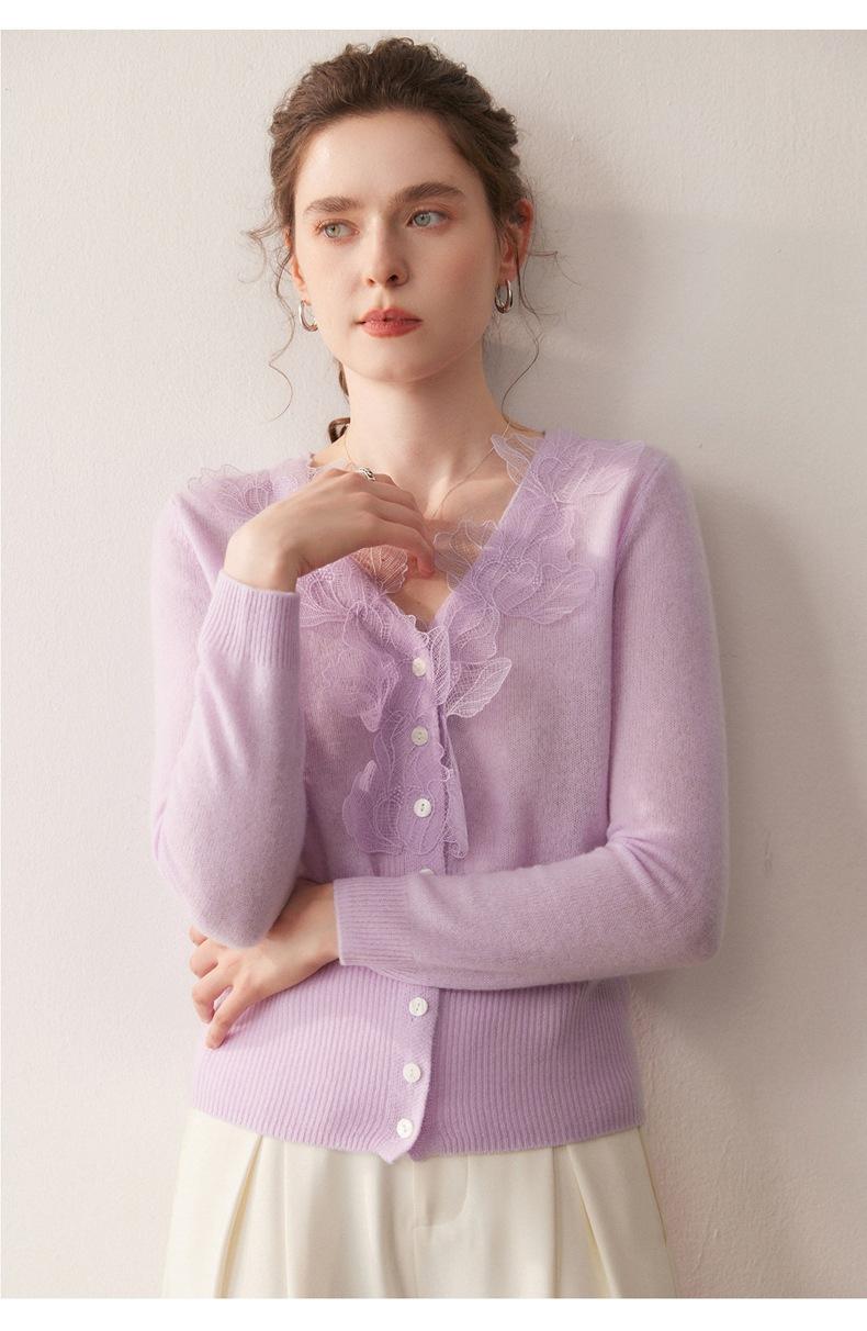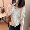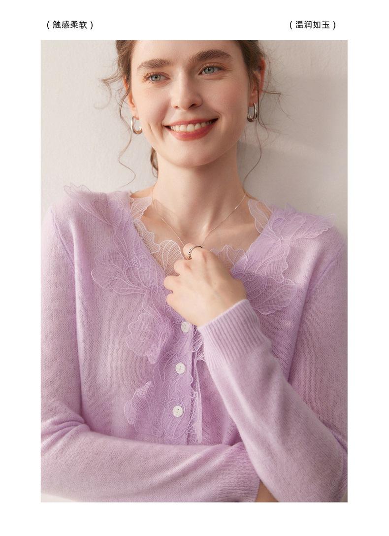 Cárdigan de Punto de Cachemira para Mujer de Encaje de Color Sólido Retro Francés Holgado Adelgazante Moda Versátil Top Suéter Ropa Exterior