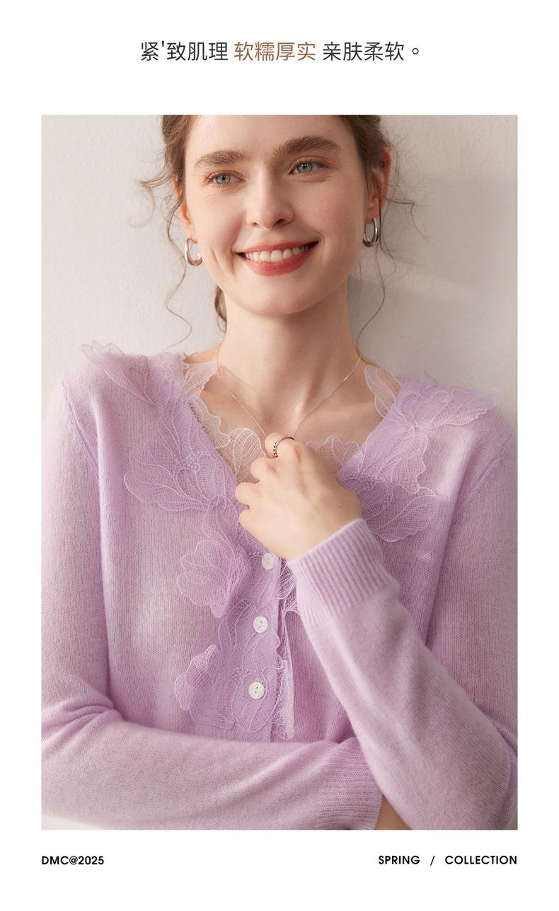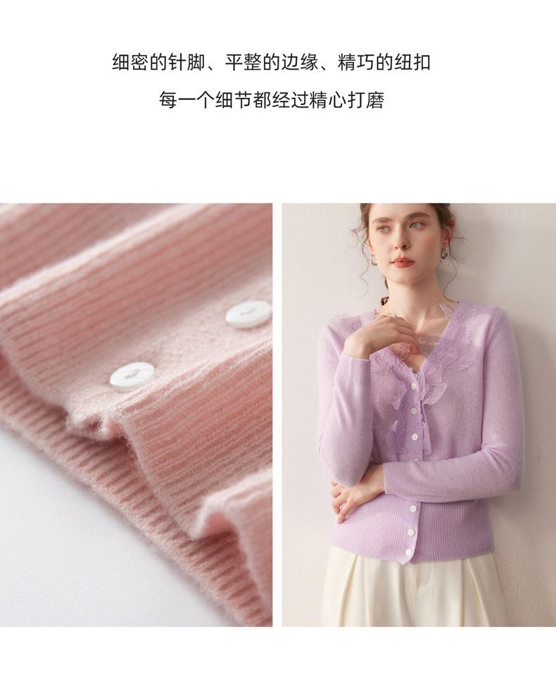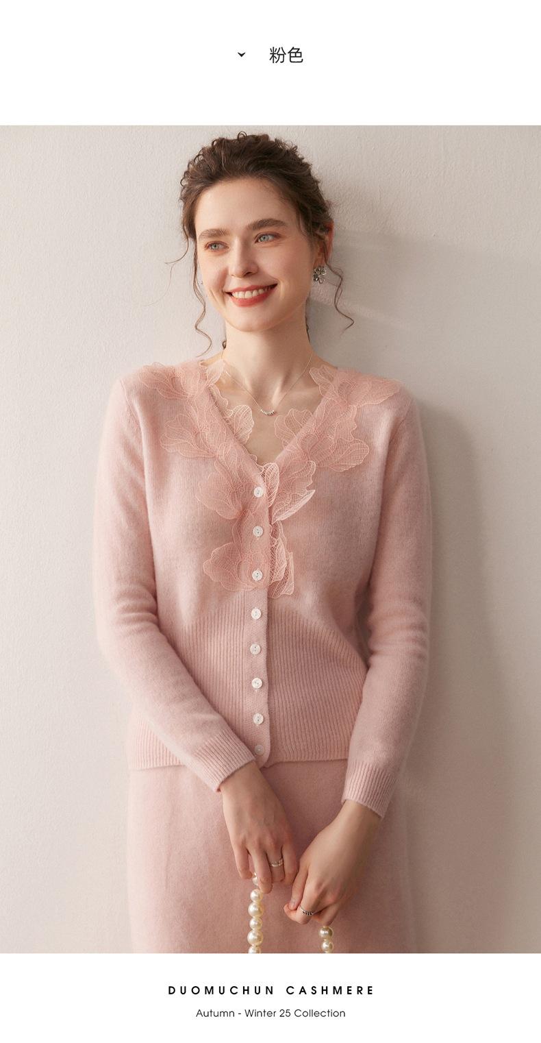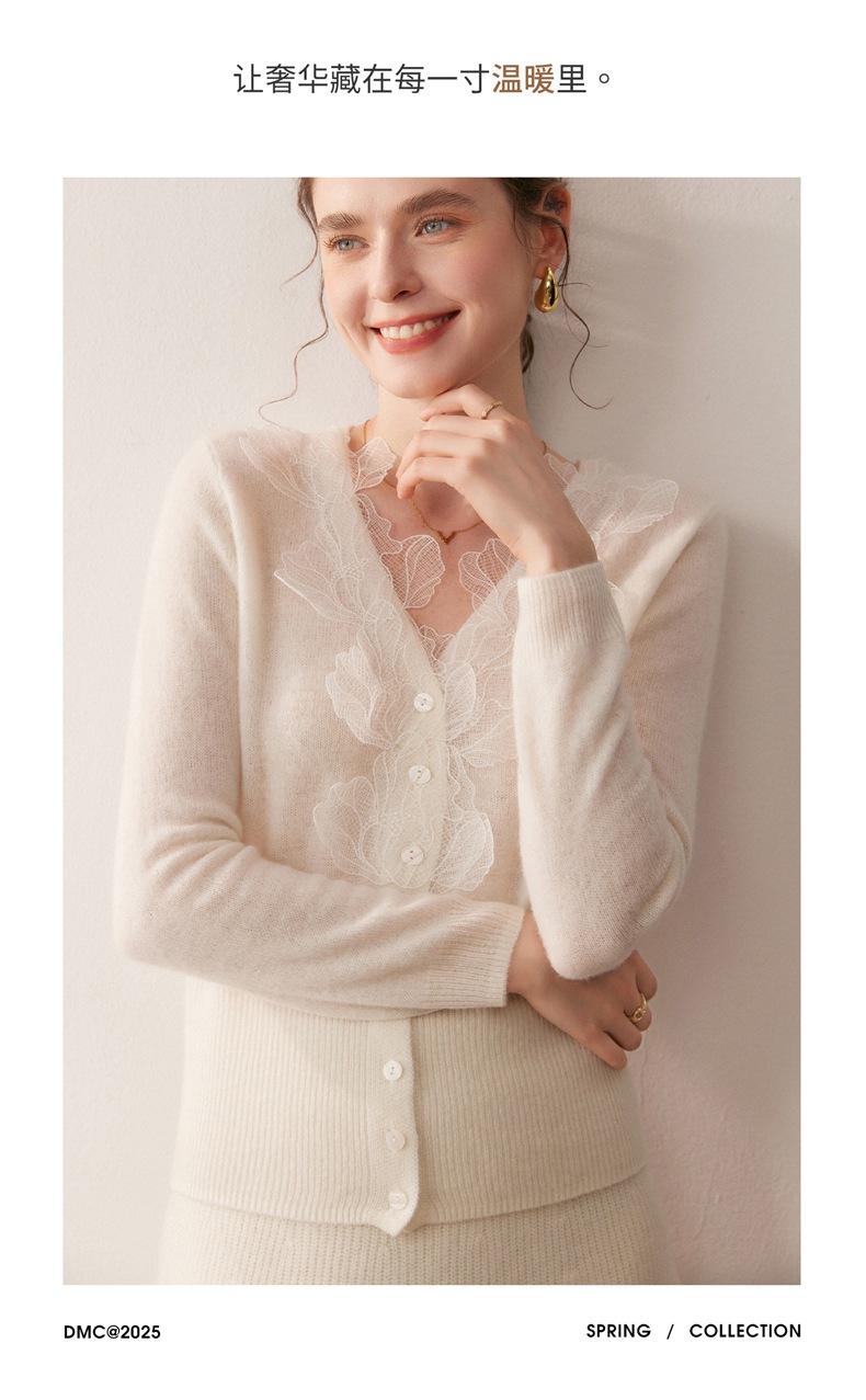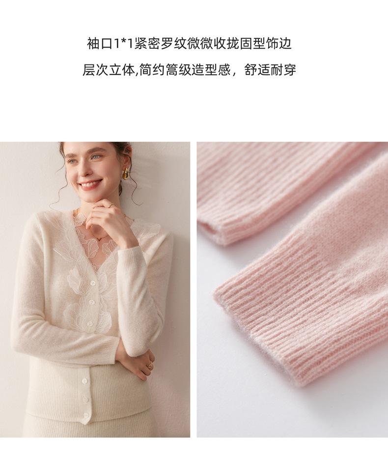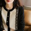 Cárdigan de Punto de Cachemira para Mujer de Encaje de Color Sólido Retro Francés Holgado Adelgazante Moda Versátil Top Suéter Ropa Exterior