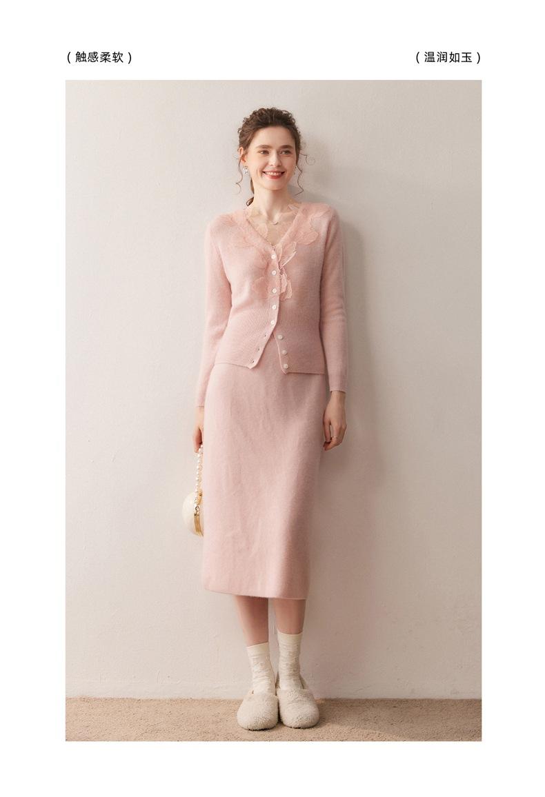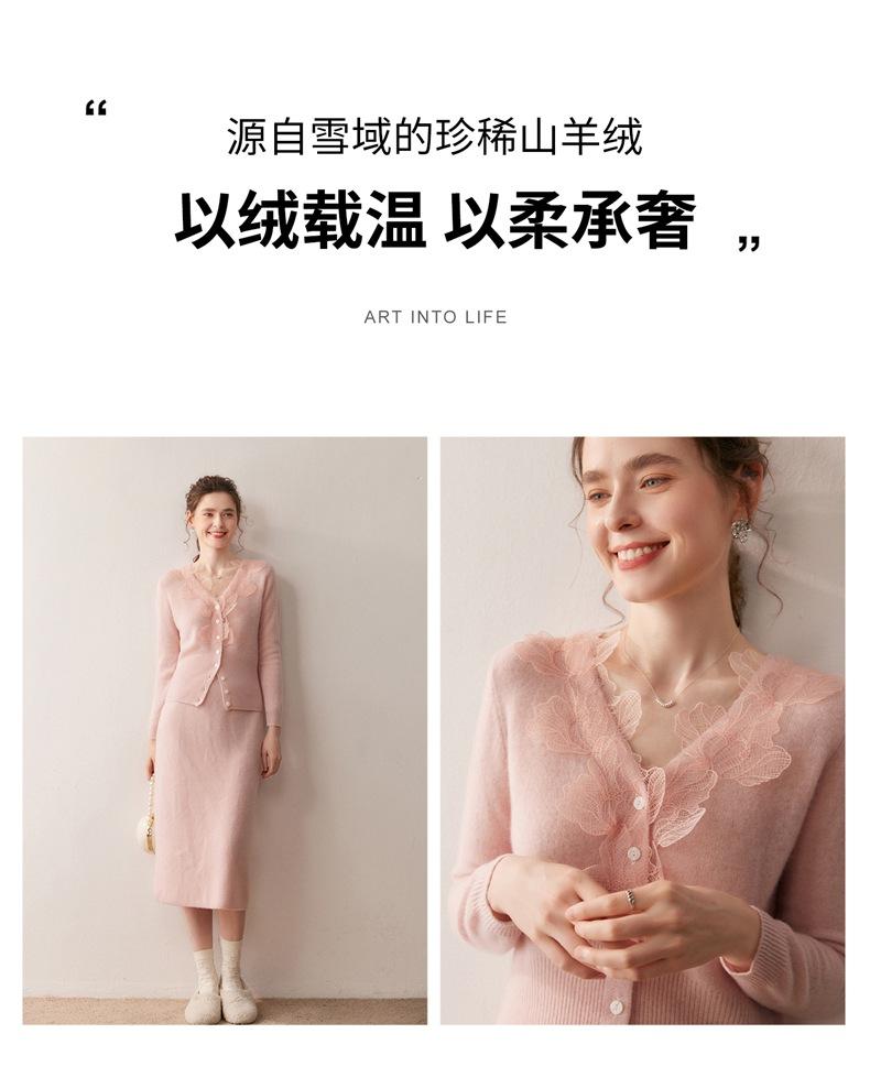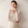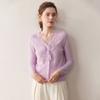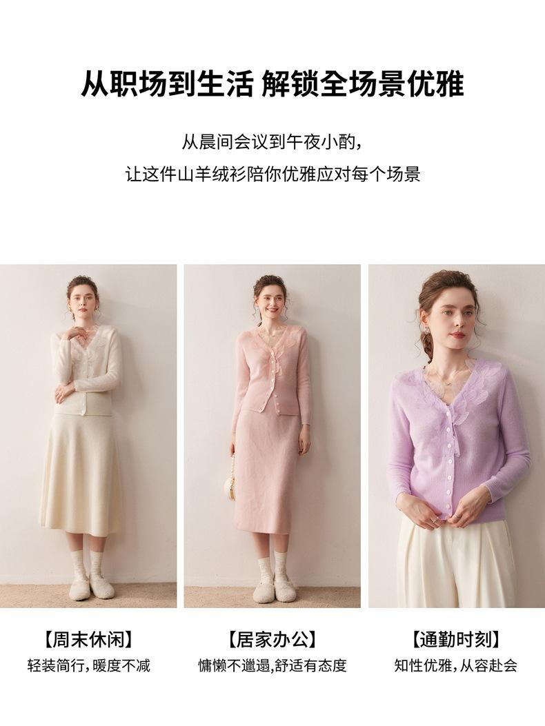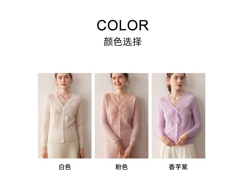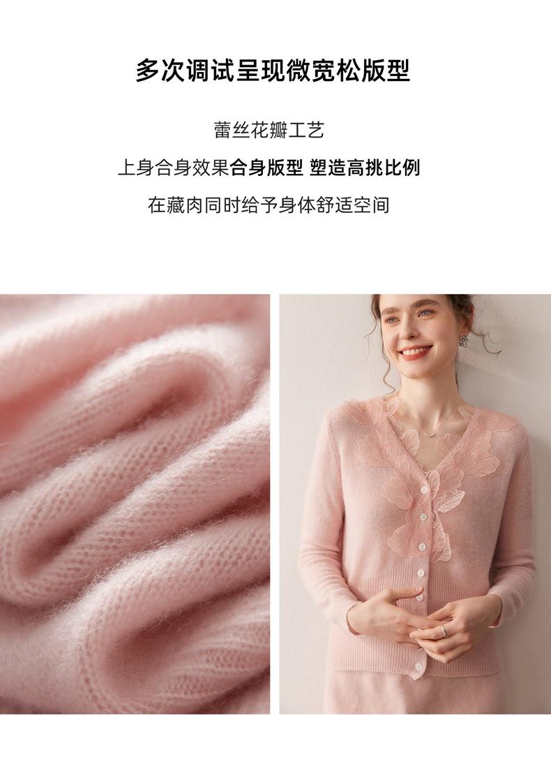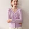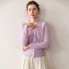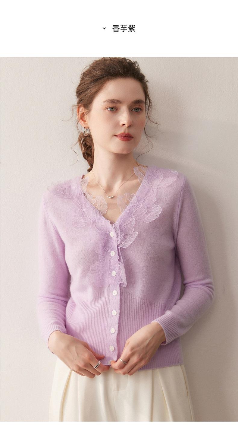 Cárdigan de Punto de Cachemira para Mujer de Encaje de Color Sólido Retro Francés Holgado Adelgazante Moda Versátil Top Suéter Ropa Exterior
