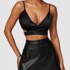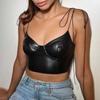 Nuevo Estilo Sexy de Club Nocturno Europeo y Americano Salvaje Bandeau Push-up Cinturilla Camiseta sin Mangas Cuero PU Moda Ballena Mujer Top