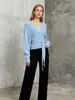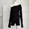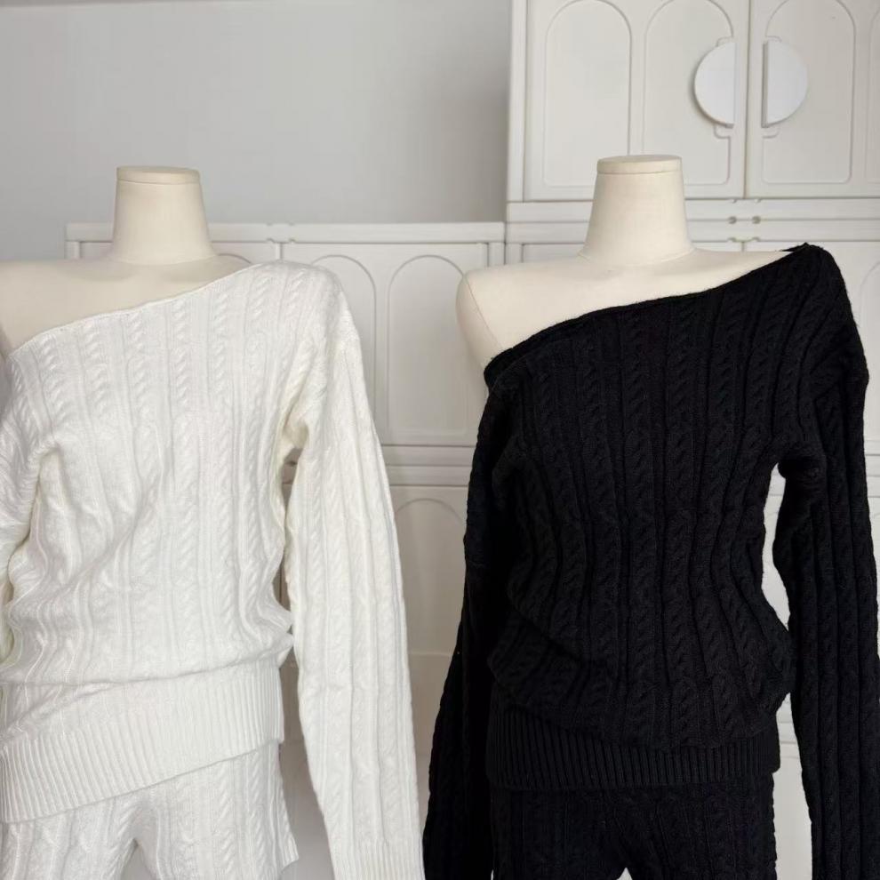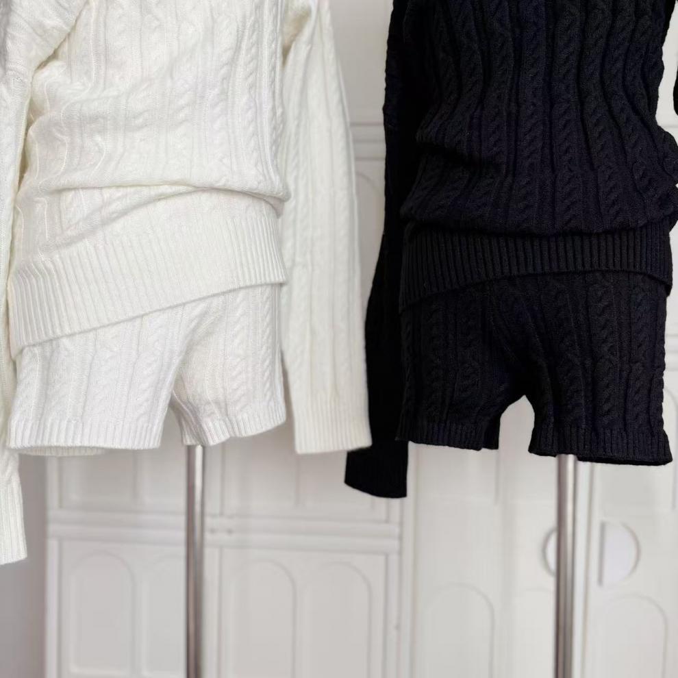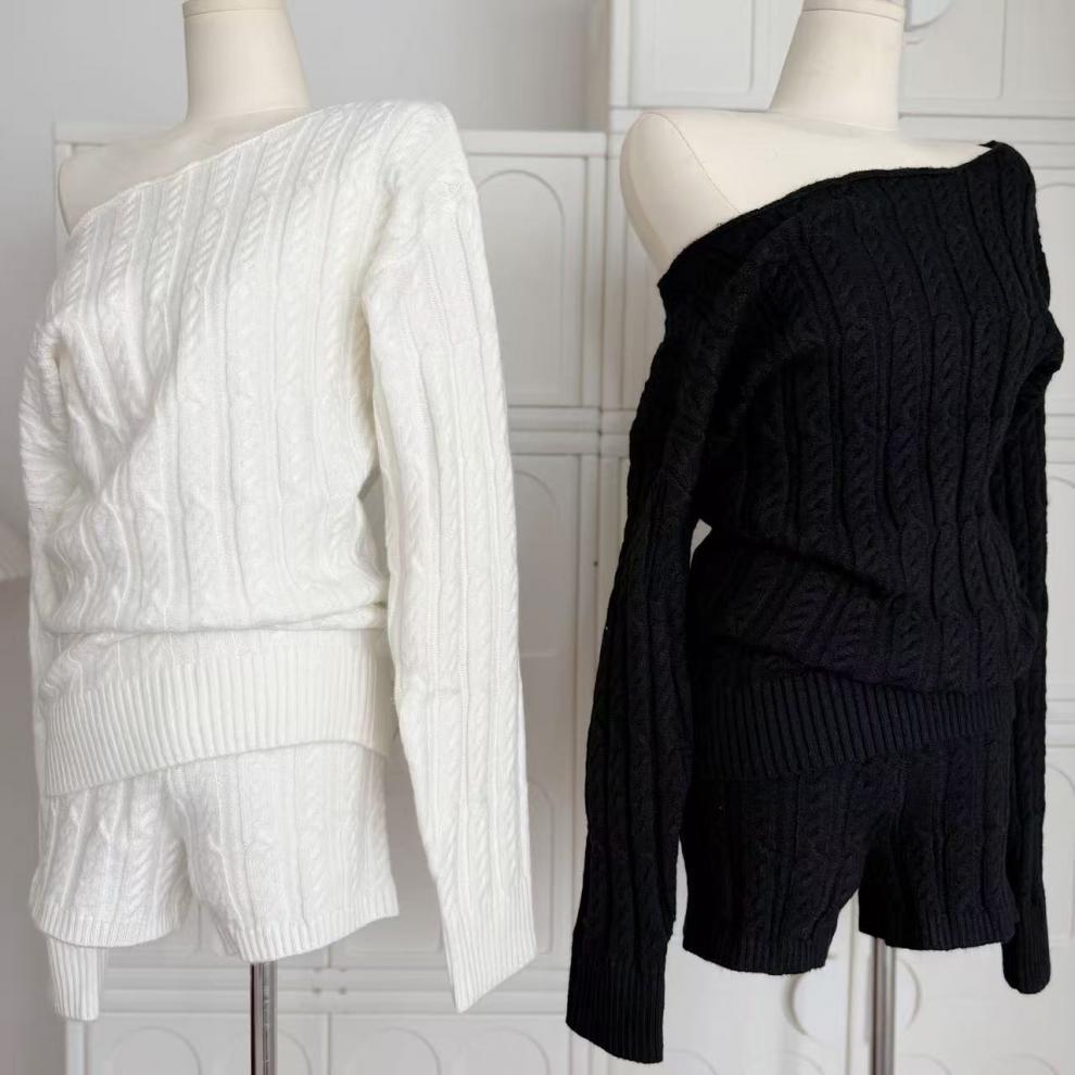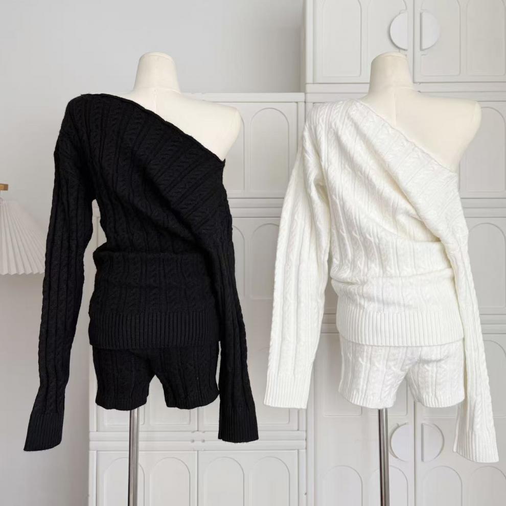Conjunto de atuendo fresco y atrevido suéter de punto de cable de un hombro otoño 2025 nuevos shorts de punto