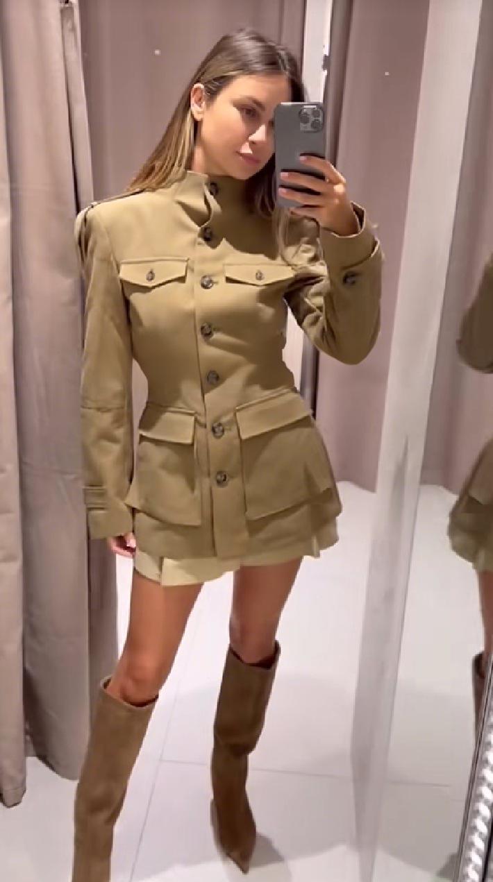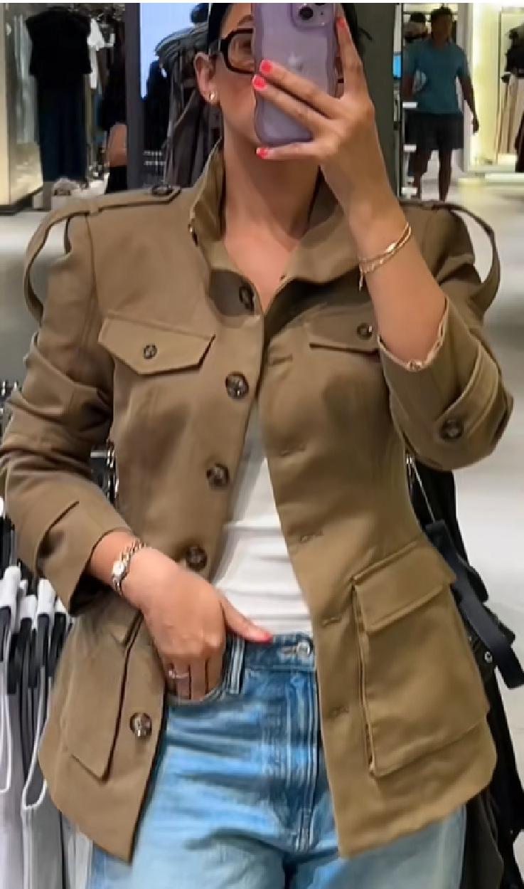 Chaqueta de Mujer de Estilo Americano Transfronterizo 2025 Otoño e Invierno Nueva Moda Entallada con Botones de Manga Larga