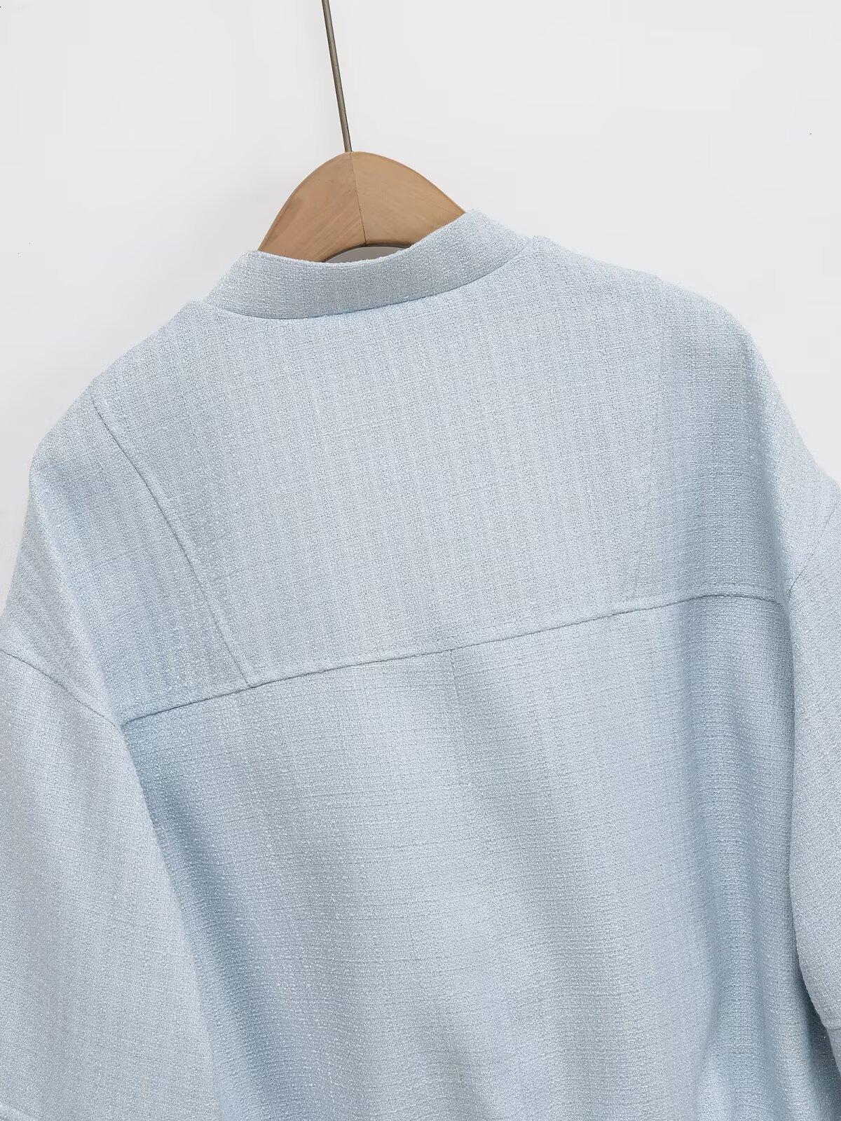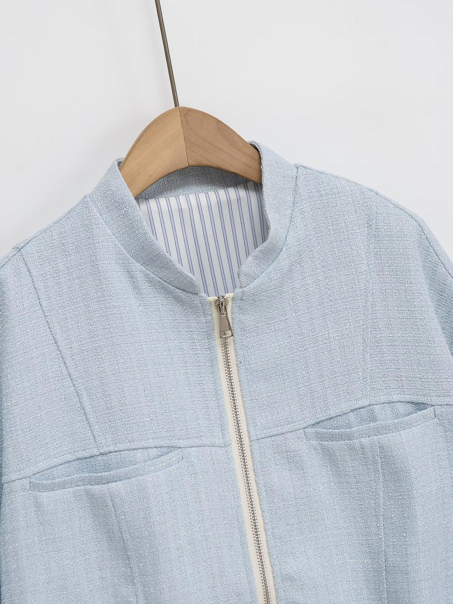 Ropa de mujer transfronteriza otoño 2025 nueva moda personalidad calle diseño versátil sentido manga arremangada cuello redondo chaqueta
