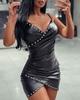 2024 Estilo Europeo y Americano Comercio Exterior para Mujer Sexy Ajustado Tirantes Color Sólido Plisado Sin Mangas Cintura Ajustada Falda de Cadera