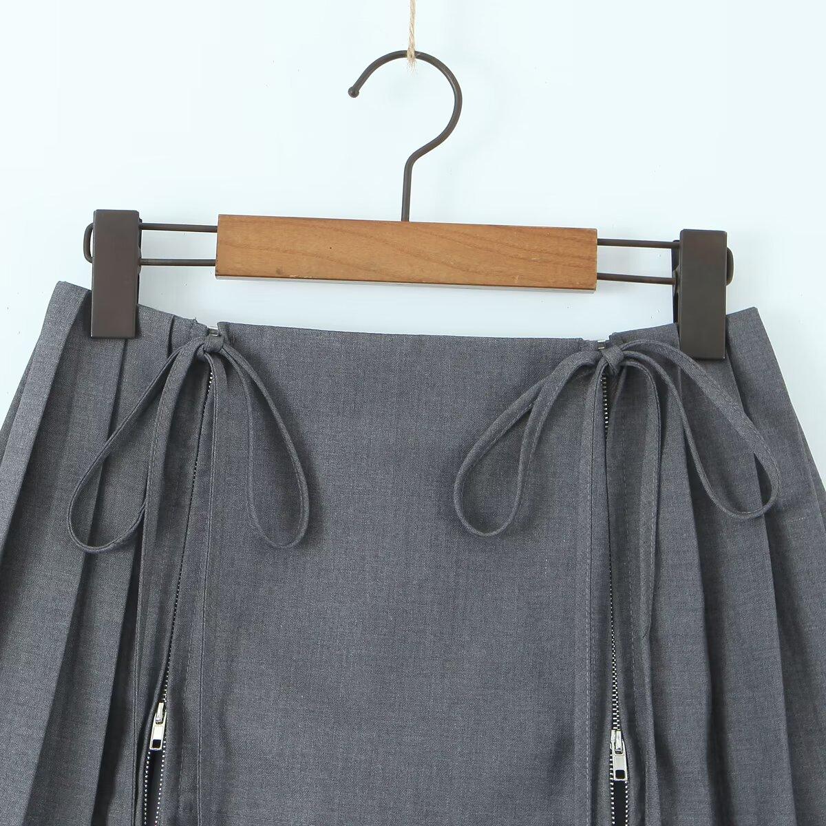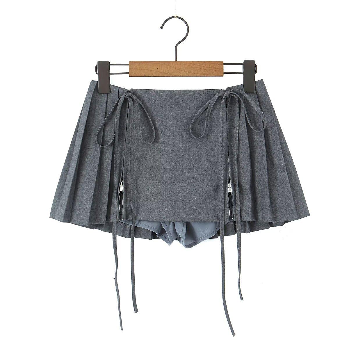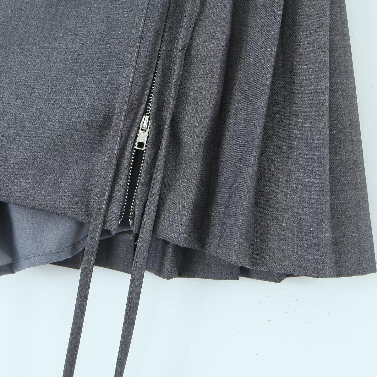 6263-23 Verano Nuevo Estilo Universitario Europeo y Americano Diseño de Personalidad Doble Cremallera Falda Midi Plisada Anti-Exposición