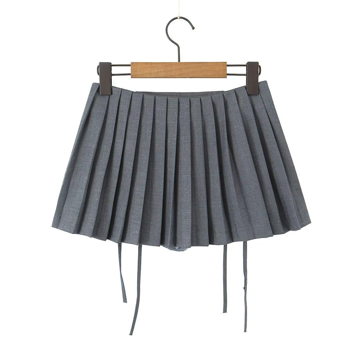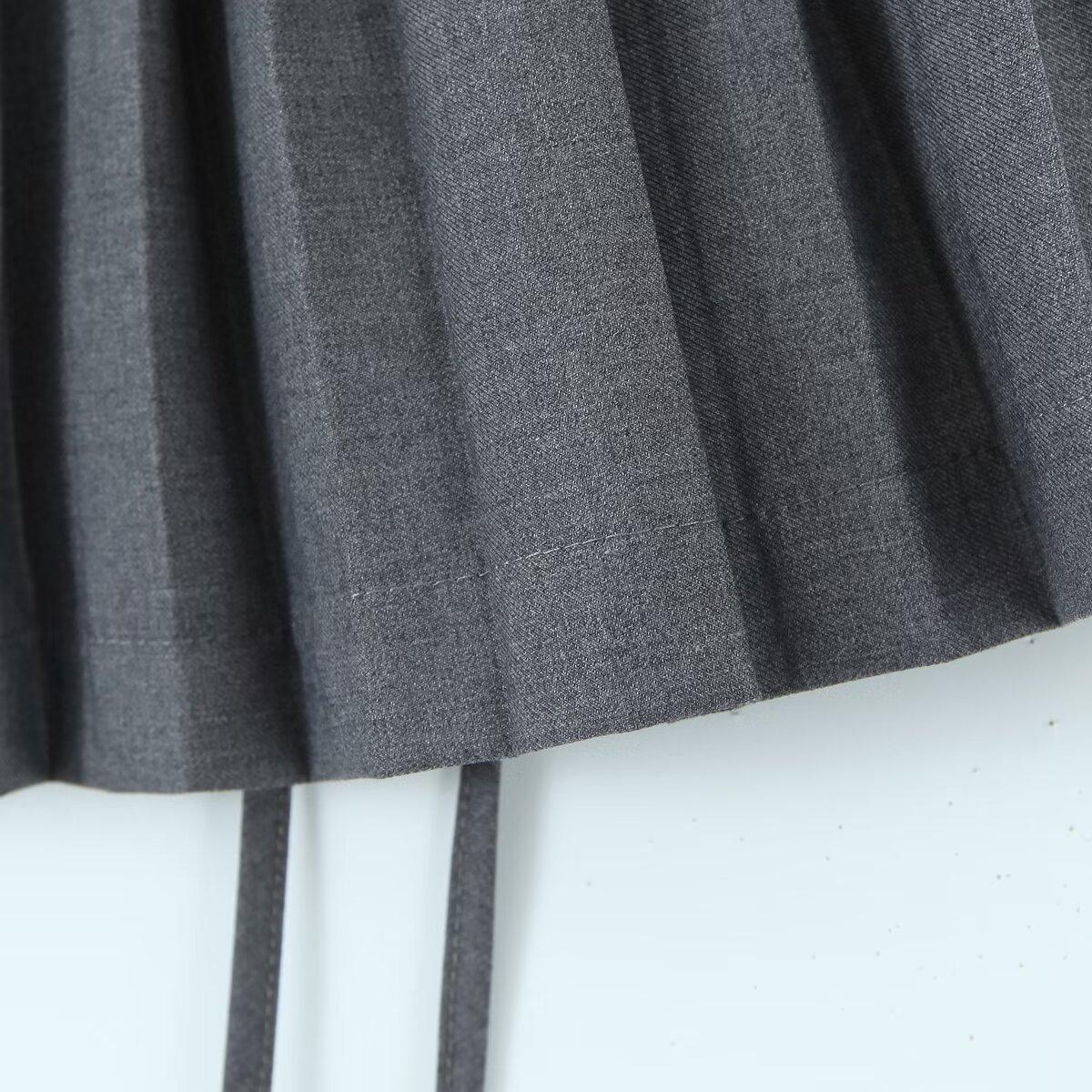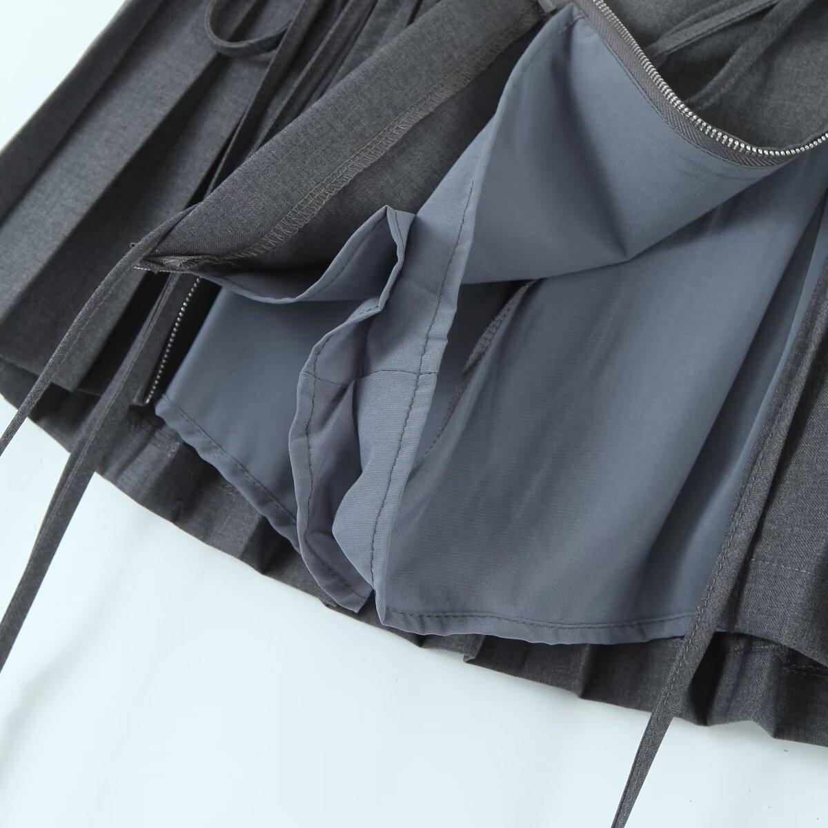 6263-23 Verano Nuevo Estilo Universitario Europeo y Americano Diseño de Personalidad Doble Cremallera Falda Midi Plisada Anti-Exposición