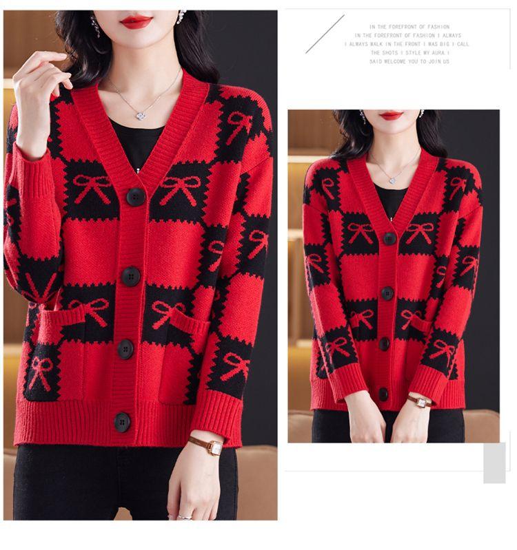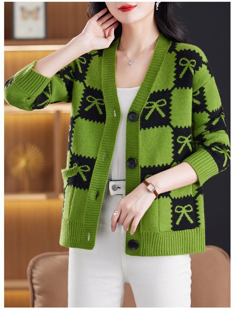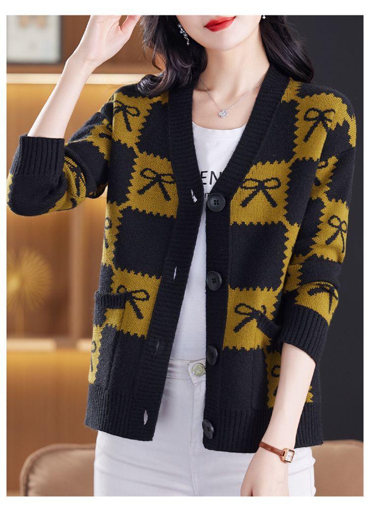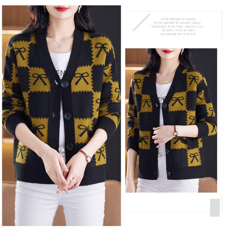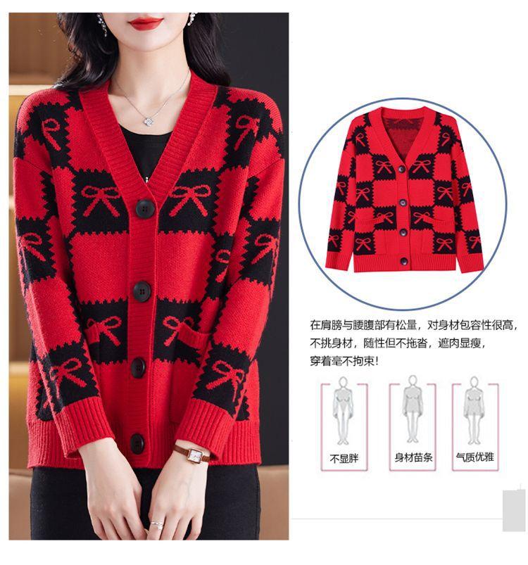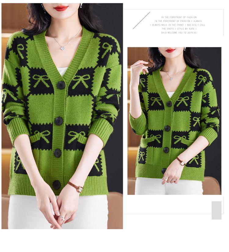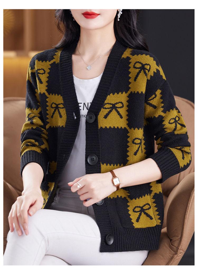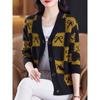 Suéter de Moda para Mujer Holgado Talla Grande Adelgazante Otoño e Invierno Nuevo Cárdigan de Punto Versátil Ropa de Mamá Top Exterior