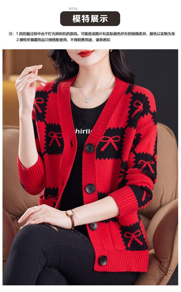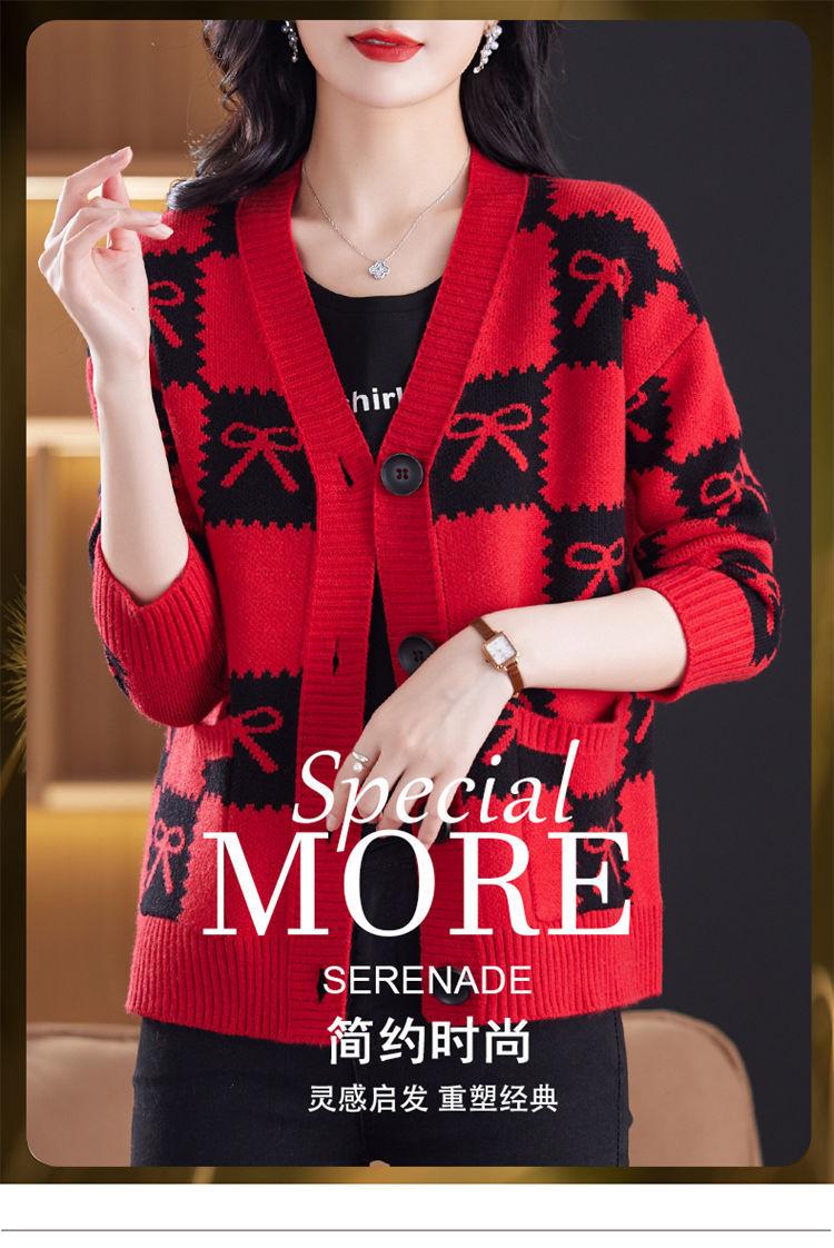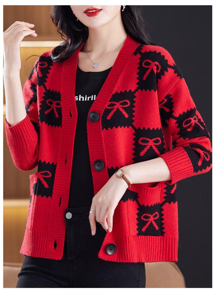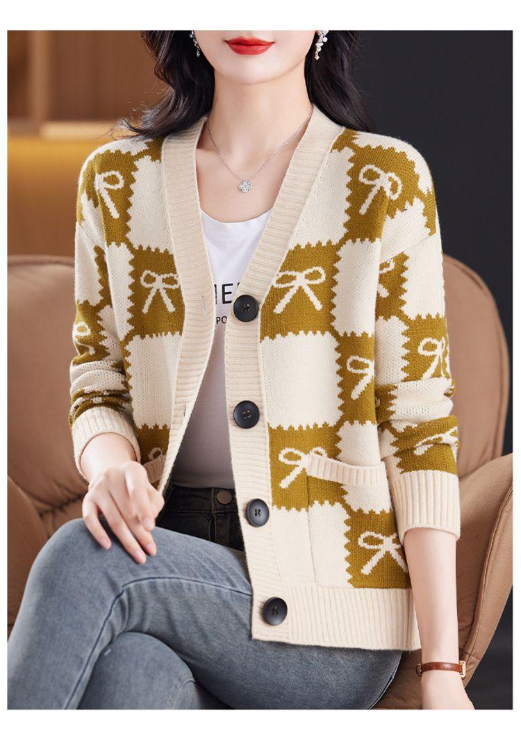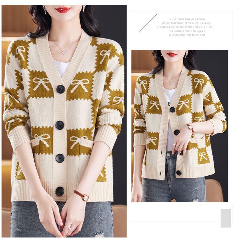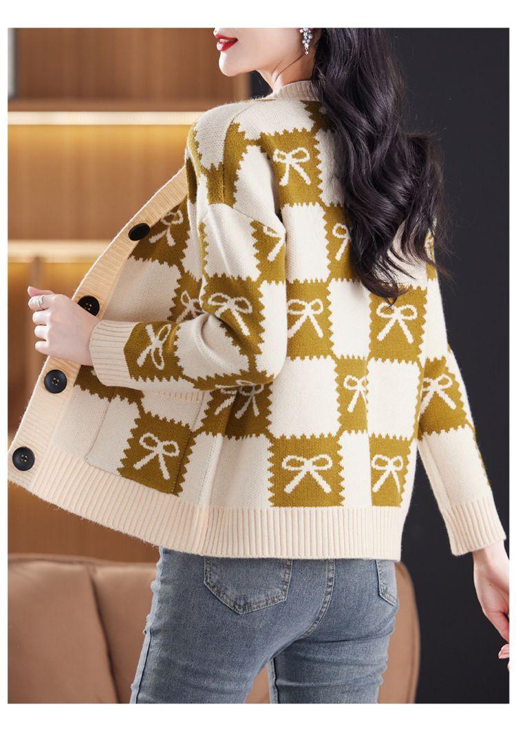 Suéter de Moda para Mujer Holgado Talla Grande Adelgazante Otoño e Invierno Nuevo Cárdigan de Punto Versátil Ropa de Mamá Top Exterior