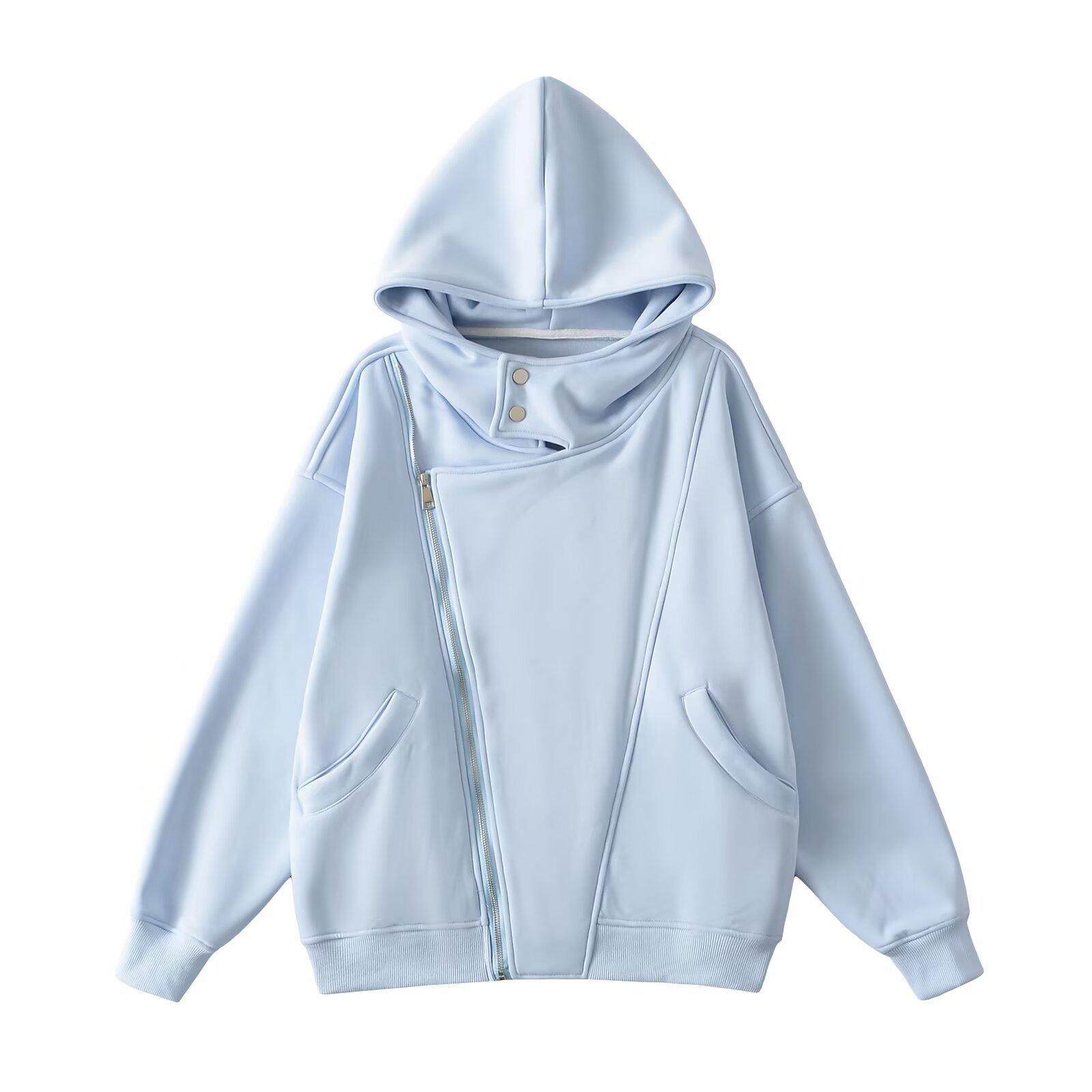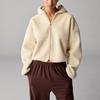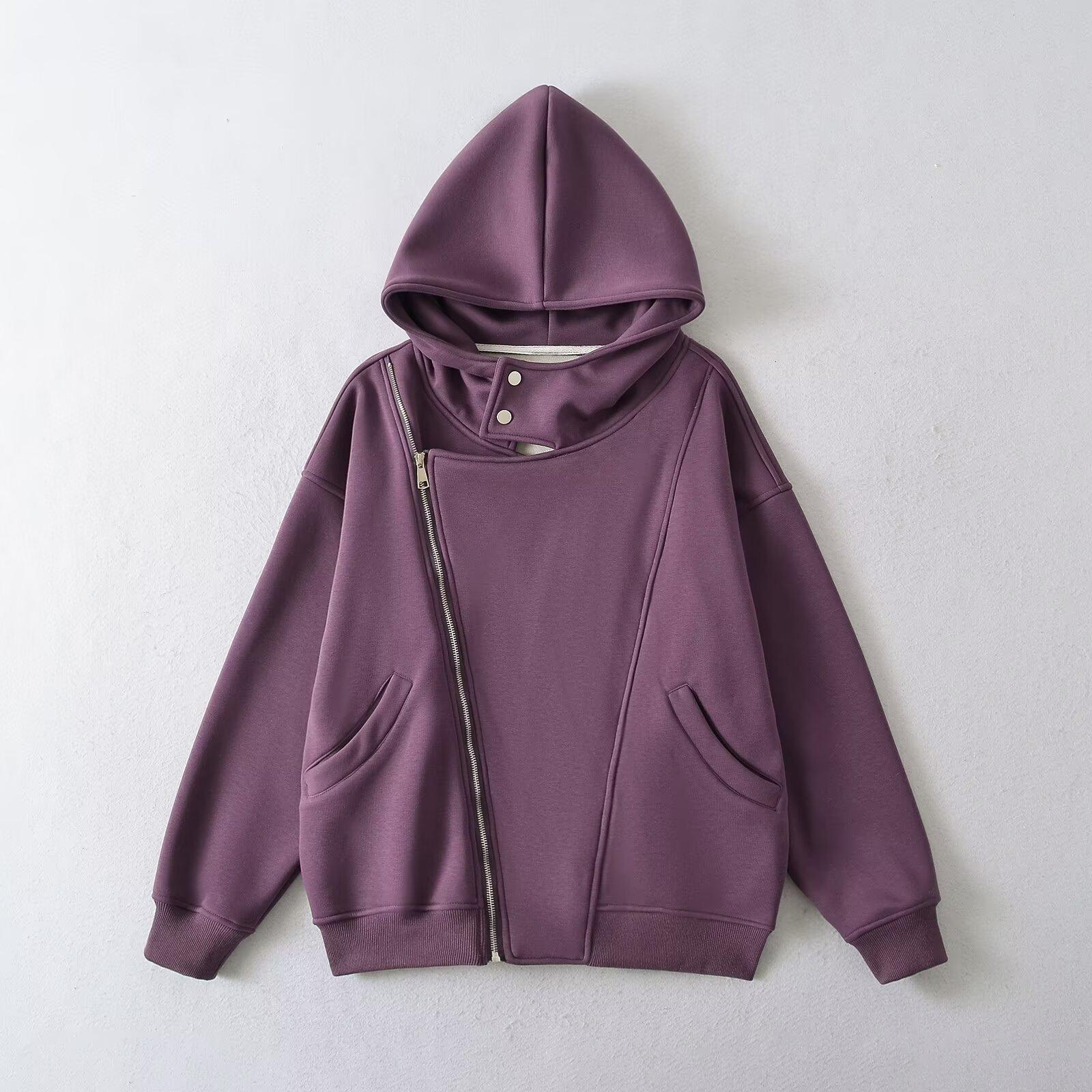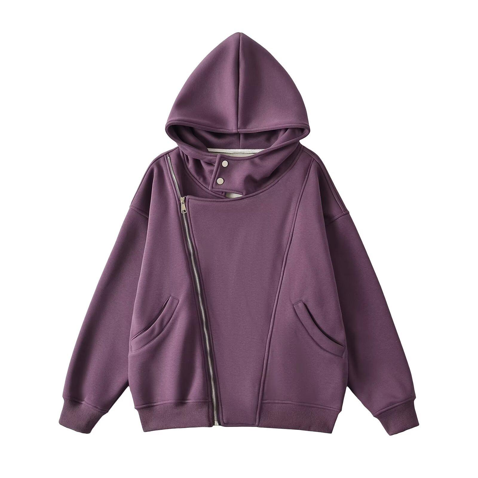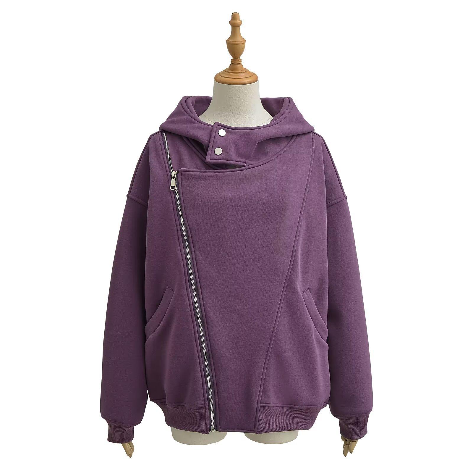 Estilo Americano Estilo Perezoso Cremallera Inclinada con Capucha Forrado de Fleece Cálido Suéter Chaqueta Otoño e Invierno Sentido del Diseño Cárdigan Holgado Top