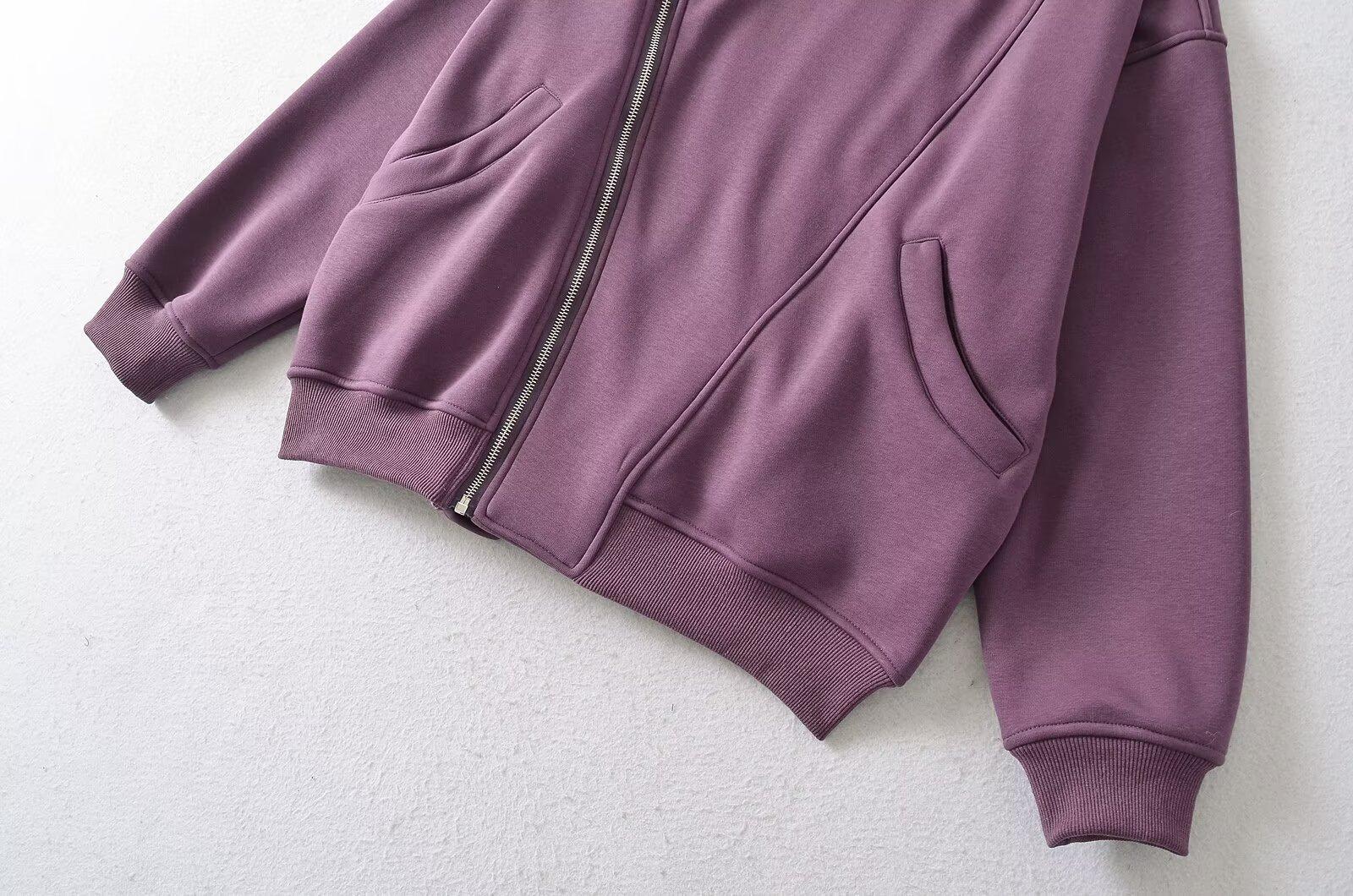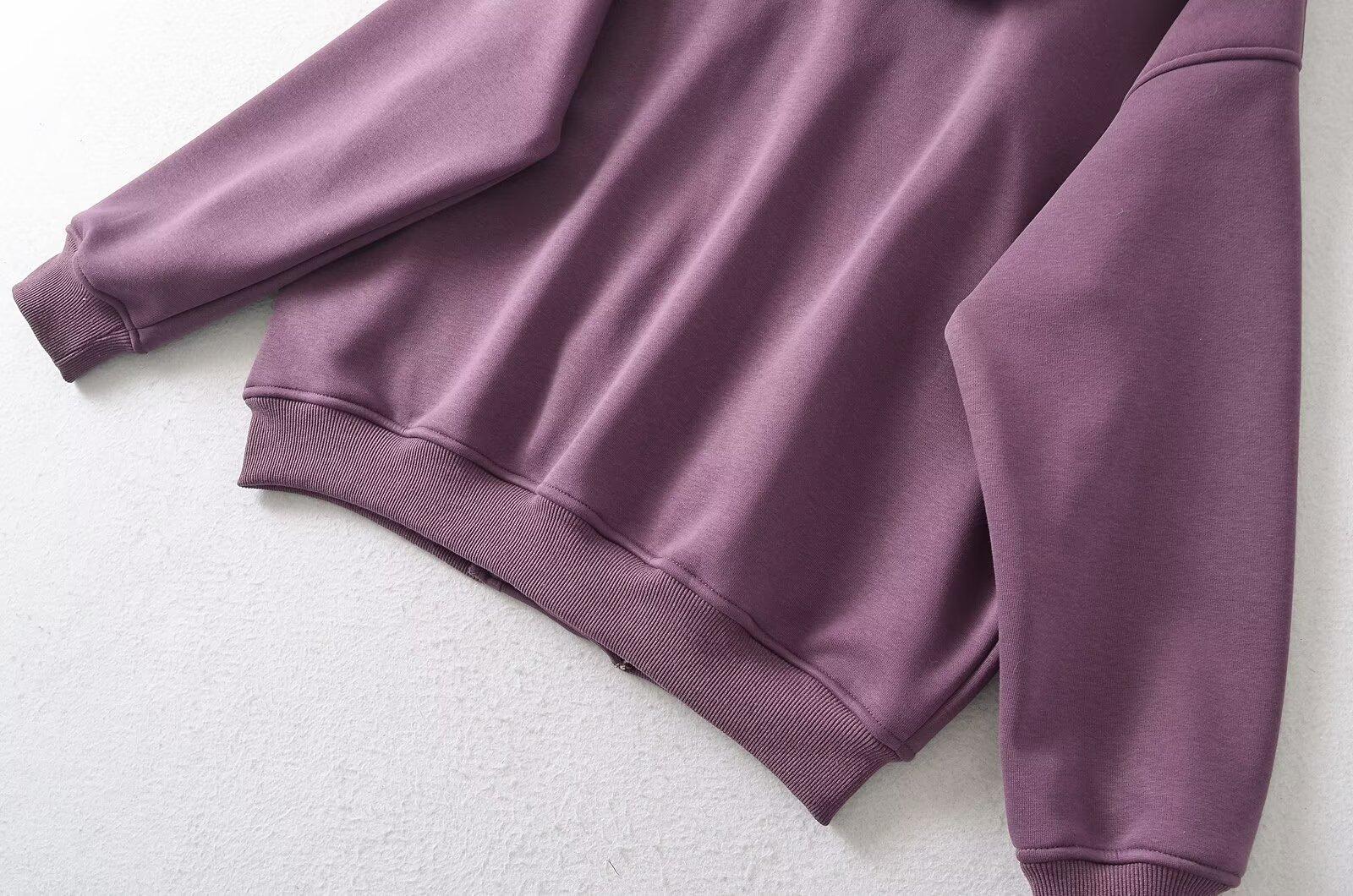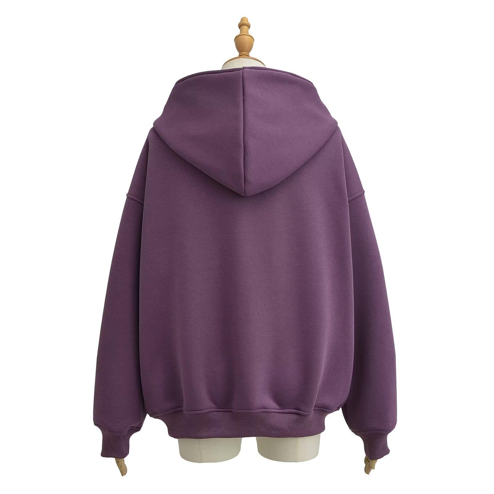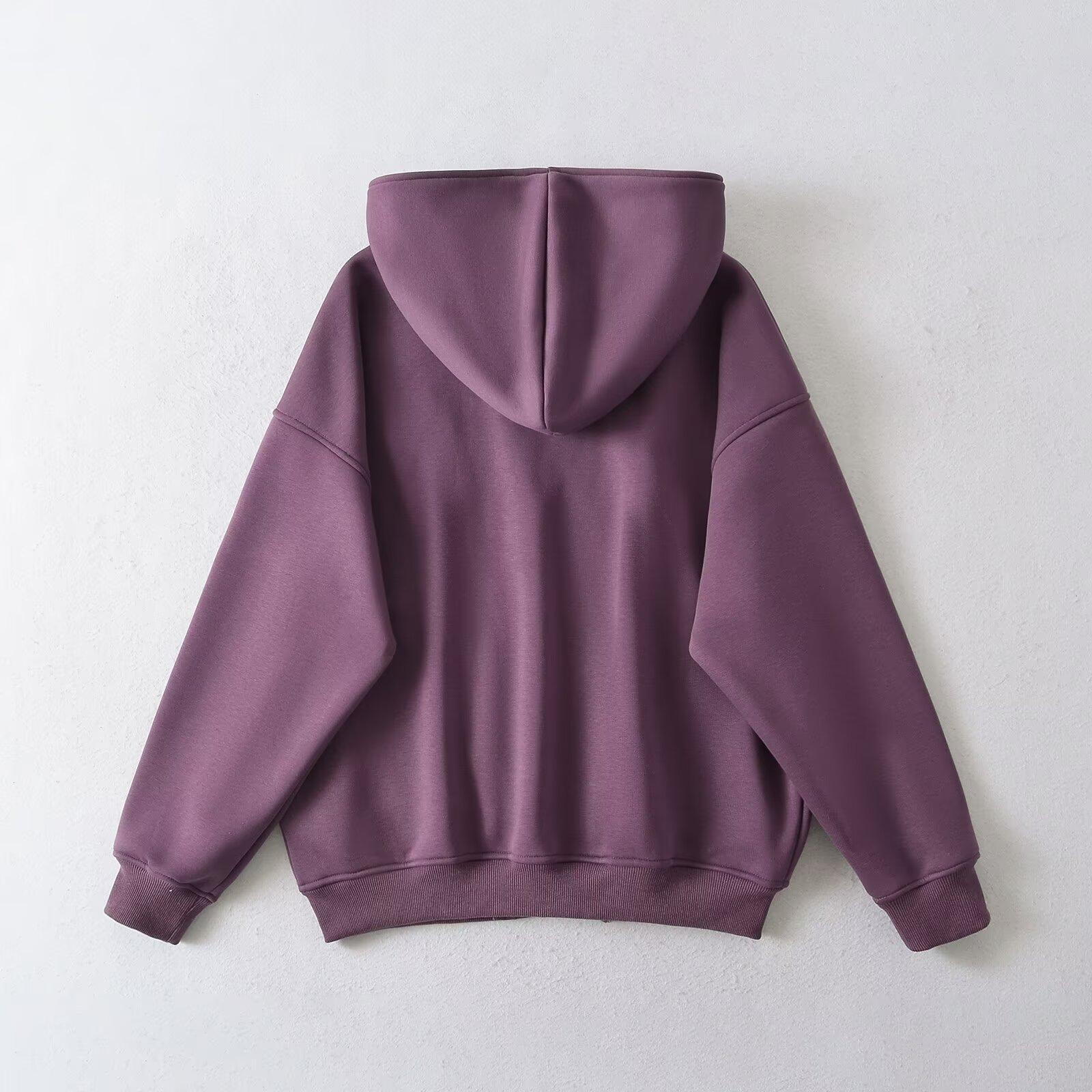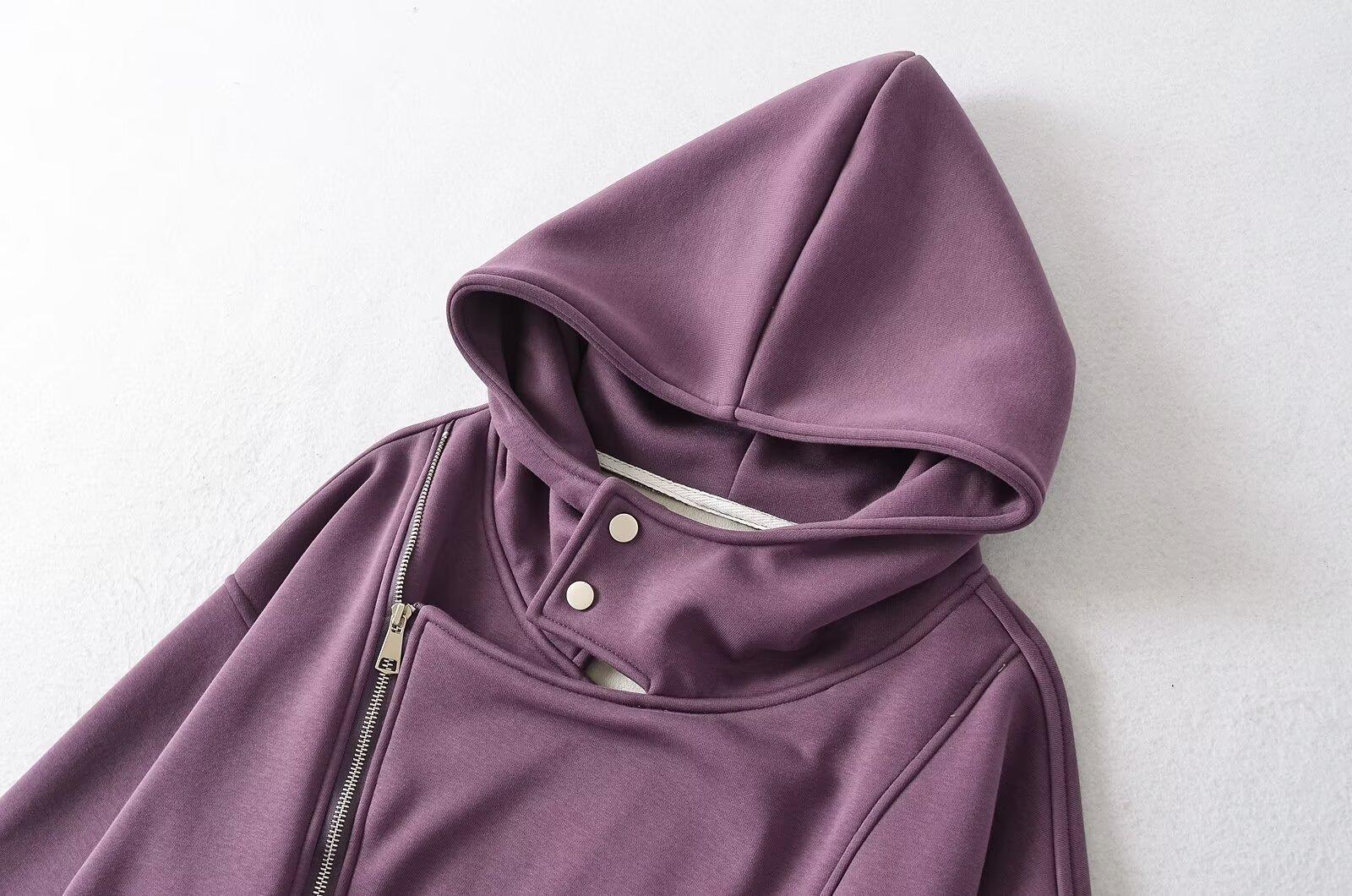 Estilo Americano Estilo Perezoso Cremallera Inclinada con Capucha Forrado de Fleece Cálido Suéter Chaqueta Otoño e Invierno Sentido del Diseño Cárdigan Holgado Top