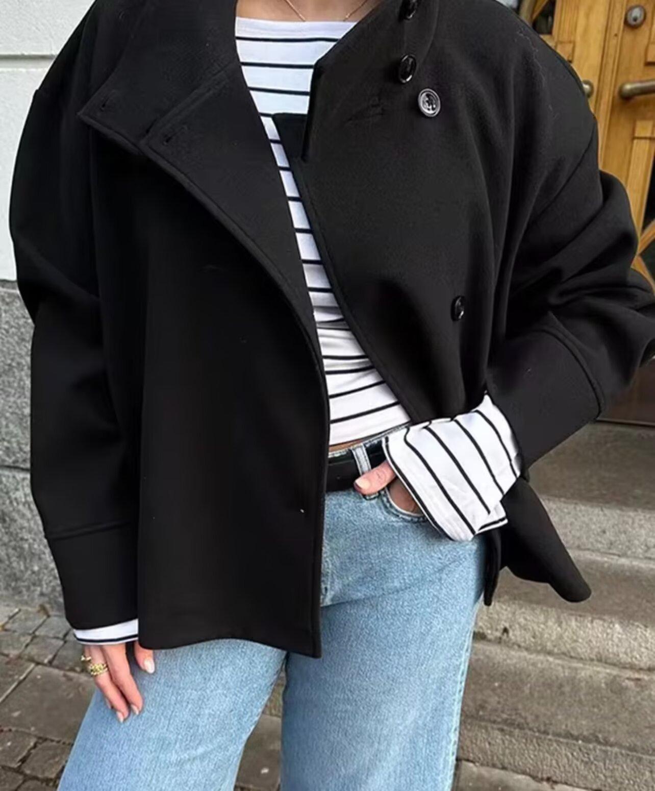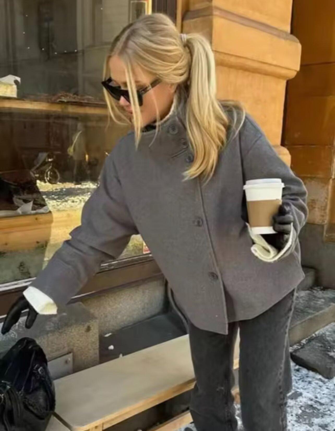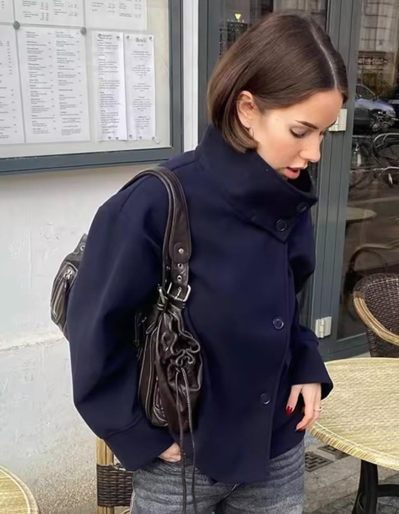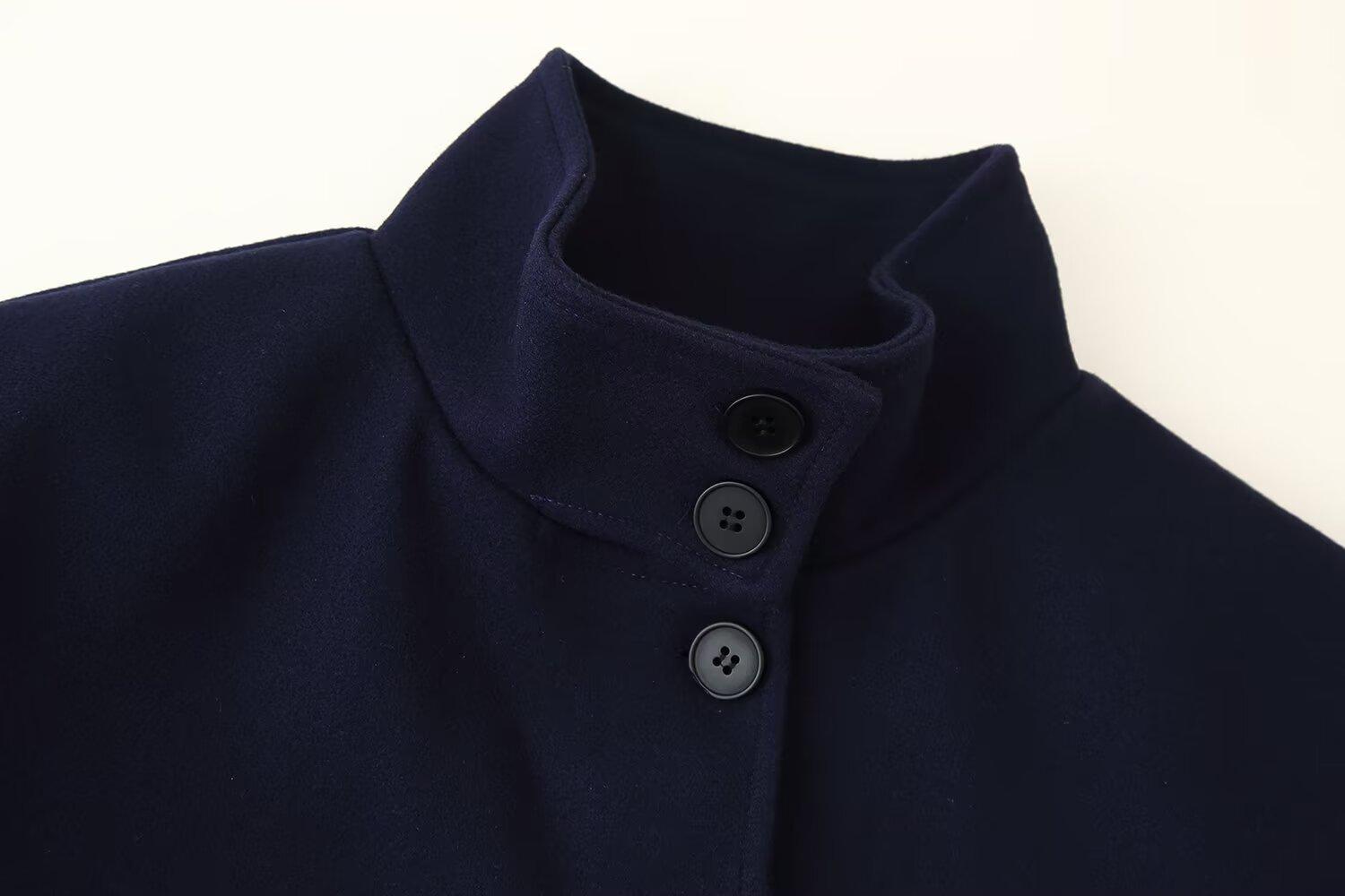 Moda femenina europea y americana transfronteriza AliExpress más vendido elegante casual cuello alto botonadura sencilla abrigo corto suelto de lana